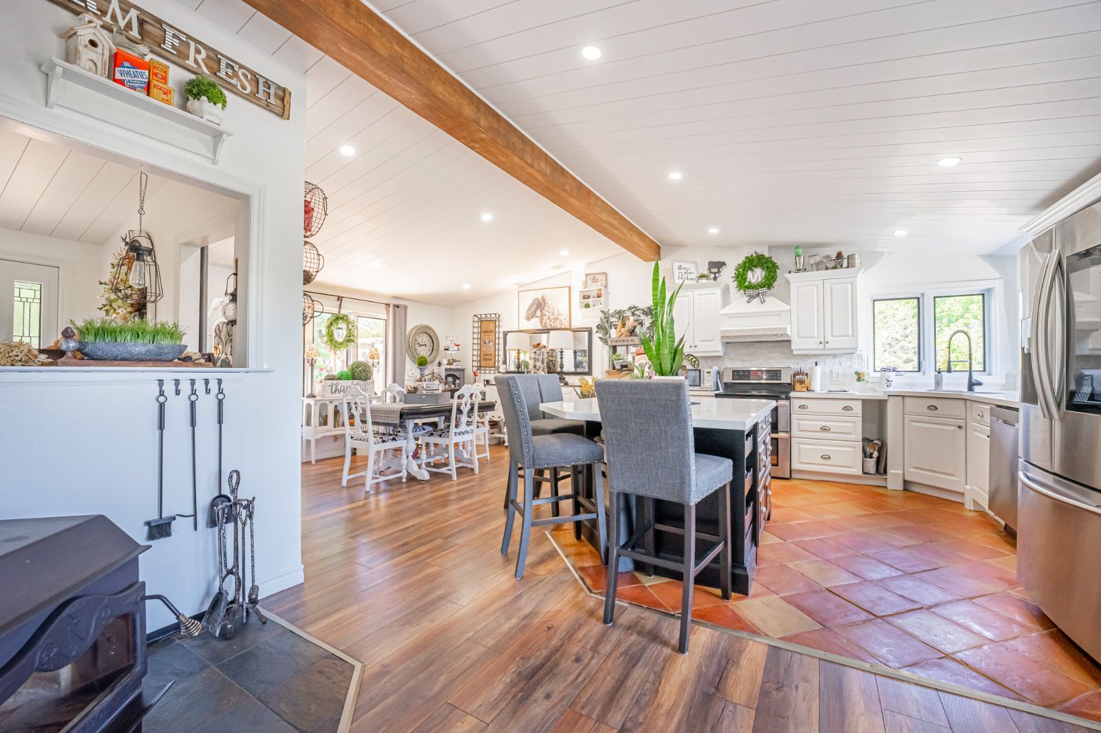 EXPERIENCE THE TRANQUILITY OF MULMUR LIVING IN A SERENE CHALET-STYLE HOME WITH AN EXOTIC KOI POND! The perfect blend of quiet country living & city convenience in this stunning chalet-style home in Mulmur, beside the Mansfield ski club. With abundant natural light, vaulted living room ceiling & captivating nature views, this home offers a warm & inviting atmosphere. The kitchen features s/s appliances, quartz countertops & a cozy wood-burning fireplace. The main level offers two bedrooms & an updated 4pc bath, while the upper level boasts a grand primary bedroom with a luxurious ensuite & w/i closet. The lower level includes a bedroom, a 4pc bath & a spacious rec room with w/o access to the hot tub. Upgrades throughout ensure both style & functionality. Over 3 acres of land, enjoy outdoor activities or relax on the large deck with breathtaking views. The highlight of this property is the natural pond filled with exotic koi fish, providing a memorable experience. #HomeToStay