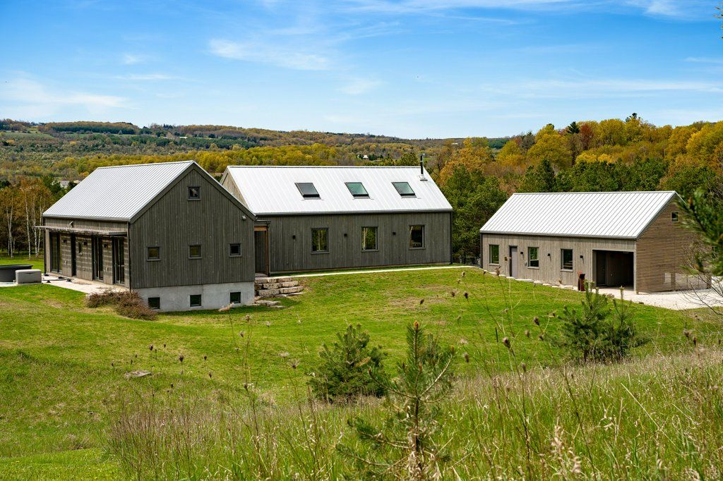 Scandinave inspired home built in 2016, 22 stunning acres. 3 bdrm, 3 bthrm, Open concept kitchen, dining & living room with cathedral ceilings, oak floors & sliding glass doors overlooking hills of Mulmur. Clean lines throughout with natural light brightening the entire home.. The 800 sq. ft workshop/garage w/ carport, has potential for a variety of uses including Yoga or Art studio is done to the 9’s (with radiant heated floors, electricity and water) and designed in the same modern style as the rest of the home. . Stunning Westerly sunset views, new bridge on the property crosses over your own piece of Walker Creek , hobby farm area, 2200 new trees planted, a variety of fruit trees, large waterproof storage container, Wood fired hot tub, outdoor wood sauna and outdoor shower. Walk the land and experience the full beauty of nature, hike or cross-country ski on your own personal trails and find a spot to watch the stunning Westerly sunset views. Close to Creemore, golf, ski and more.
