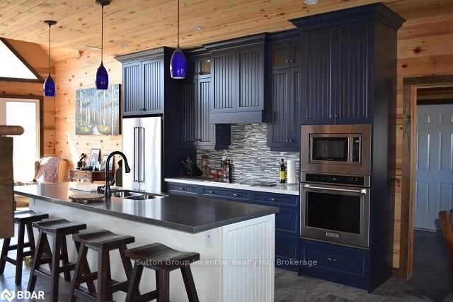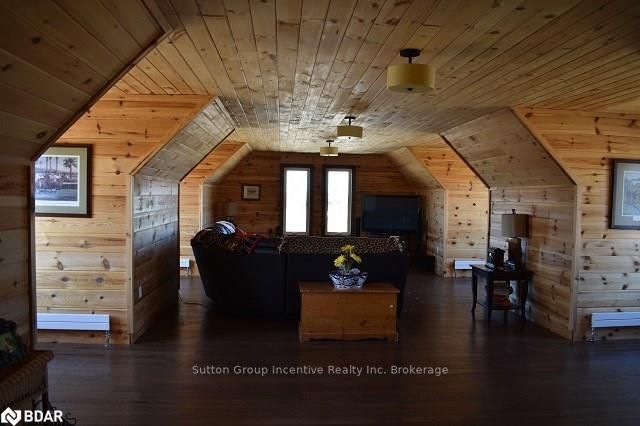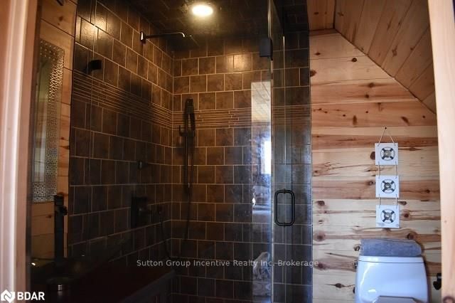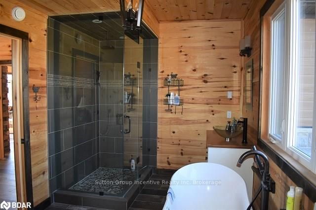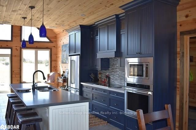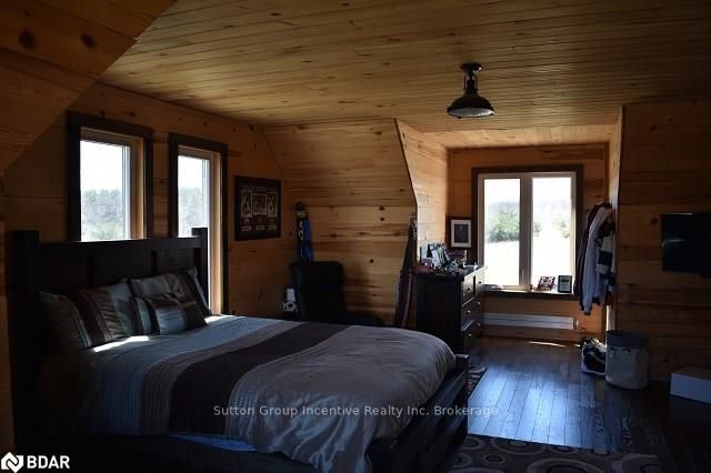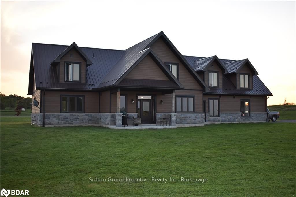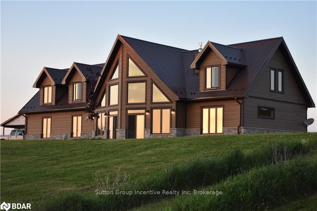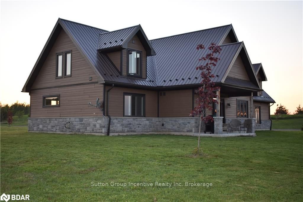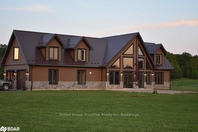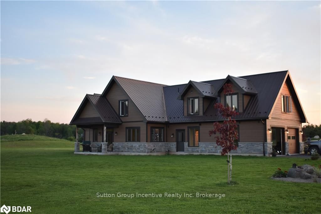 One of a kind custom home, two years new situated on 19.85 private acres in the sought after hills of Mulmur! This bright and spacious 3550 sqft home is finished top to bottom featuring 3 bedrooms and 4 bathrooms with each bedroom having their own ensuite! The main level boasts very efficient radiant heat floors throughout! Pine plank boards finish the entire home top to bottom (no drywall). Vaulted ceilings, and open concept layout with all stone gas fireplace in living room, visible from the kitchen area. Custom kitchen offering KitchenAid appliances and dinette with 360 degree outside views. The spacious second level offers hardwood floors, a great room and two more bedrooms with separate ensuites, heated towel bars, and unique ceiling designs. The attached double car garage with inside entry is fully finished with a heated floor, drains, and HRV system. Need storage space? This property also comes with a 3545 sqft insulated detached shop completely finished with concrete floor and