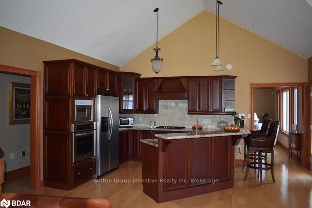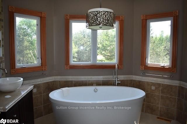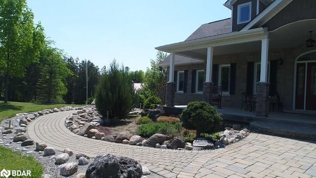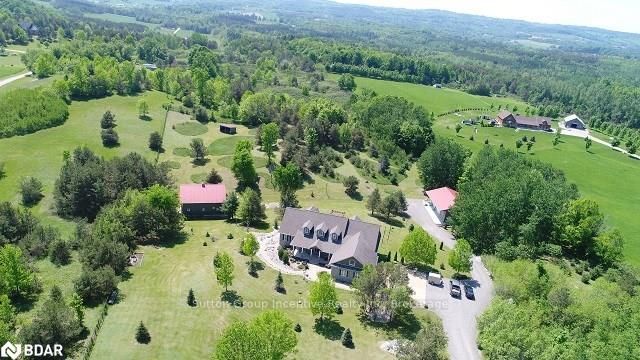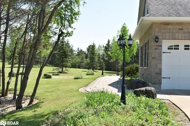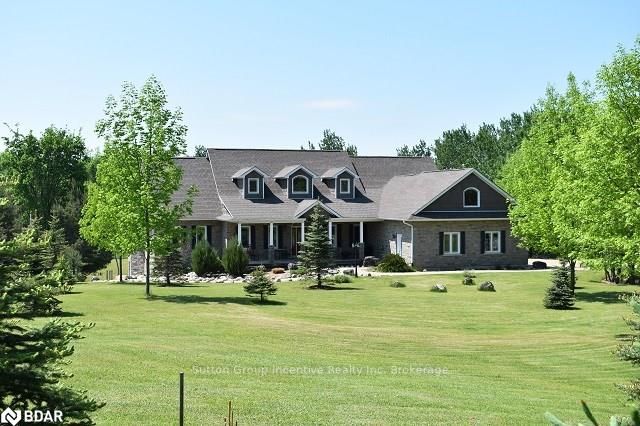 Stunning country estate situated on 5 manicured acres in the hills of Mulmur! This custom "all stone" home features over 5200sqft of finished living space which includes 4 bedrooms and 4 bathrooms, eat-in kitchen with separate dinette and formal dining room, a bright family room with cathedral ceilings and free standing gas fireplace. The living room boasts a beautiful view of the rear yard, walk-out to back deck, and modern finishes on the gas fireplace. The master bedroom also includes a walk-out to the back deck, a great place to sit and enjoy the evening sun sets! A spectacular 5+ piece master ensuite with a very spacious walk-in shower and free standing air jet soaker tub offer a spa-like experience! Bedrooms 2 and 3 share a 5 piece semi ensuite great for a growing family or accommodating guests. The fully finished walk-out basement features radiant heat floors throughout with a 1300sqft rec room and a floor to ceiling, see- through gas fireplace, separate wine room and wet bar, g