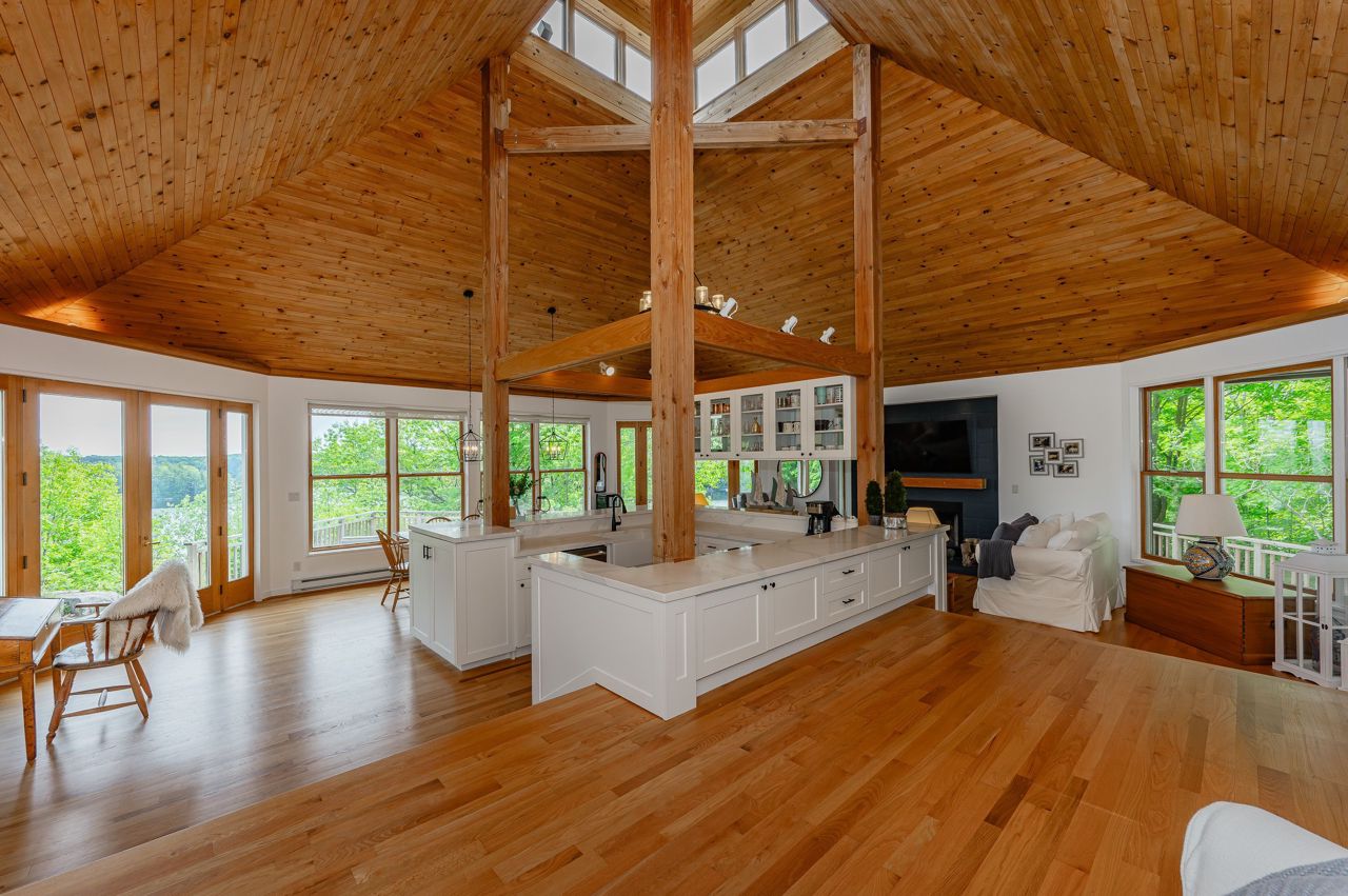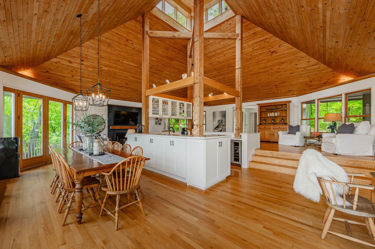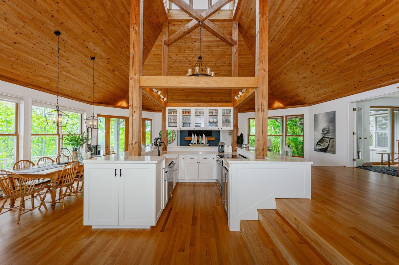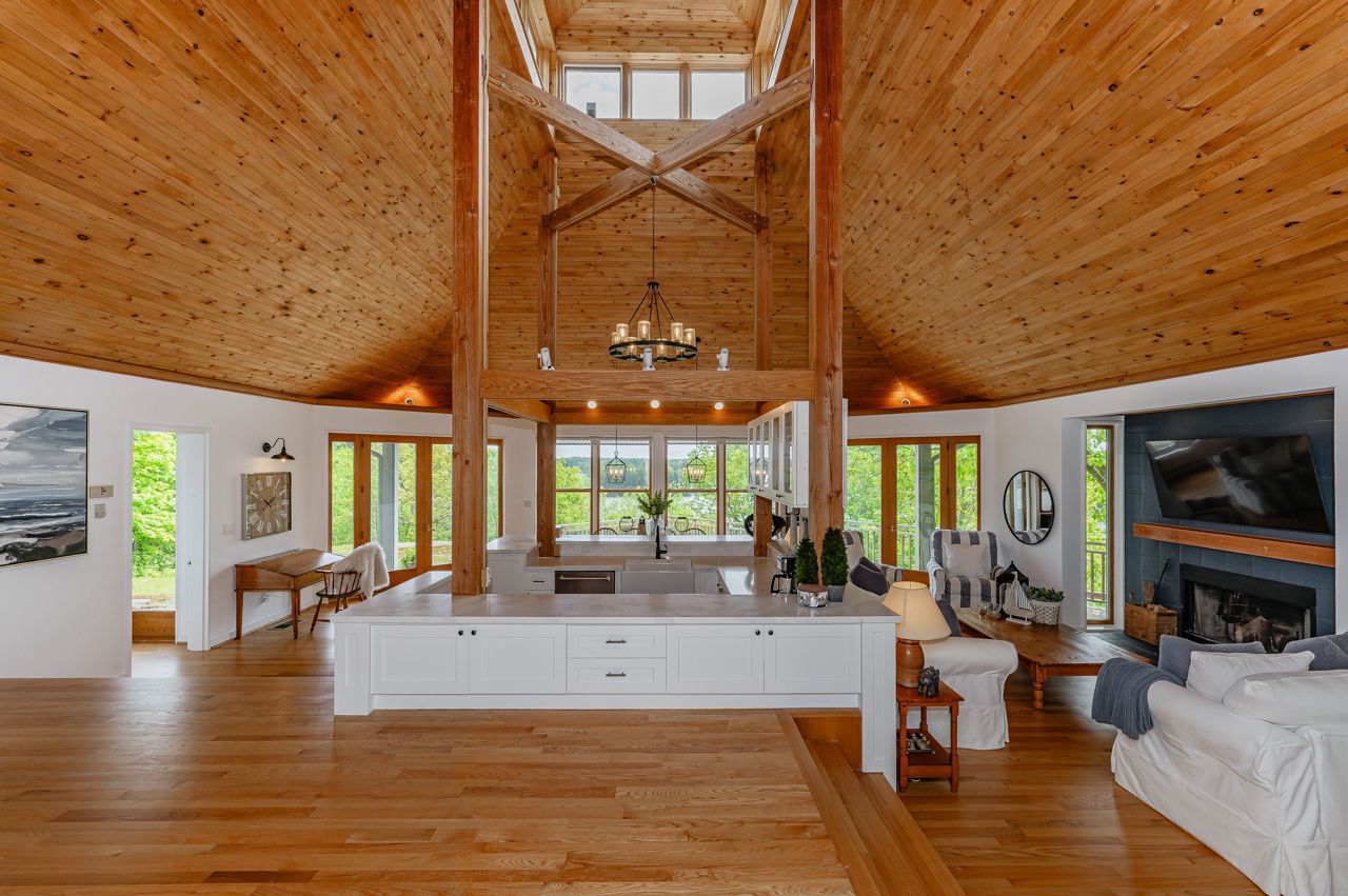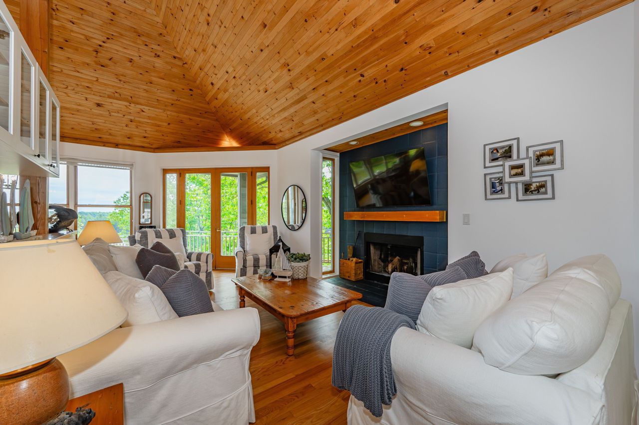 Bird's Nest Cottage: Expansive Timber Ceilings & Unmatched Lakefront Views on Private Bruce Lake! Perched high above scenic Bruce Lake, this architecturally designed, fully furnished, year-round cottage seamlessly combines rustic elegance w/ breathtaking vistas. Boasting 444 of private shoreline, boathouse, & soaring timber ceilings, this luxurious 7.1-AC retreat offers the ultimate escape for those seeking privacy & natural beauty in the heart of Muskoka. W/ 4 bedrms & 2 full baths, this stunning 2,000+ SF bungalow features panoramic southern lake views from all principal rms. The newly updated central kitchen is accented by dramatic timber frame elements. The open-concept layout integrates living, dining, & lounging areas, w/ a cozy family rm centred around a wood-burning fireplace for those perfect Muskoka evenings. The primary suite, tucked away in its own wing, ensures comfort & privacy w/ 4-pce ensuite. 3 additional bedrms, a 3-pce main bath, & laundry area completes the interior. Walkouts lead to expansive wrap-around decks, perfect for entertaining/relaxing in nature. The property also features a cozy fire pit area, ideal for gathering under the stars. W/ plenty of space available, theres also the potential to add a future garage or bunkie, enhancing the versatility & value of this incredible retreat. Recent updates: modern bathrms, freshly painted exterior, shiplap accent walls, trim, California shutters, light fixtures, & more. The boardwalk leads to the lake & boathouse w/ single slip, spacious interior sitting area, & top deck. An ATV trail provides an alternate route to the water. Perfectly positioned between Lake Joseph & Lake Rosseau, & just over 2 hrs from the GTA, enjoy the best of Muskoka living w/ easy access to all amenities. 10 mins from Rosseau & Port Sandfield, & 15 mins from Downtown Port Carling, providing complete privacy while being close to restaurants, boutiques, groceries, LCBO & more! A once-in-a-lifetime opportunity!