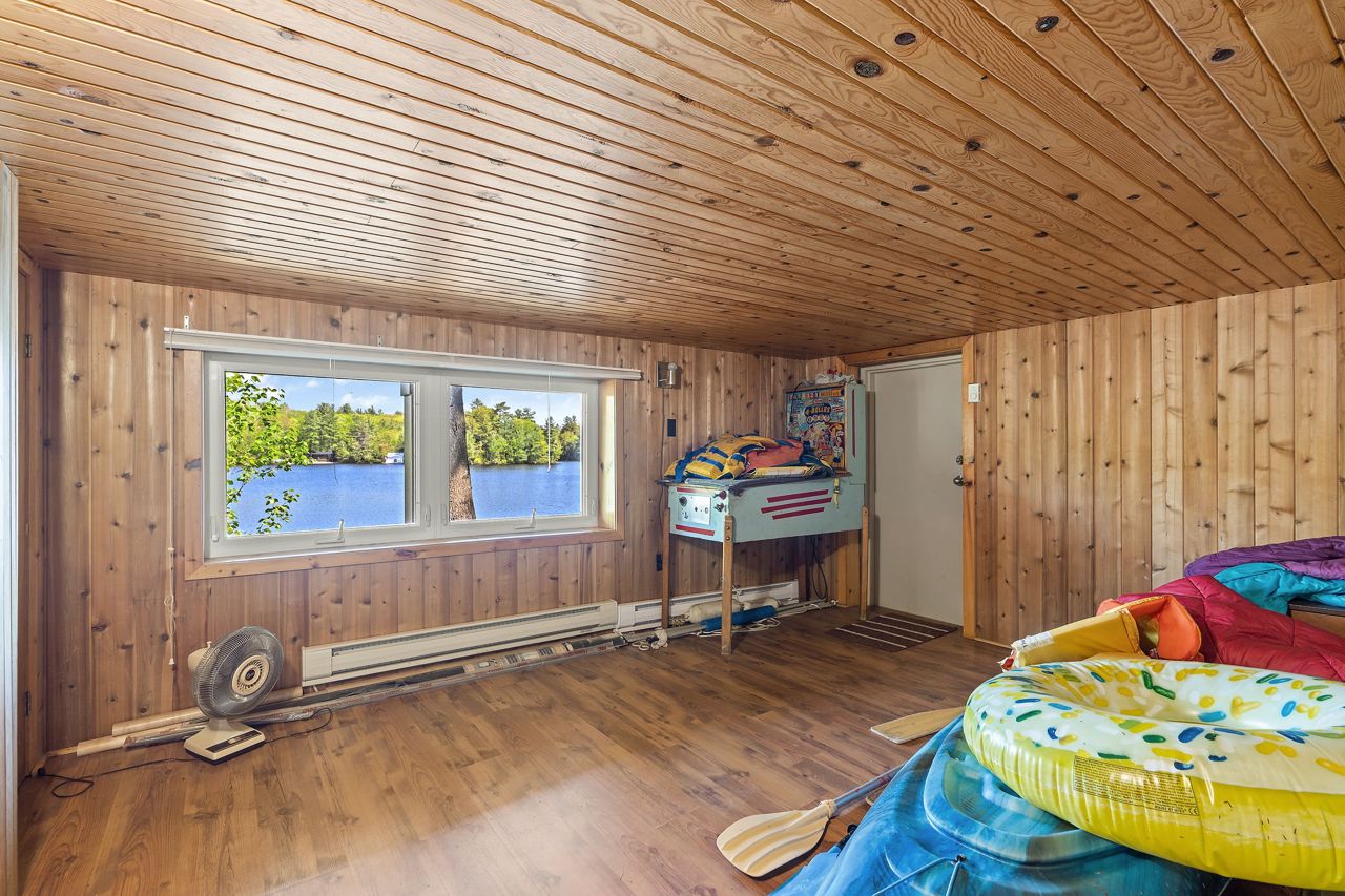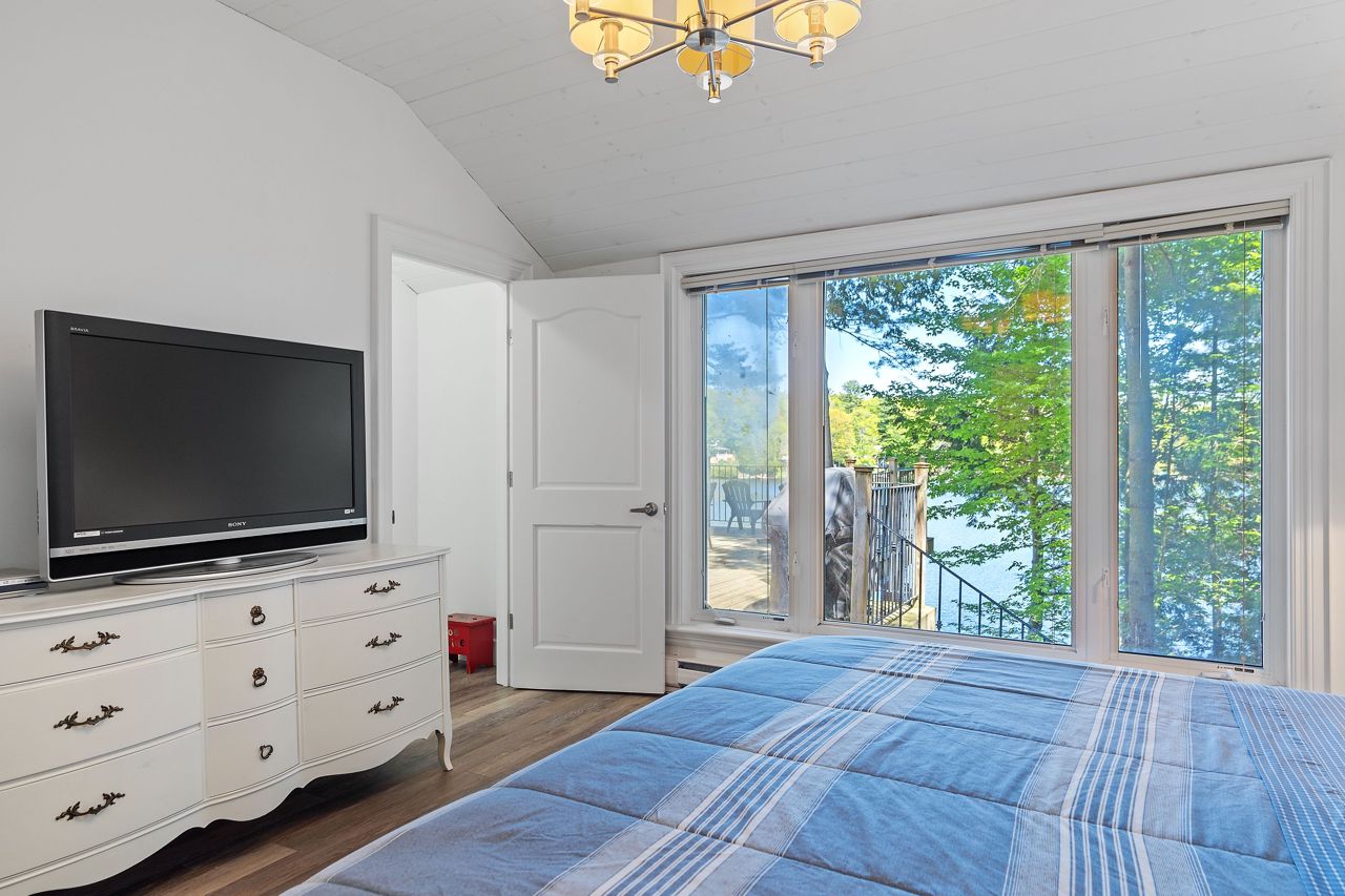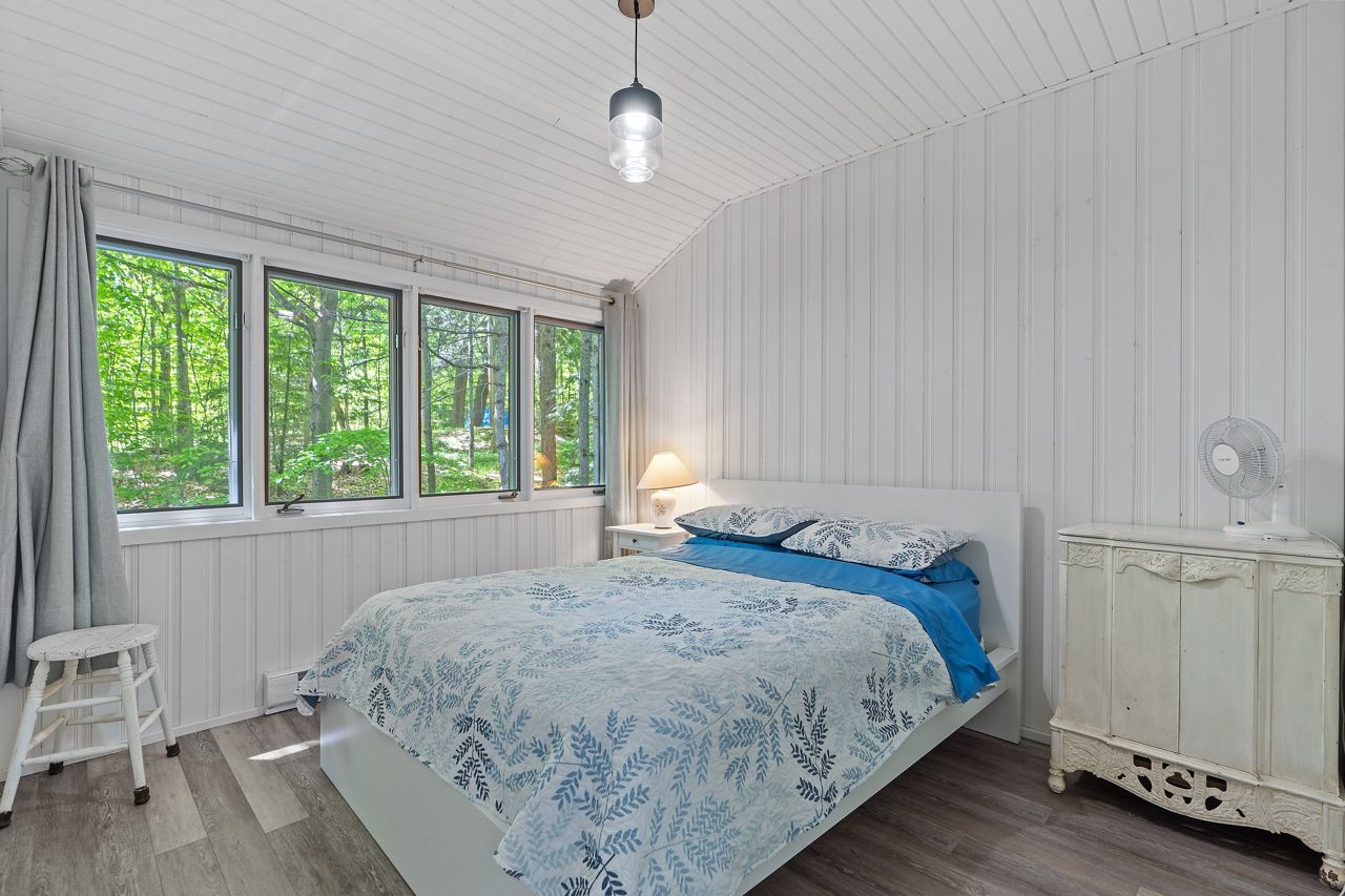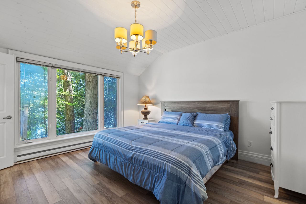 Welcome to this stunning spacious 3 bed 2 bath waterfront property. Picture yourself and the family eating dinner in the dinning room or relaxing in the large living room overlooking Bass lake. Open concept kitchen, large bedrooms and a master bedroom with breath taking views of the lake. Sip your morning coffee on the dock while the sun rises. Featuring a large garage and a bunkie for guest overflow. (Bunkie measurements: 10'5 x 16). Gorgeous outdoor wrap around deck perfect for entertaining and 109 feet of your own private water frontage with 2 docks. The perfect Muskoka place