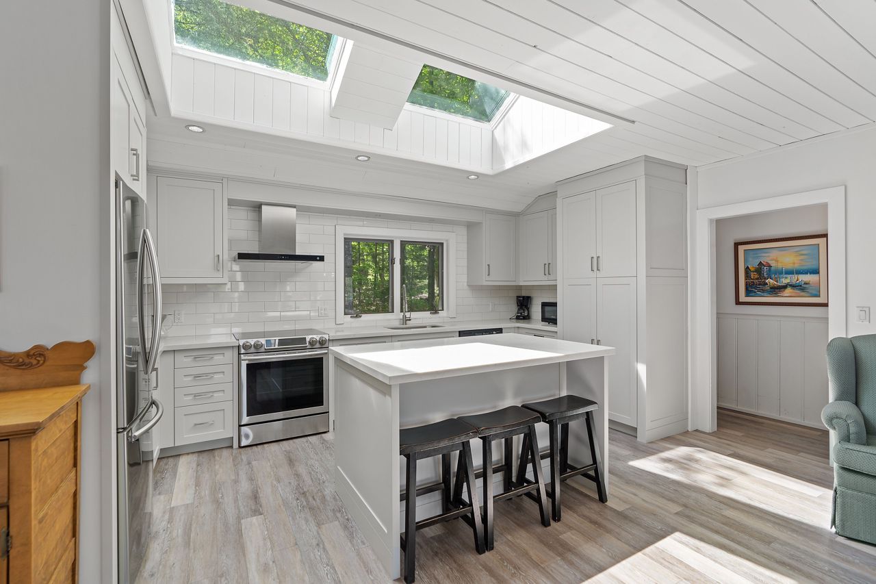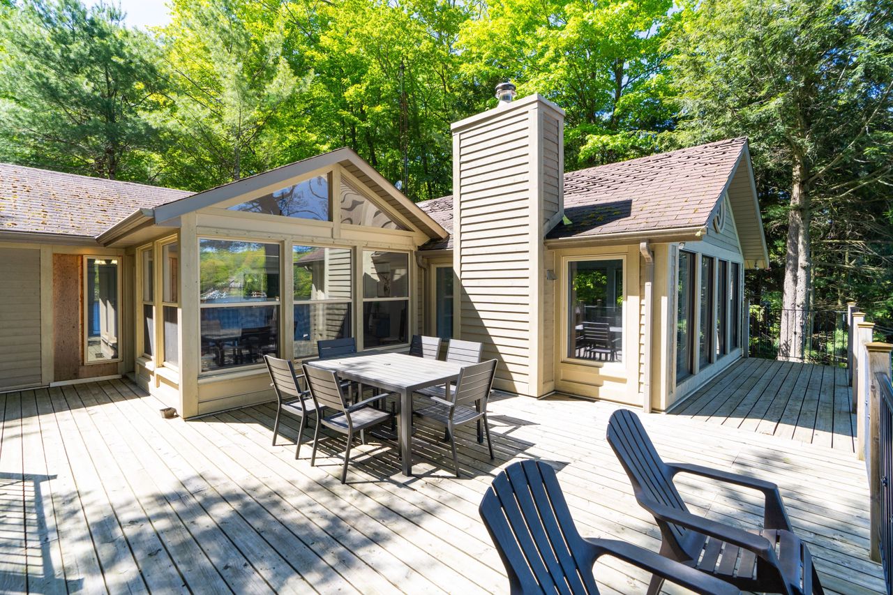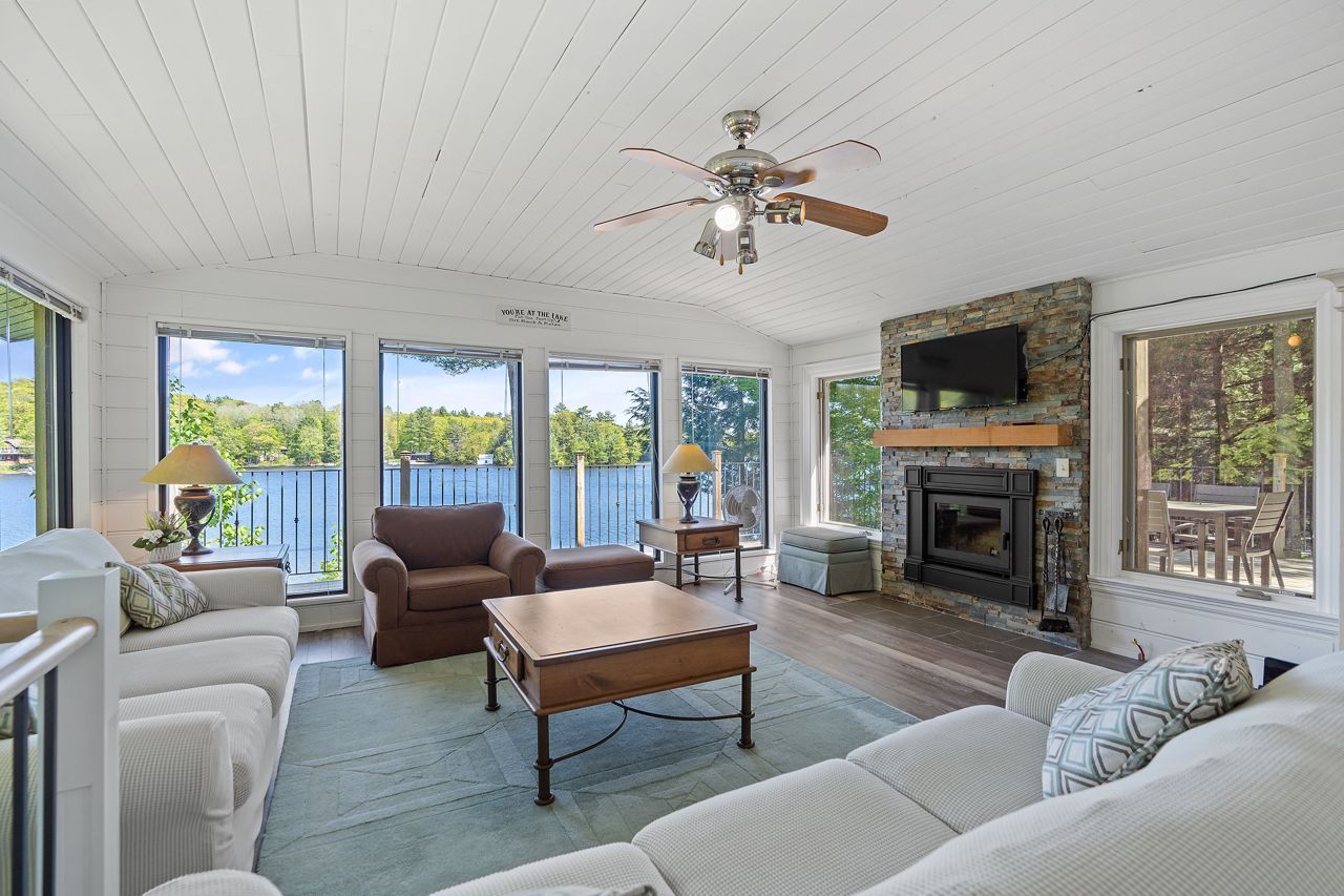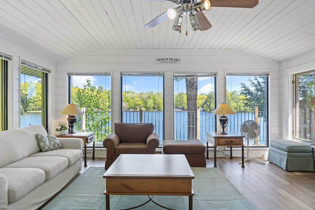 Welcome to this stunning spacious 3 bed 2 bath waterfront property. Picture yourself and the family eating dinner in the dinning room or relaxing in the large living room overlooking Bass lake. Open concept kitchen, large bedrooms and a master bedroom with breath taking views of the lake. Sip your morning coffee on the dock while the sun rises. Featuring a large garage and a bunkie for guest overflow. (Bunkie measurements: 10'5 x 16). Gorgeous outdoor wrap around deck perfect for entertaining and 109 feet of your own private water frontage with 2 docks. The perfect Muskoka place