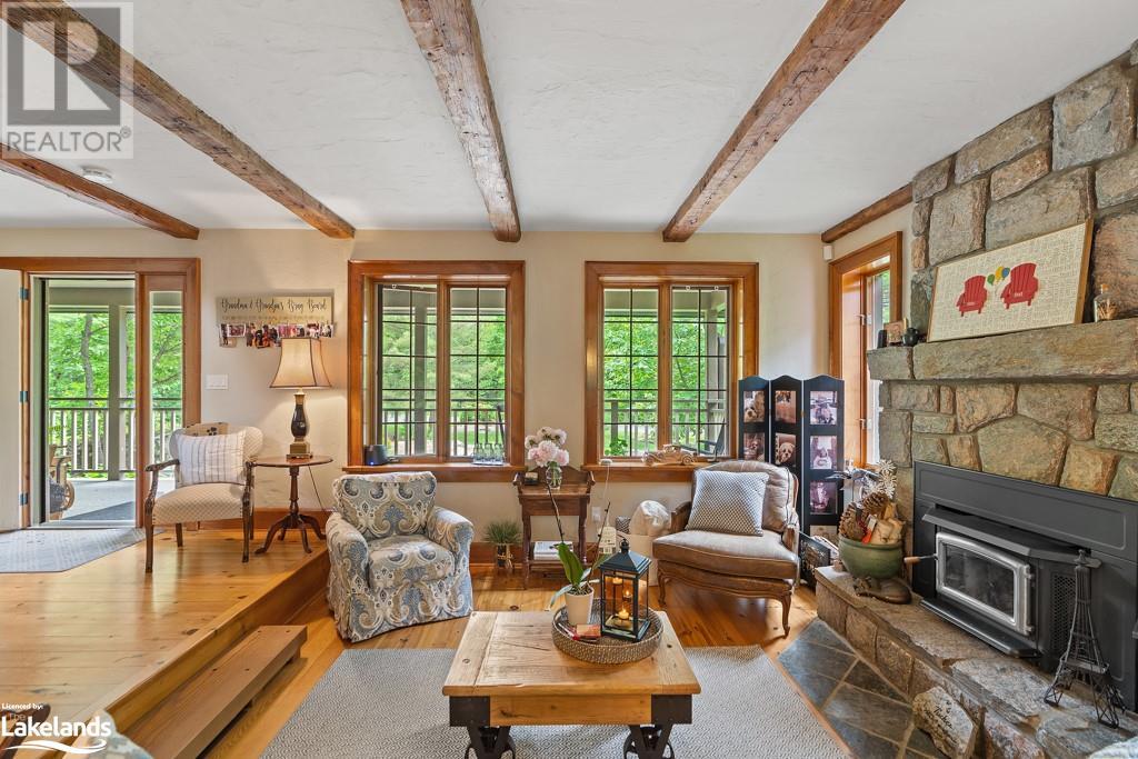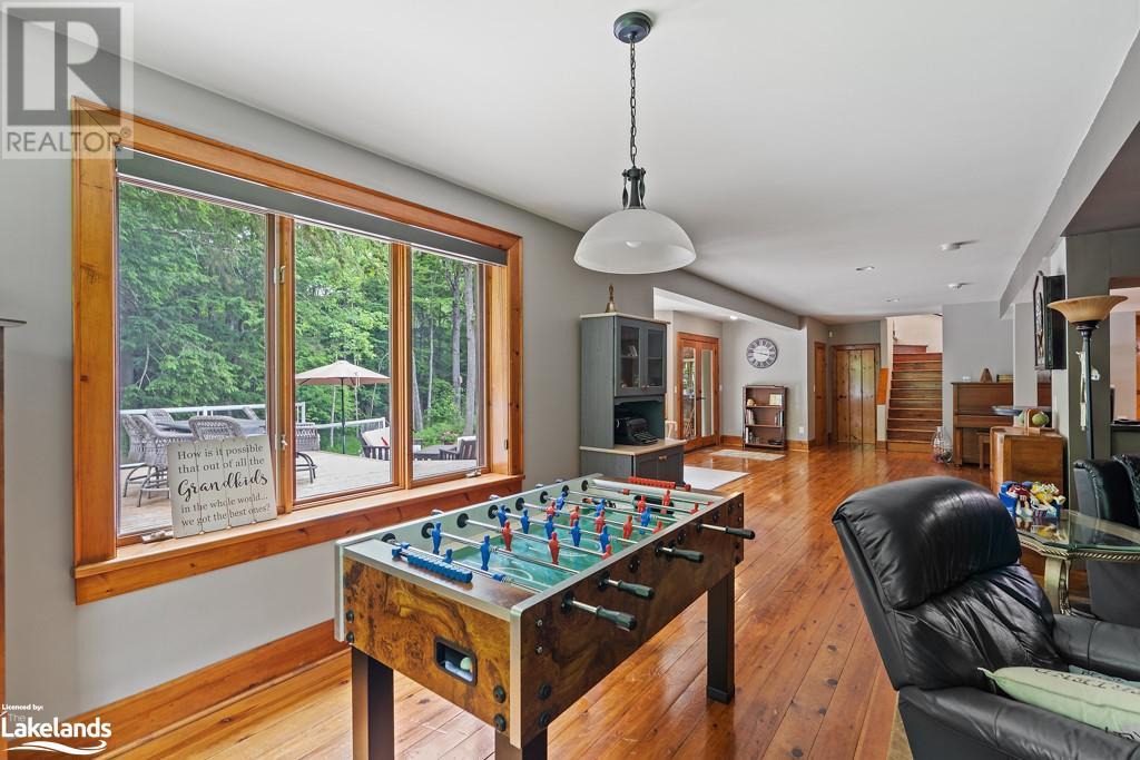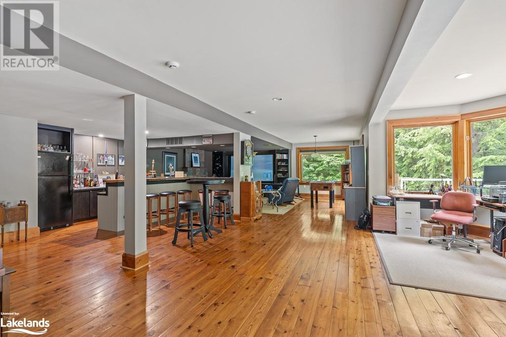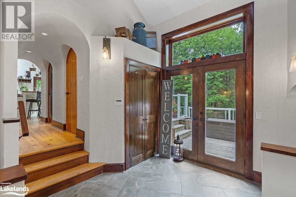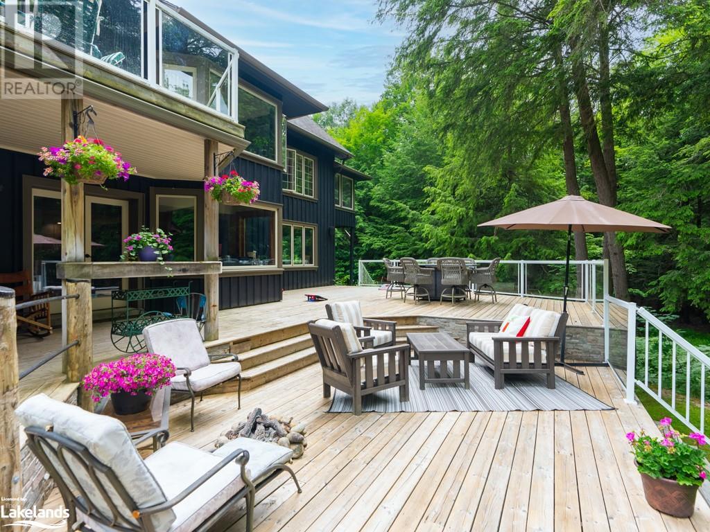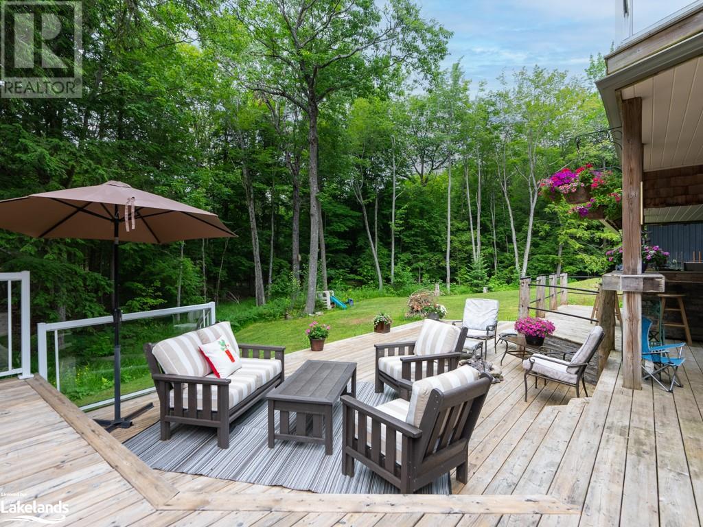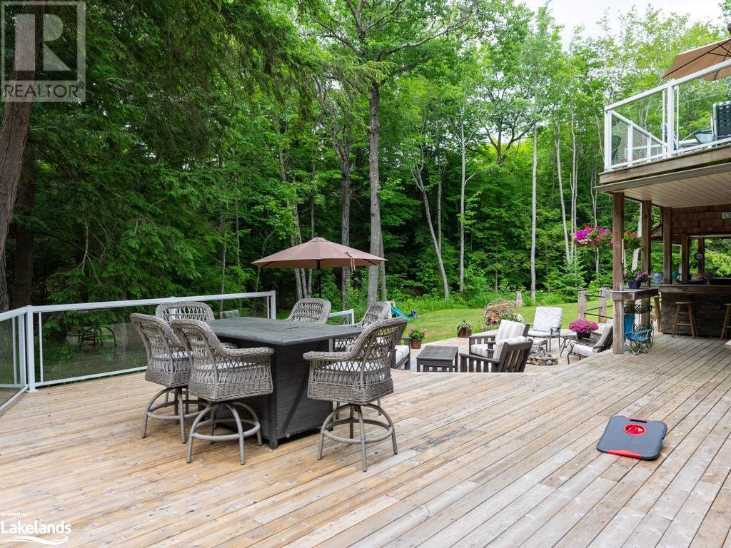 Introducing a fabulous home located in the prestigious Partridge Lane area, just minutes away from Bracebridge. This exquisite property boasts a spacious 3-bedroom layout, nestled on nearly 4 acres of picturesque land. Immerse yourself in the beauty of upgraded landscaping and indulge in an entertainer's dream backyard, complete with expansive decks and an outdoor bar. The interior of this home has been thoughtfully enhanced with numerous upgrades. Freshly painted walls provide a modern and inviting ambiance throughout. The primary bedroom offers a luxurious spa-like ensuite, featuring a newly added barnboard feature wall for a touch of rustic charm. Additionally, a charming Muskoka Room offers a serene retreat for relaxation and leisure. Notable improvements include a newer furnace, ensuring optimal comfort and efficiency. In addition, the property is equipped with a backup generator, providing peace of mind during power outages. The lower level of the home presents an ideal space for recreation and entertainment, with direct walkout access to the sprawling decks and outdoor bar. Enjoy movie nights or TV marathons in the theatre room, perfect for quality time with family and friends. This remarkable property combines elegant design, captivating outdoor spaces, and a wealth of upgraded features. The current owners have a boat slip at Spirit Bay Marina, 5 minutes away, having full access to Lake Muskoka. With its prime location near Bracebridge and an array of amenities, this home presents a rare opportunity to experience Muskoka living at its best. (id:22211)