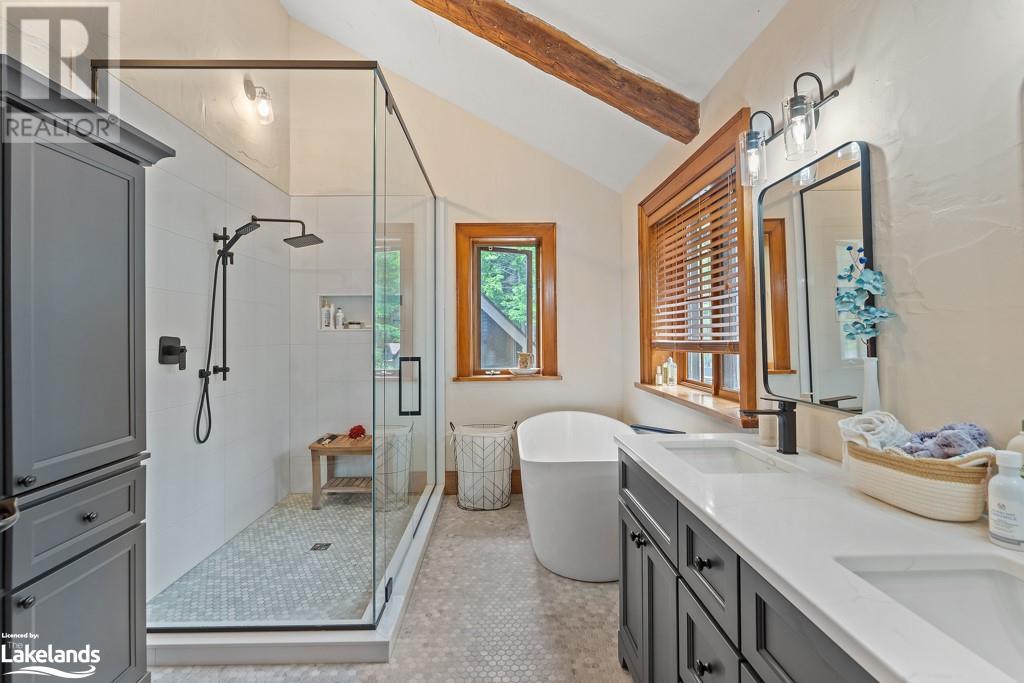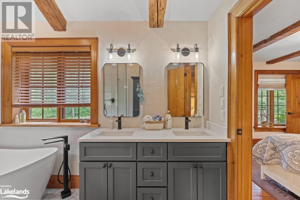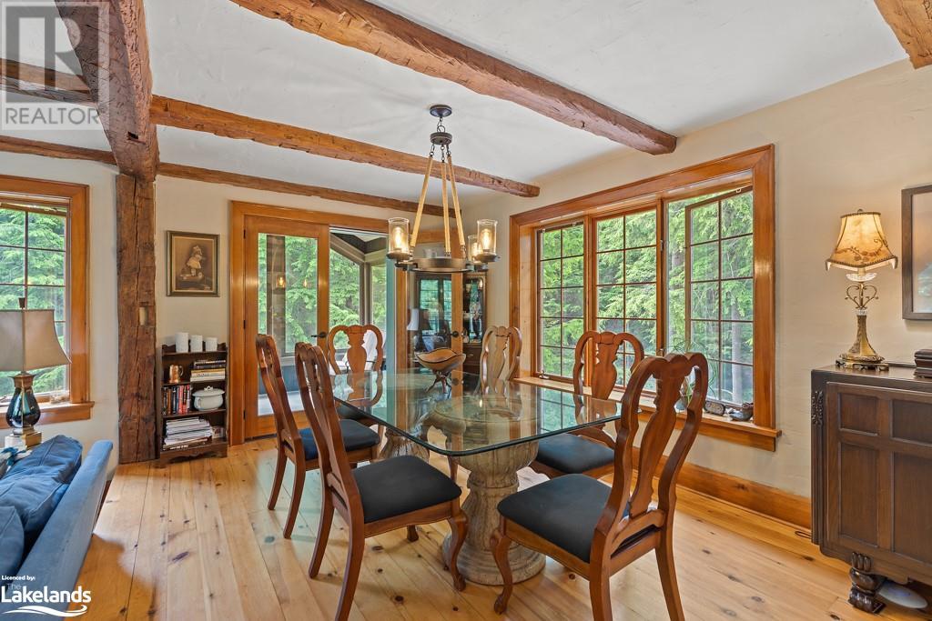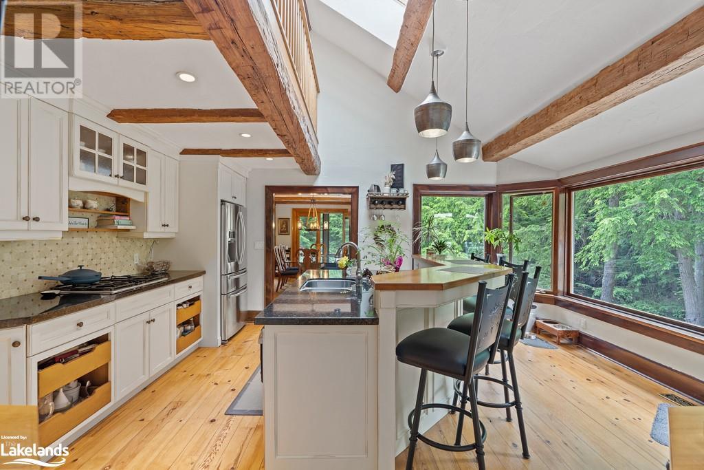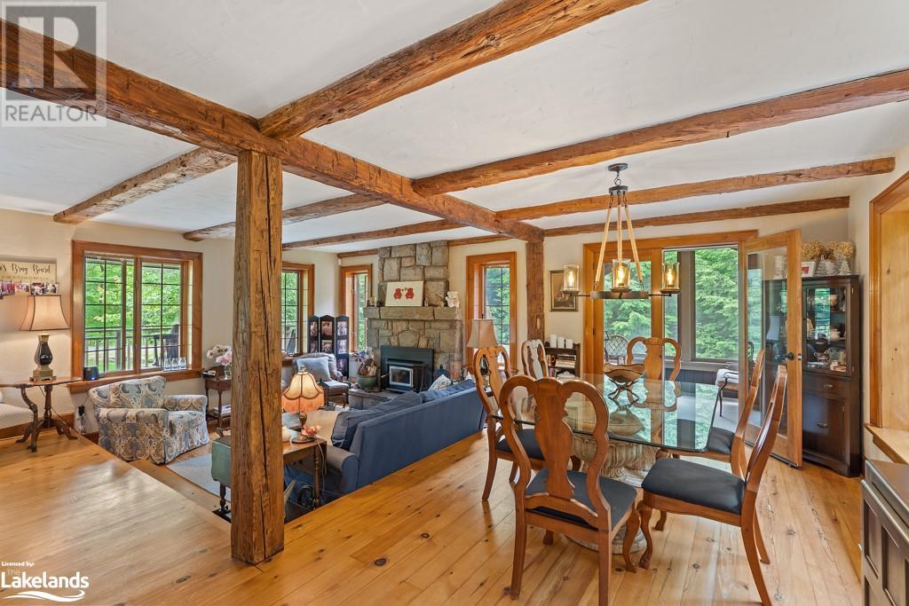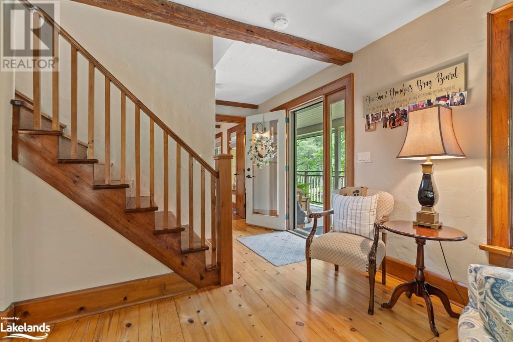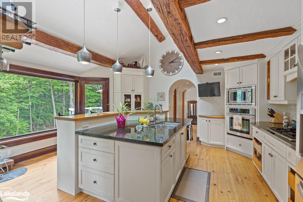 Introducing a fabulous home located in the prestigious Partridge Lane area, just minutes away from Bracebridge. This exquisite property boasts a spacious 3-bedroom layout, nestled on nearly 4 acres of picturesque land. Immerse yourself in the beauty of upgraded landscaping and indulge in an entertainer's dream backyard, complete with expansive decks and an outdoor bar. The interior of this home has been thoughtfully enhanced with numerous upgrades. Freshly painted walls provide a modern and inviting ambiance throughout. The primary bedroom offers a luxurious spa-like ensuite, featuring a newly added barnboard feature wall for a touch of rustic charm. Additionally, a charming Muskoka Room offers a serene retreat for relaxation and leisure. Notable improvements include a newer furnace, ensuring optimal comfort and efficiency. In addition, the property is equipped with a backup generator, providing peace of mind during power outages. The lower level of the home presents an ideal space for recreation and entertainment, with direct walkout access to the sprawling decks and outdoor bar. Enjoy movie nights or TV marathons in the theatre room, perfect for quality time with family and friends. This remarkable property combines elegant design, captivating outdoor spaces, and a wealth of upgraded features. The current owners have a boat slip at Spirit Bay Marina, 5 minutes away, having full access to Lake Muskoka. With its prime location near Bracebridge and an array of amenities, this home presents a rare opportunity to experience Muskoka living at its best. (id:22211)