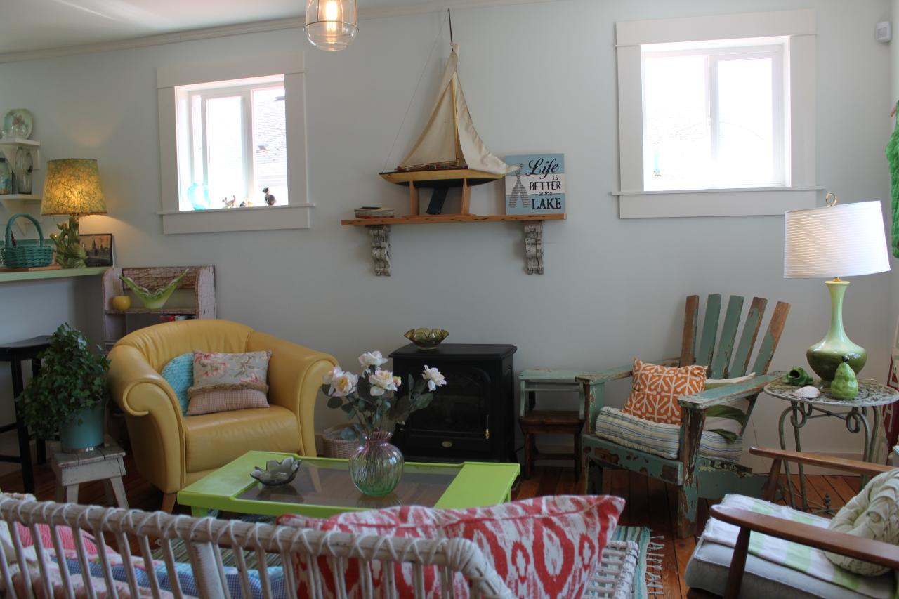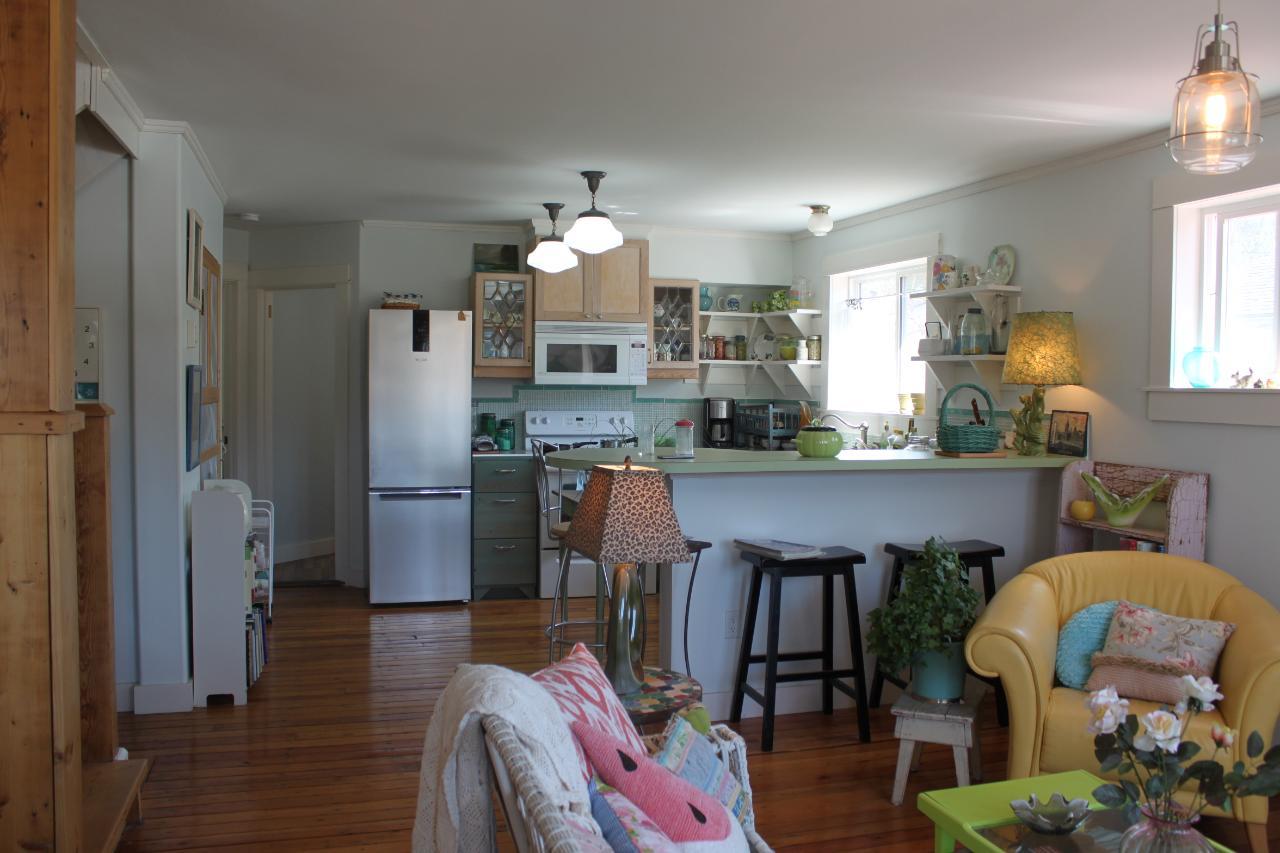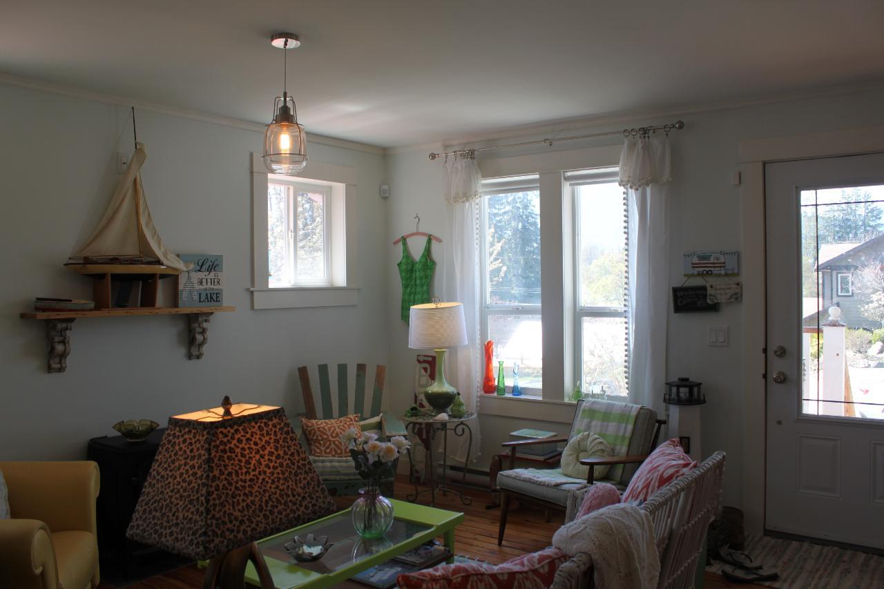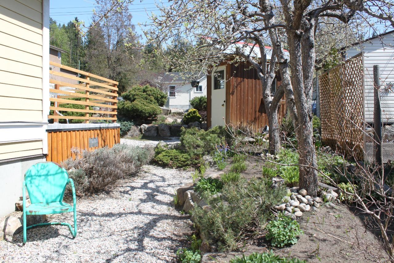 Heritage Charm plus Modern Amenities!! This 1952 'character' home was completely renovated in 2008 - framing, electrical, plumbing, insulation (rockwool), drywall, siding, fixtures.....and a complete suite in the basement. Some of the original character of the home remains, including the fir flooring on the main and upper level, and the use of recycled wood as finishing touches in the home. The main floor is open and bright - lower kitchen cupboards made of recycled wood and painted for an 'antique' look, convenient pantry cupboard and a breakfast bar. Living/dining area, large closet for storage, full bath/laundry, and 2 bedrooms which both have patio doors onto the back deck. The upstairs would make a great master bedroom...complete with full bath which has a 'claw foot' tub. The legal lower level suite has two bedrooms, open kitchen/living/dining area, full bath with stackable washer/dryer. Safe and Sound Rockwood insulation in the ceiling prevents noise transfer. Both main living area and the suite have new hot water heaters. The 10' x 24' sundeck out back was refinished with 'Tuffdeck' for low maintenance. Little garden/storage shed out back. Beautiful rock gardens with evergreen shrubs, perennials, and four heritage fruit trees (2 pear, 2 apple). Parking in front, or access from the laneway. Close to schools and an easy walk to shopping, restaurants, and the lake! Use the suite for your guests, or rent long term, or consider Airbnb options for a mortgage helper! (id:22211)