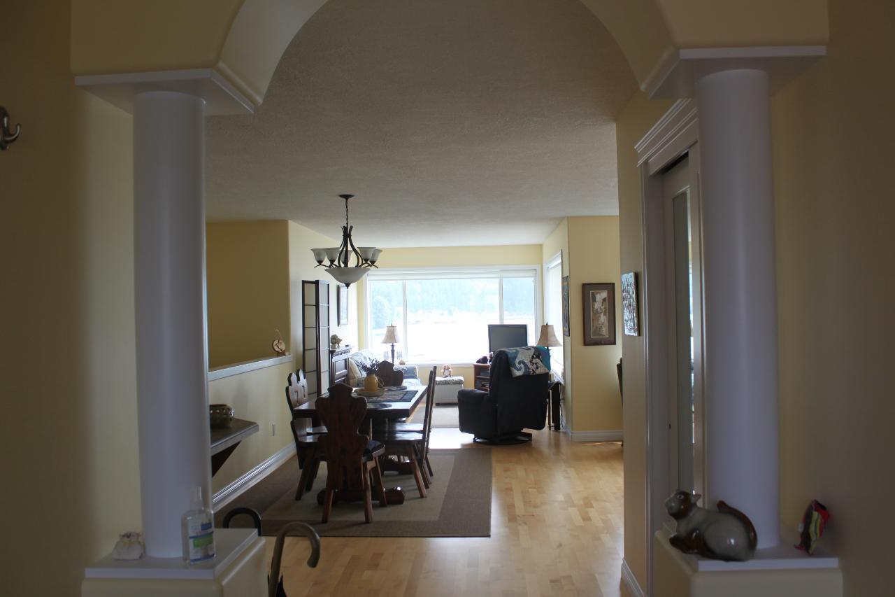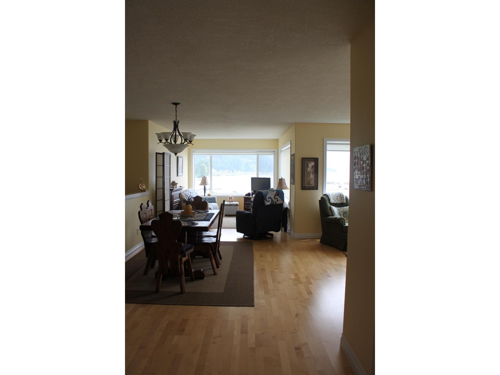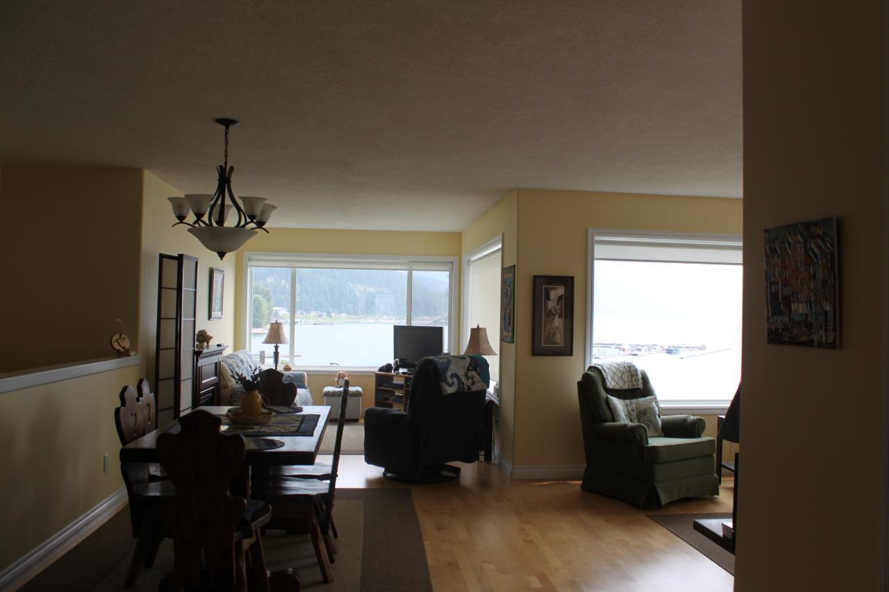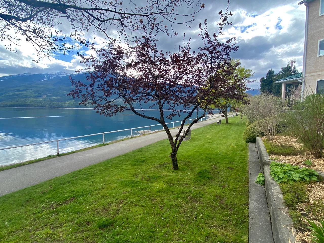 Truly beautiful lake and mountain views from this corner condo unit along the waterfront in Nakusp!! Who wouldn't enjoy living here and enjoying these gorgeous views year round! The main floor is a totally open and inviting living space, with lots of big windows overlooking the waterfront and a private deck off the living room - perfect spot for your morning coffee and then take a walk along the waterfront walkway! Great kitchen for cooking with lots of space and counter tops. Master bedroom has 2 closets with plenty of room, and a full ensuite bath - and again, lakeviews! Full main bath and convenient laundry room also on the main. The lower level is an open den/office/famiy room space and a full bath - perfect for a 2nd bedroom for guests, or perhaps your master suite. The lower level accesses a private patio area, and the common gardens as well. Single attached garage for your vehicle. Right downtown, so easy access to all amenities. Strata fee $330.50. (id:22211)