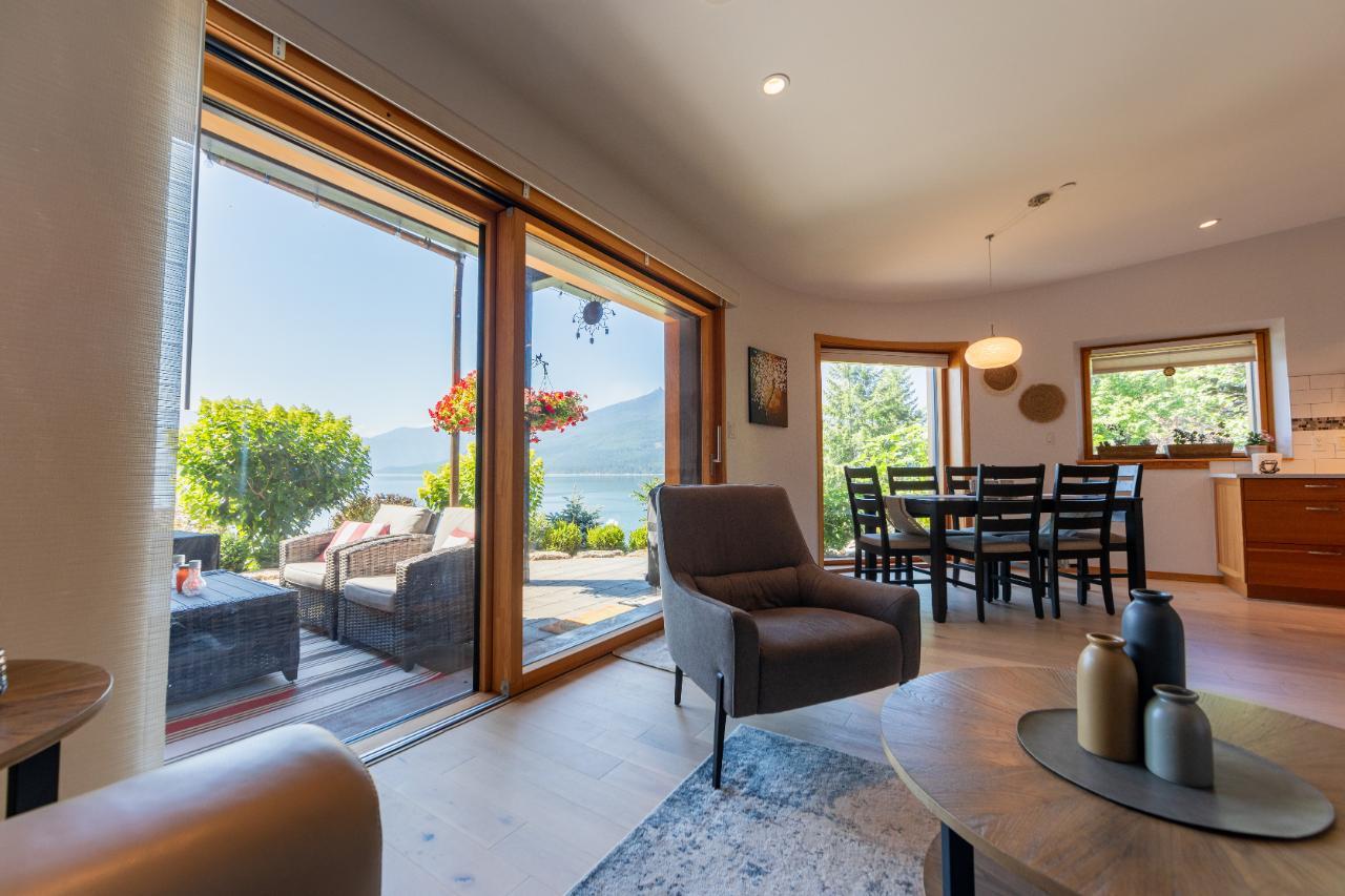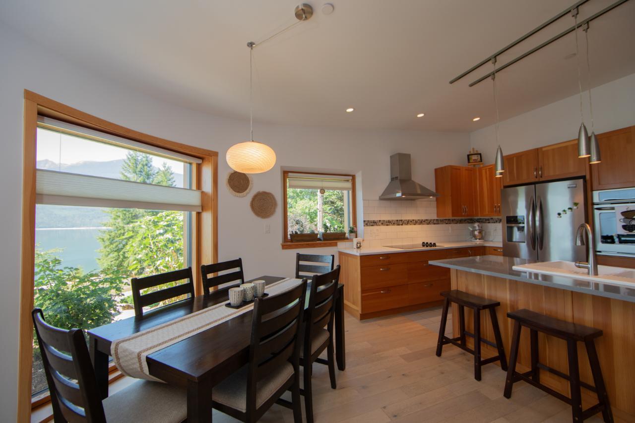 Masterfully designed Certified Passive built home located on the shores of Arrow Lake. Hike, bike, paddle and soak in all Nakusp has to offer in this premium location with the lake and greenway right at your door step. Modern amenities and energy savings in this two bedroom and two and a half bath home. Use 85% less energy than a conventional home in this certified Passive house. Heated tile entrance with an open concept living room, dining room , and kitchen. Locally sourced fir flooring , siding and doors. The kitchen boasts architecturally rounded walls, solid surface counter tops, natural wood cabinetry, and ample storage in the centre island. Pantry and main floor laundry off of the kitchen. Dining room with corner windows giving you a 180 degree view of the outdoors. The living room walks out onto a beautiful patio to enjoy the lake and saddle mountain. Fully landscaped yard. Escape to the master bedroom with a full ensuite with double sinks and tiled shower. Upstairs you'll find an office/reading nook and a guest bedroom with an ensuite. Toy garage for all your recreational toys. Low maintenance property with beautiful landscaping. Enjoy a carefree lifestyle on the shores of Arrow Lake. (id:22211)