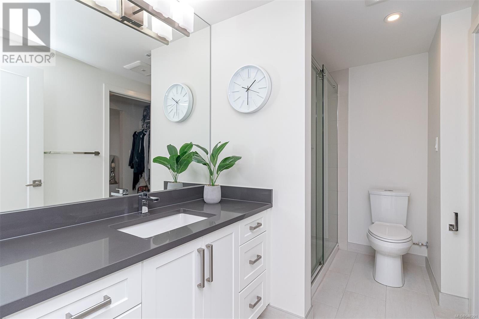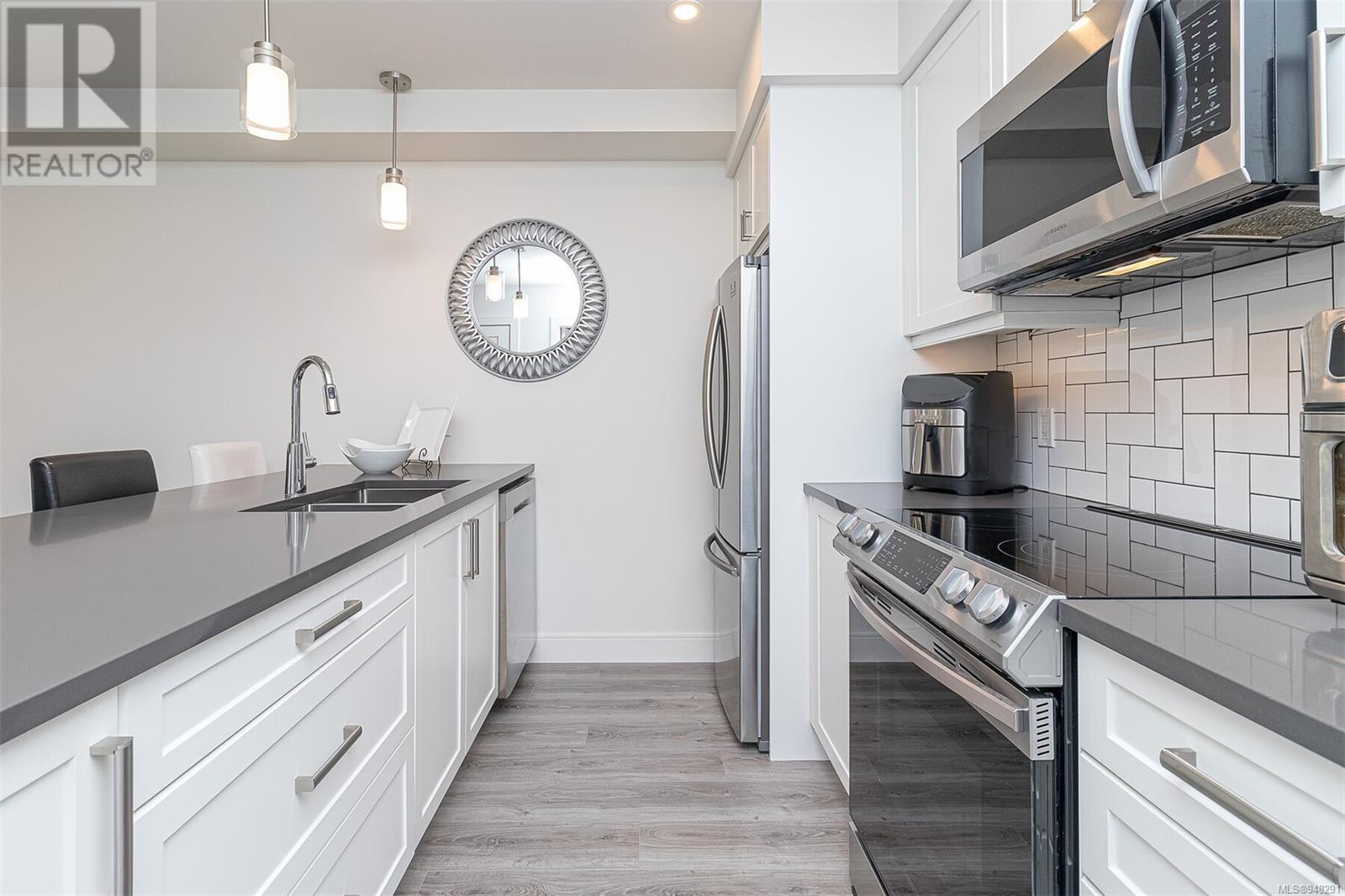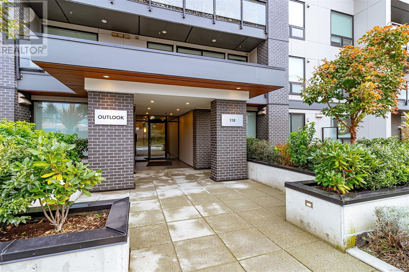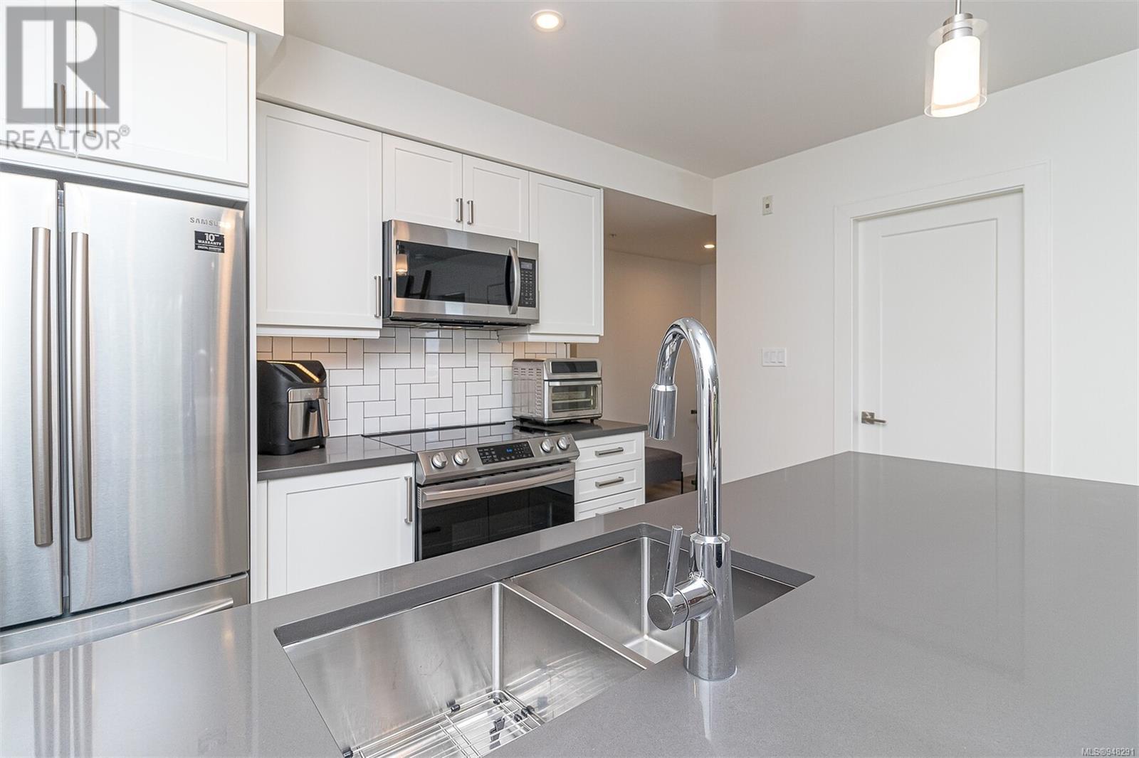 Located in Nanaimo’s newest urban community, Harbourview District, Outlook offers island living at its finest. A short walk to the heart of downtown, this one-bedroom plus den condo enjoys a spacious deck with stunning ocean views plus all the conveniences of downtown living. The open concept kitchen features stainless steel appliances, quartz countertops and a herringbone tile backsplash. The primary bedroom features a walk-through closet leading to your ensuite. A spacious laundry/storage room is opposite the den, at the unit entrance. Every home in Outlook includes one parking stall located in a secure underground parkade. The common area includes a back garden and rooftop patio where you can enjoy panoramic views of the ocean, mountains and cities. If you enjoy getting out and walking this location is perfect, Close to shopping, ocean and street has been updated with walking friendly pathways. (id:22211)