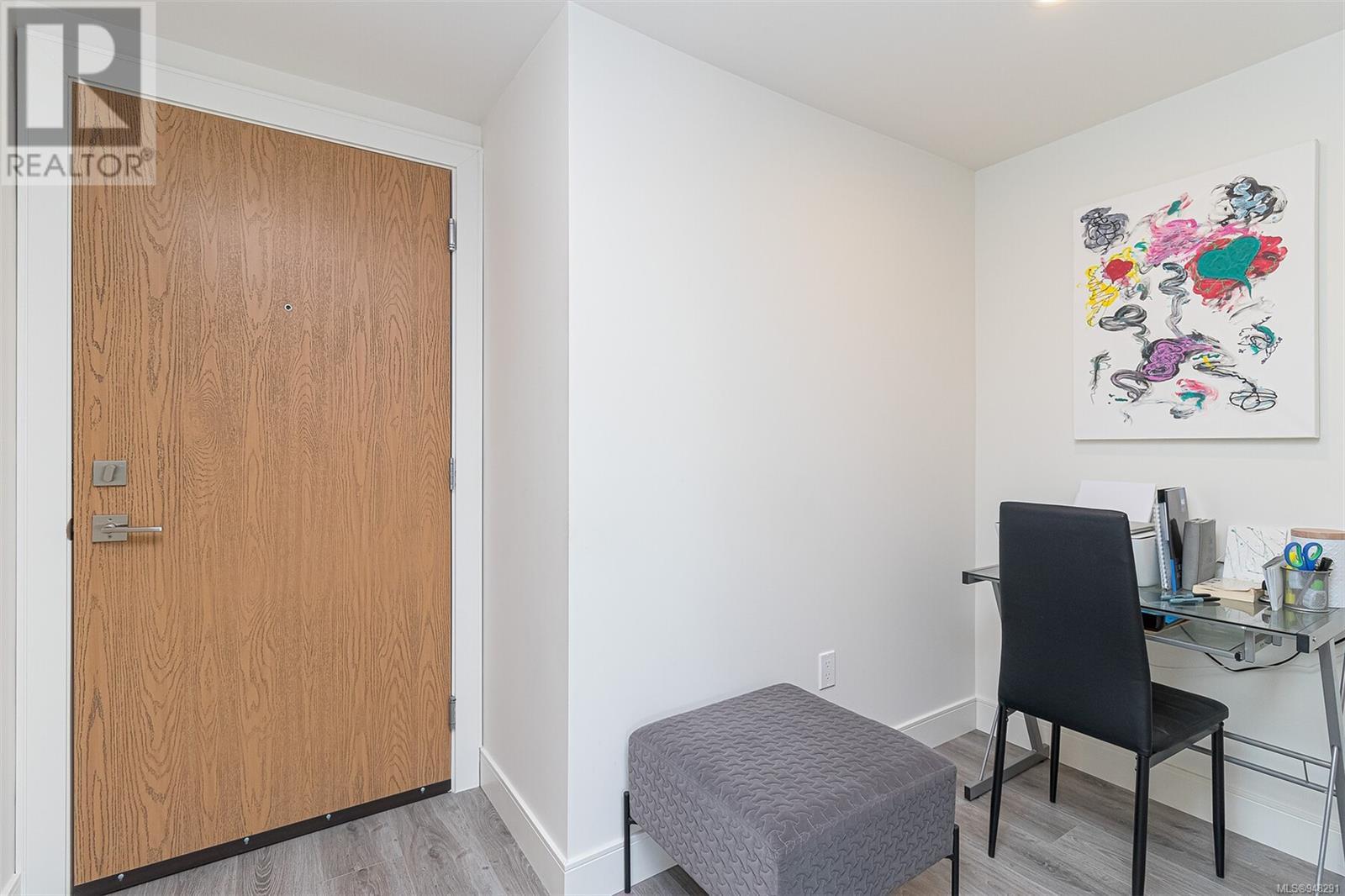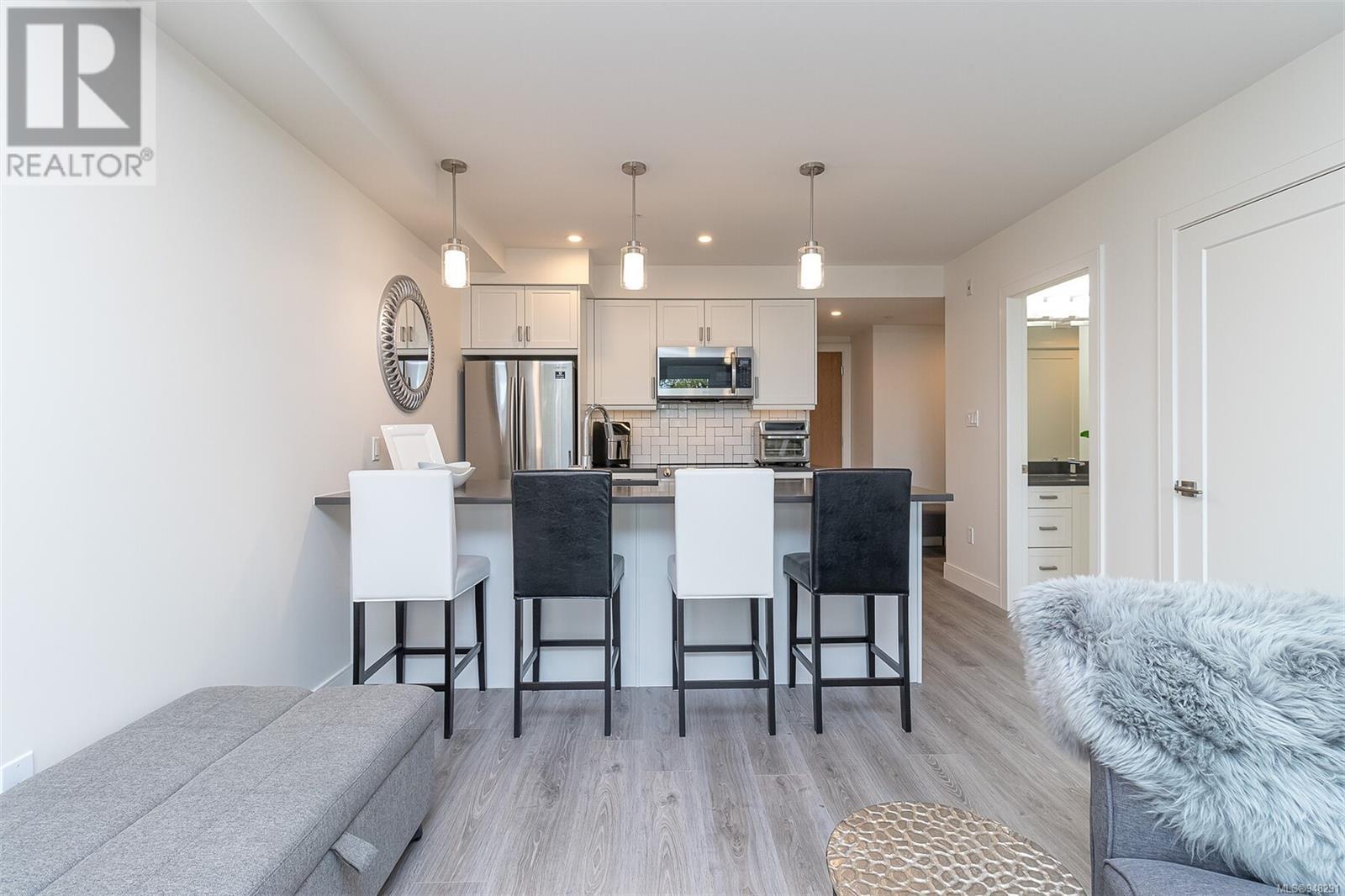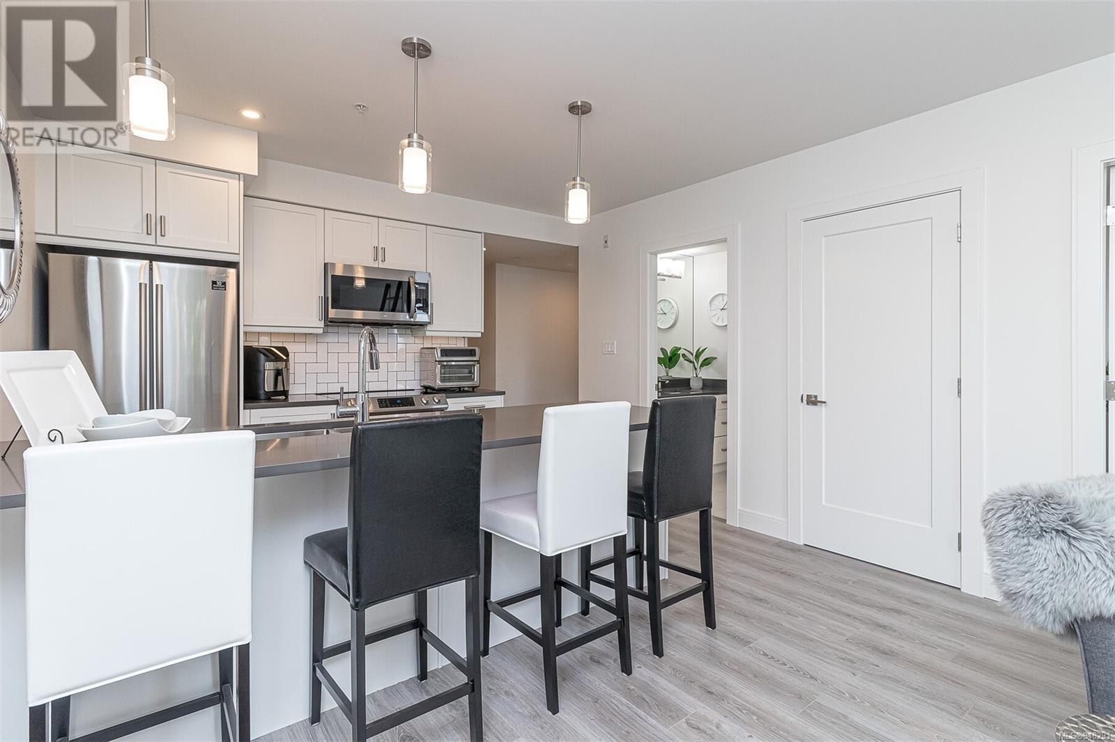 Located in Nanaimo’s newest urban community, Harbourview District, Outlook offers island living at its finest. A short walk to the heart of downtown, this one-bedroom plus den condo enjoys a spacious deck with stunning ocean views plus all the conveniences of downtown living. The open concept kitchen features stainless steel appliances, quartz countertops and a herringbone tile backsplash. The primary bedroom features a walk-through closet leading to your ensuite. A spacious laundry/storage room is opposite the den, at the unit entrance. Every home in Outlook includes one parking stall located in a secure underground parkade. The common area includes a back garden and rooftop patio where you can enjoy panoramic views of the ocean, mountains and cities. If you enjoy getting out and walking this location is perfect, Close to shopping, ocean and street has been updated with walking friendly pathways. (id:22211)