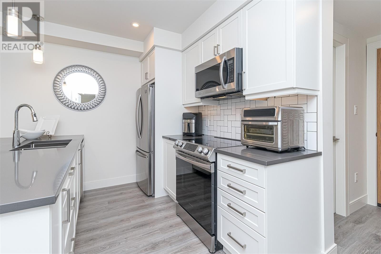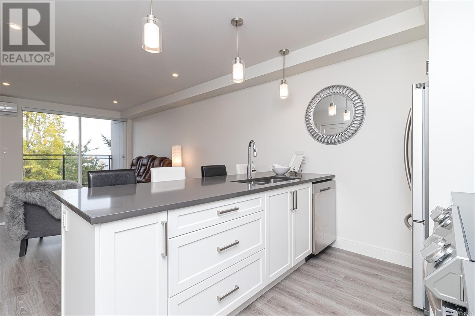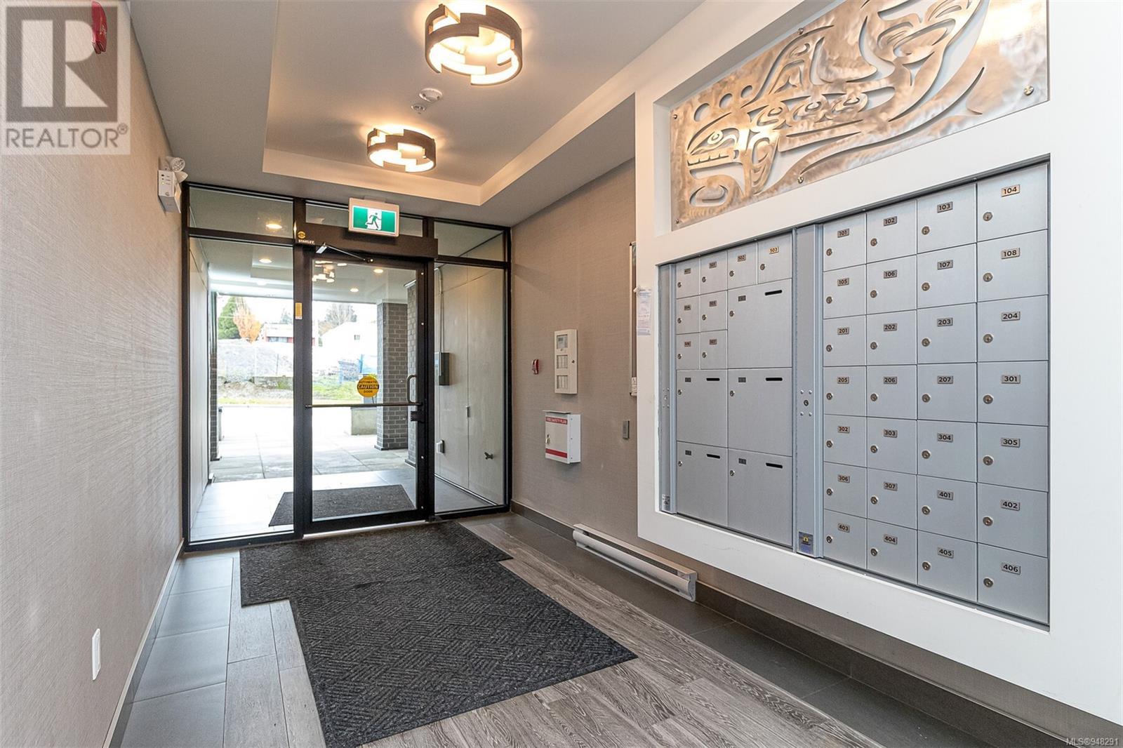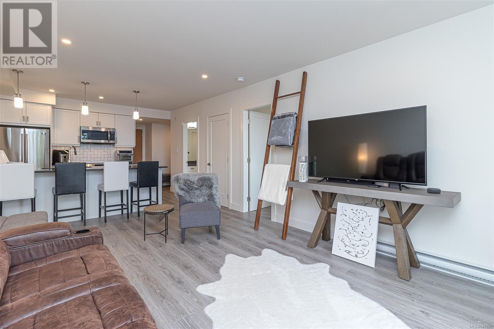 Located in Nanaimo’s newest urban community, Harbourview District, Outlook offers island living at its finest. A short walk to the heart of downtown, this one-bedroom plus den condo enjoys a spacious deck with stunning ocean views plus all the conveniences of downtown living. The open concept kitchen features stainless steel appliances, quartz countertops and a herringbone tile backsplash. The primary bedroom features a walk-through closet leading to your ensuite. A spacious laundry/storage room is opposite the den, at the unit entrance. Every home in Outlook includes one parking stall located in a secure underground parkade. The common area includes a back garden and rooftop patio where you can enjoy panoramic views of the ocean, mountains and cities. If you enjoy getting out and walking this location is perfect, Close to shopping, ocean and street has been updated with walking friendly pathways. (id:22211)