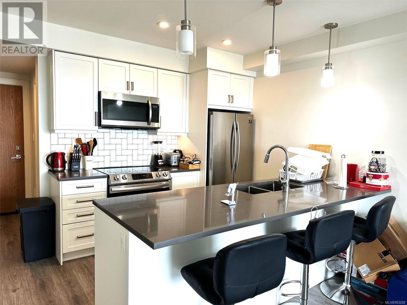 This top floor ocean view one bedroom one bath condo located within walking distance to downtown Nanaimo, close to all amenities. The Primary bedroom is a sanctuary of comfort with ocean views and ensuite. The kitchen is equipped with top of the line high quality stainless steel appliances. This is Steps away from downtown, Hullo ferry terminal, Helijet and float plane terminals are close by if life takes you to Vancouver, you can get there with ease! This one bedroom condo is currently tenanted Measurements are approximate and taken from Developers floorplan. Verify if important. (id:22211)