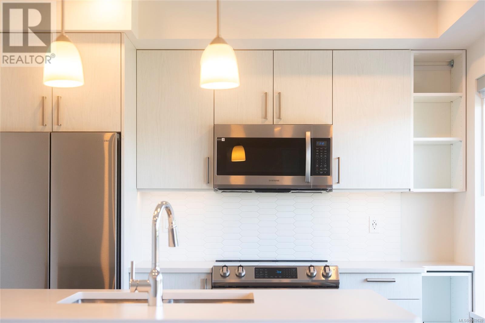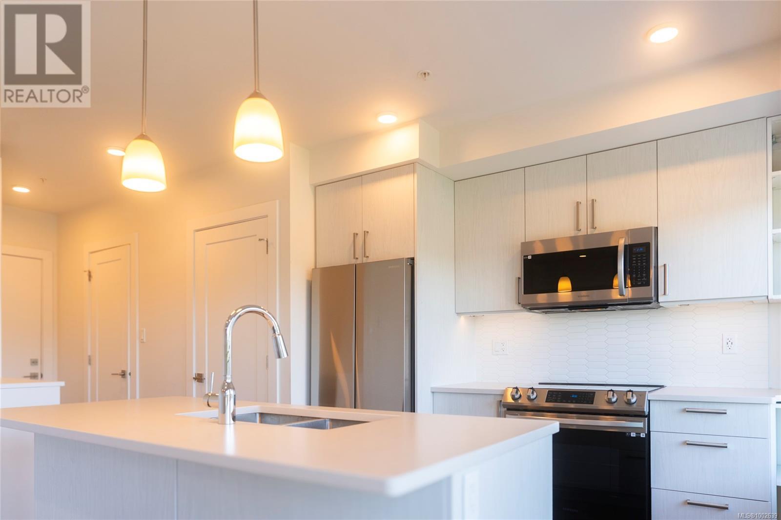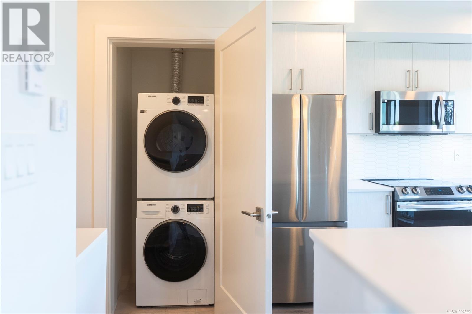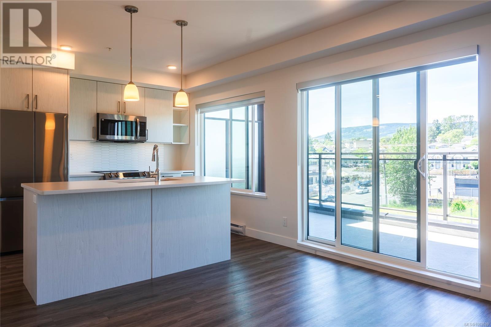 Experience unparalleled urban living in this exquisite apartment within the Prospect by Harbourview building. Located on on the top floor, this residence boasts a high-level kitchen and in-suite laundry, blending modern convenience with sophisticated design. Step onto your private balcony and be captivated by sweeping mountain and city views, or head to the communal rooftop patio for an even more expansive panorama of the ocean and cityscape. Enjoy the ultimate walkable lifestyle with easy access to the marina, bustling nightlife, and essential grocery stores. The Harbourview District is designed with pedestrian and cyclist-friendly pathways, connecting you to the best of downtown Nanaimo. This prime location ensures that entertainment, dining, and daily necessities are just steps away, making it an ideal choice for those seeking convenience and a vibrant community atmosphere. (id:61201)
