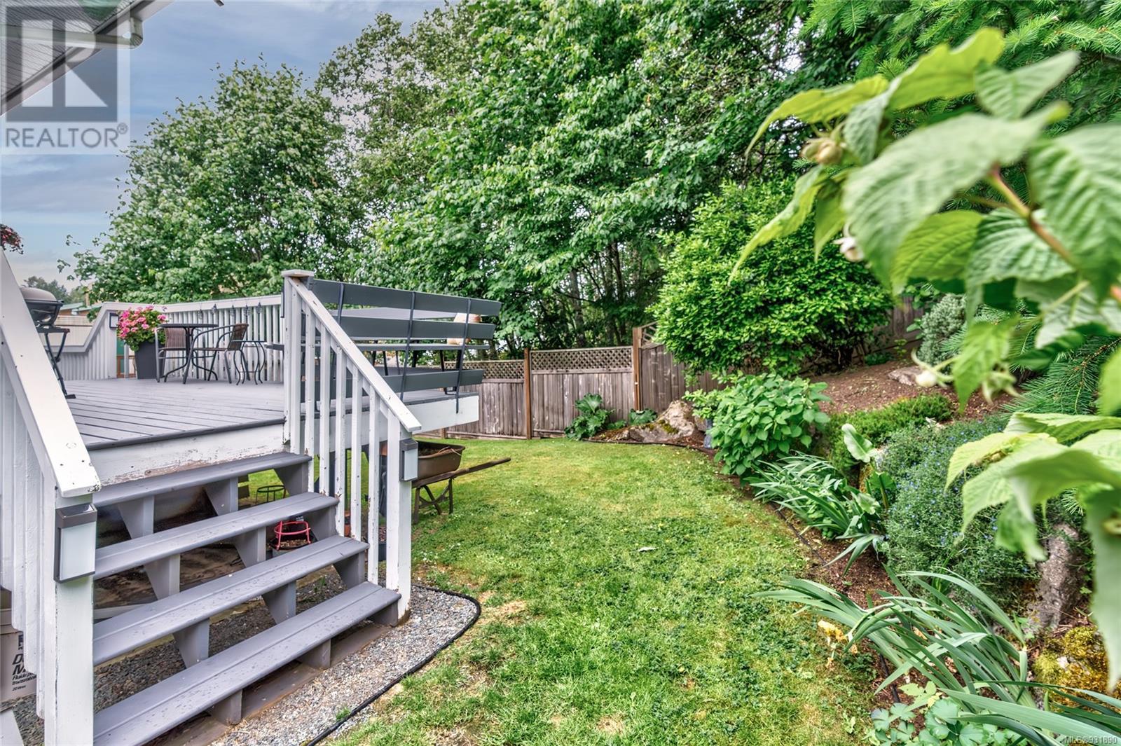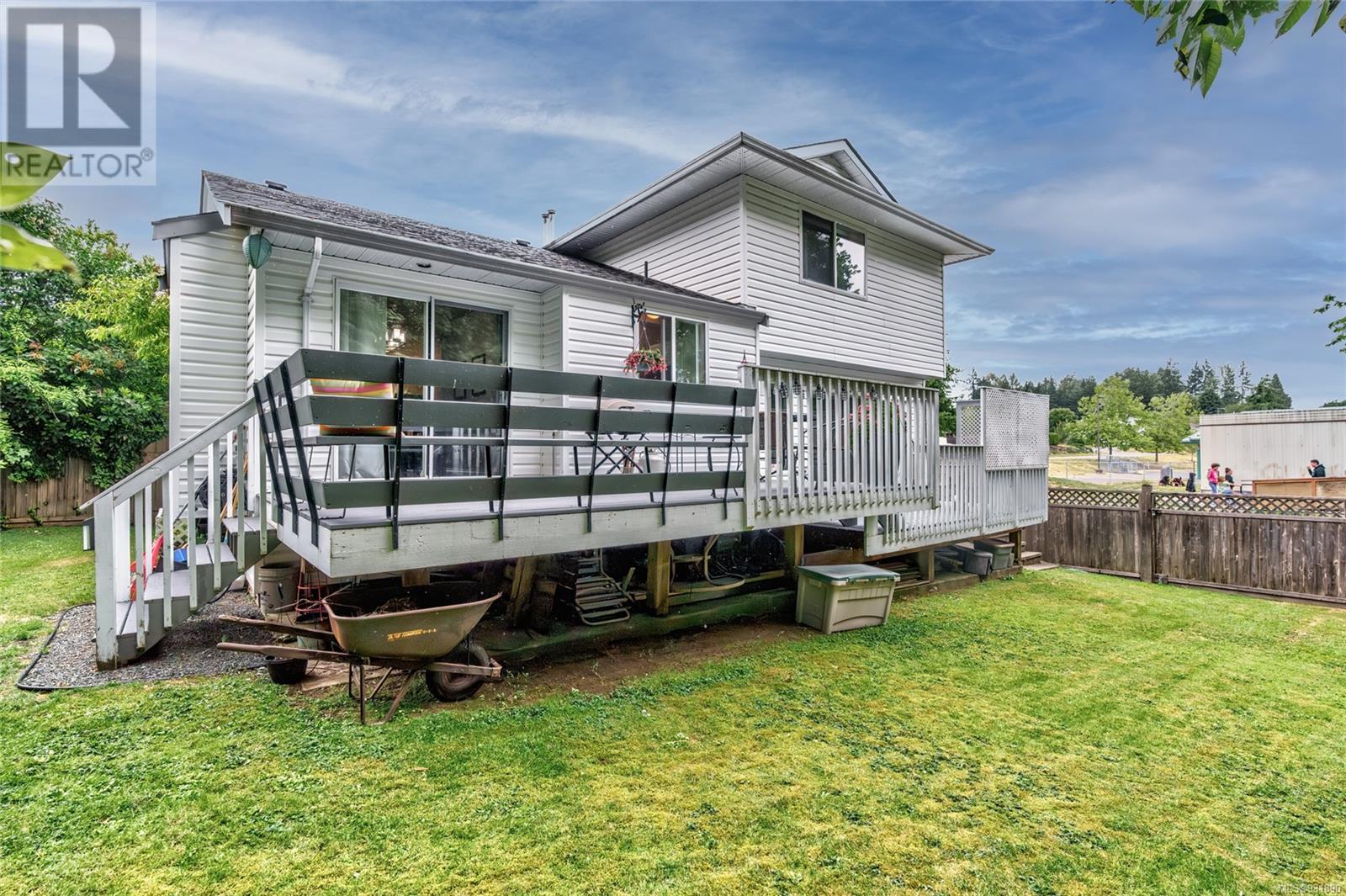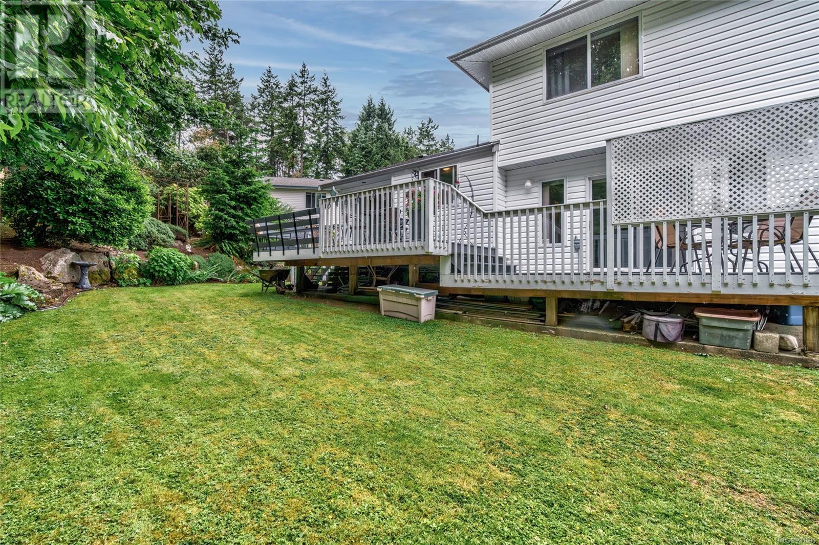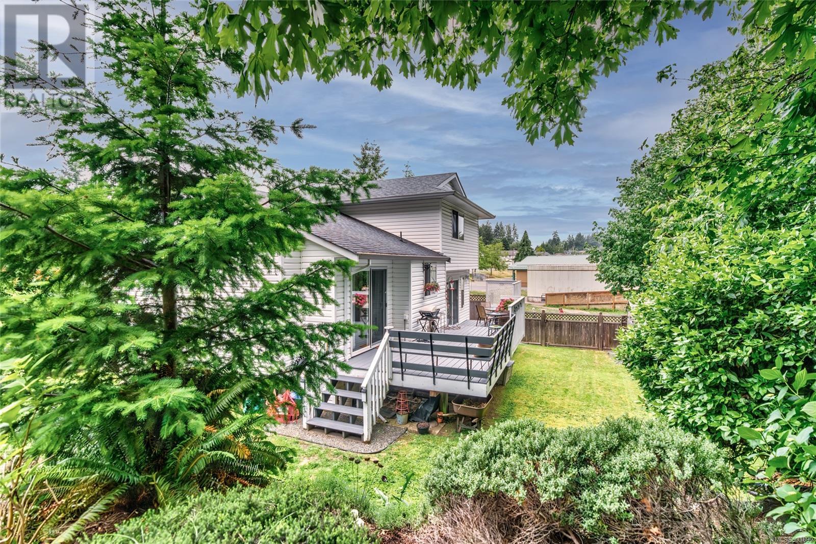 Welcome to this terrific family home with 4 bedrooms and 3 bathrooms in the very popular area of Coal Tyee Subdivision. This split level style home is central to all amenities and backing on to green space. The back yard is fully fenced and has a park like setting. There is a big, full length sundeck accessed from both the dining room and family room for easy outdoor enjoyment. Upstairs are 3 bedrooms and 2 full bathrooms, including a 4 piece en-suite and walk-in closet. Great kitchen with LG Stainless Steel appliances and lots of cabinets and counter space. The adjacent dining room area perfect for family get togethers. The lower level features a cozy gas fireplace and is ideal for a play area. There is a 4th bedroom, powder room and laundry room with access to the double garage also on this lower level. An ideal home and location close to park trails, play grounds, shopping, school, Bowen Park pool and recreation. All measurements are approx. pls. verify if important. (id:22211)