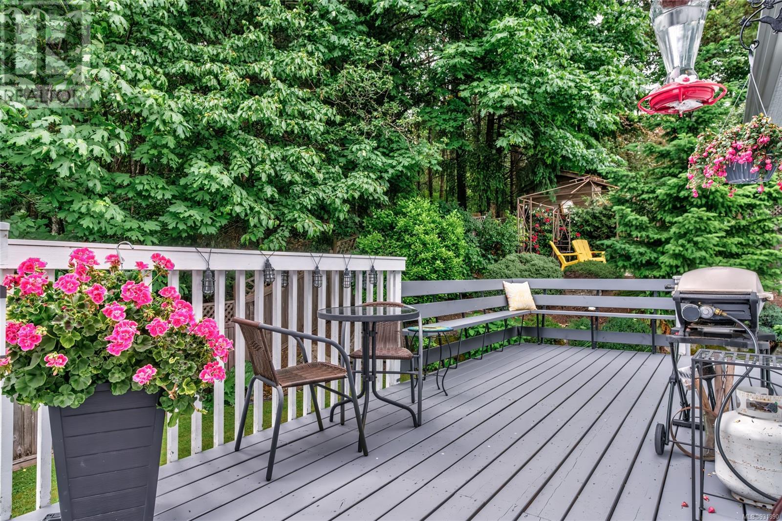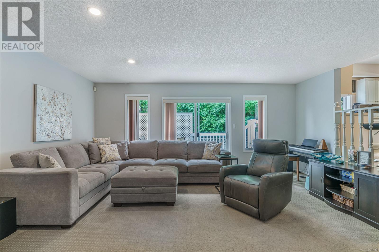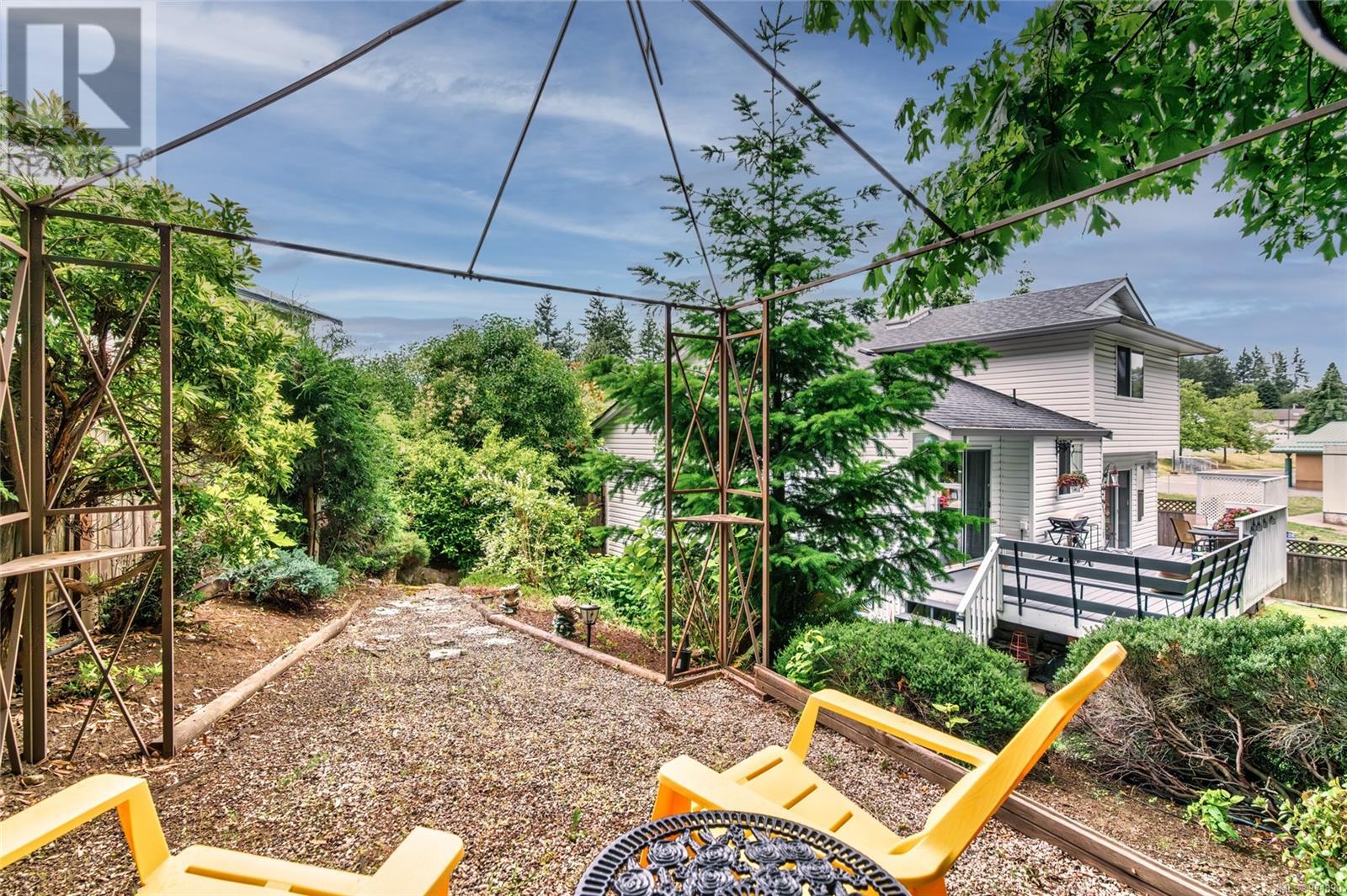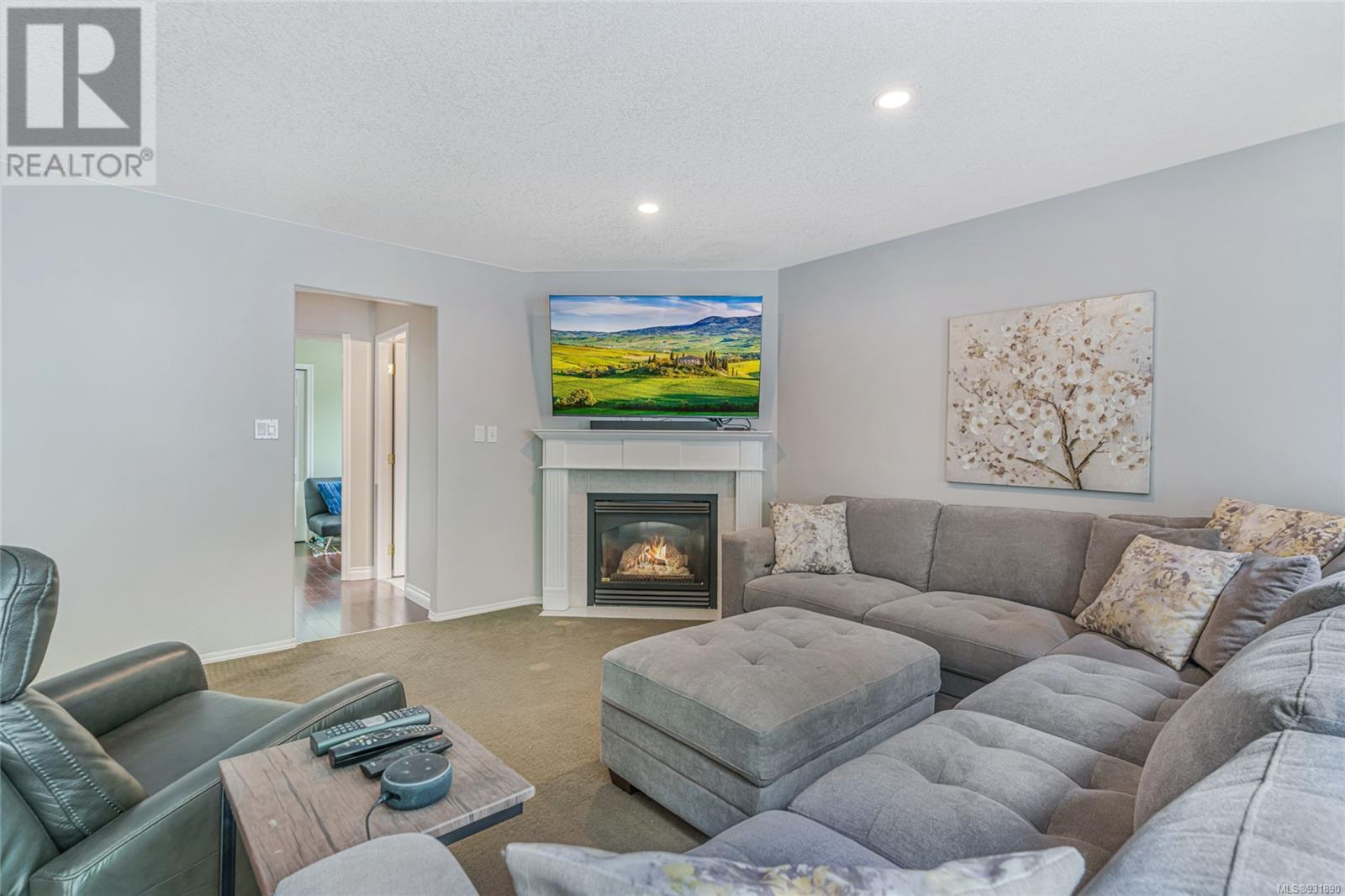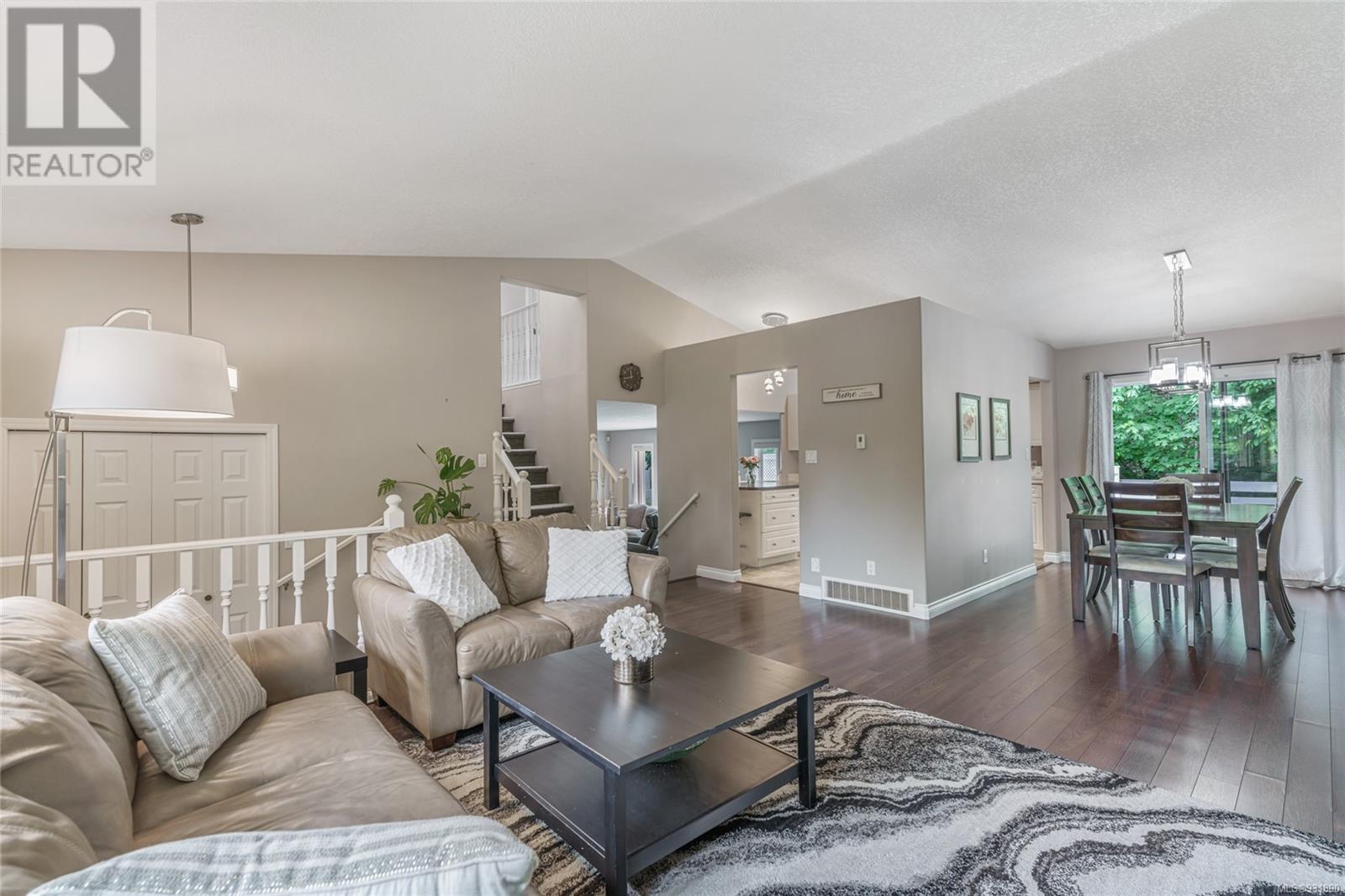 Welcome to this terrific family home with 4 bedrooms and 3 bathrooms in the very popular area of Coal Tyee Subdivision. This split level style home is central to all amenities and backing on to green space. The back yard is fully fenced and has a park like setting. There is a big, full length sundeck accessed from both the dining room and family room for easy outdoor enjoyment. Upstairs are 3 bedrooms and 2 full bathrooms, including a 4 piece en-suite and walk-in closet. Great kitchen with LG Stainless Steel appliances and lots of cabinets and counter space. The adjacent dining room area perfect for family get togethers. The lower level features a cozy gas fireplace and is ideal for a play area. There is a 4th bedroom, powder room and laundry room with access to the double garage also on this lower level. An ideal home and location close to park trails, play grounds, shopping, school, Bowen Park pool and recreation. All measurements are approx. pls. verify if important. (id:22211)