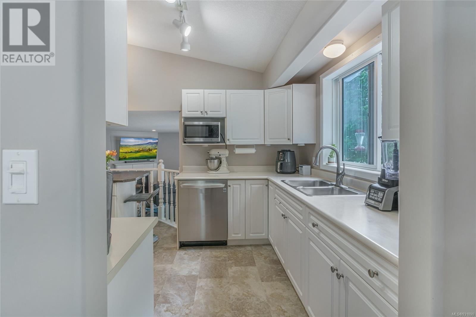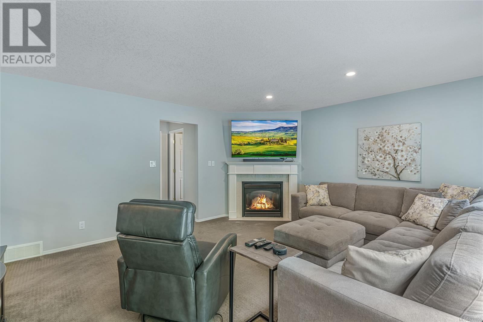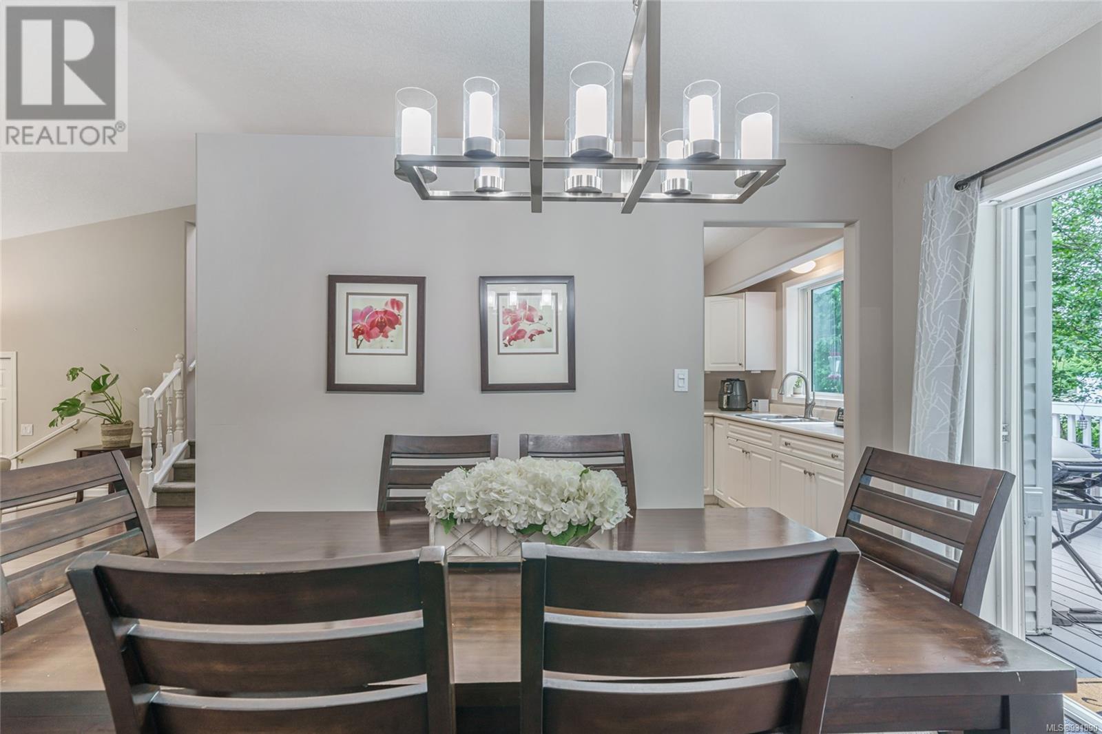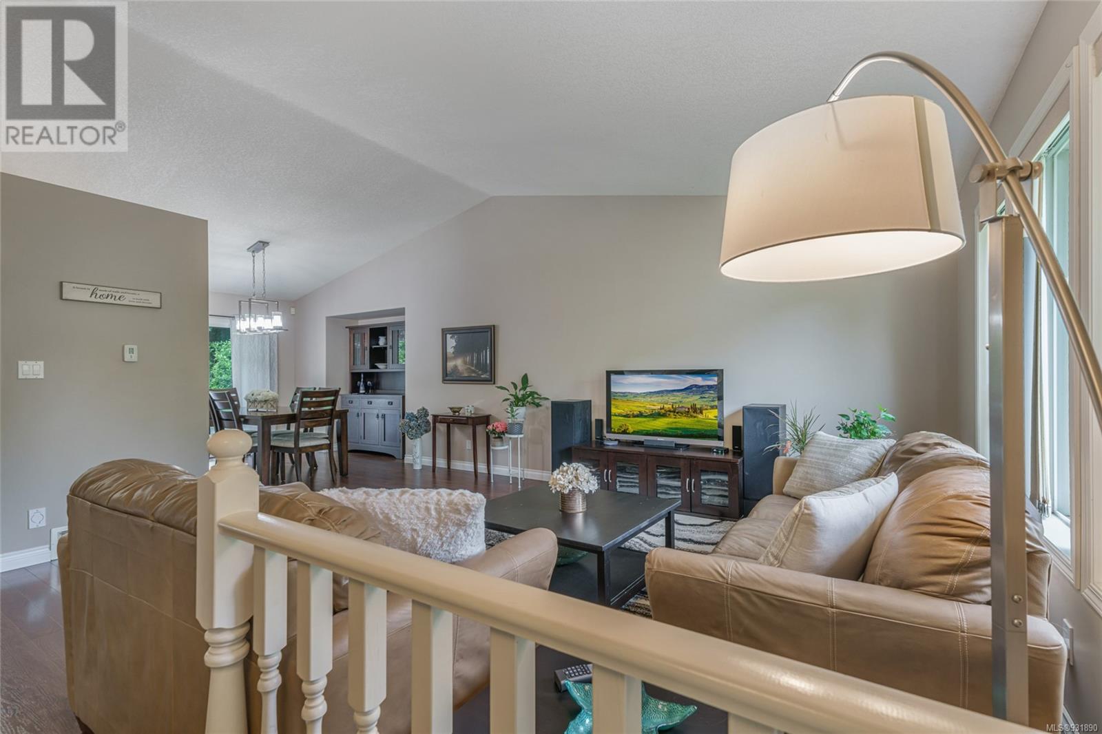 Welcome to this terrific family home with 4 bedrooms and 3 bathrooms in the very popular area of Coal Tyee Subdivision. This split level style home is central to all amenities and backing on to green space. The back yard is fully fenced and has a park like setting. There is a big, full length sundeck accessed from both the dining room and family room for easy outdoor enjoyment. Upstairs are 3 bedrooms and 2 full bathrooms, including a 4 piece en-suite and walk-in closet. Great kitchen with LG Stainless Steel appliances and lots of cabinets and counter space. The adjacent dining room area perfect for family get togethers. The lower level features a cozy gas fireplace and is ideal for a play area. There is a 4th bedroom, powder room and laundry room with access to the double garage also on this lower level. An ideal home and location close to park trails, play grounds, shopping, school, Bowen Park pool and recreation. All measurements are approx. pls. verify if important. (id:22211)