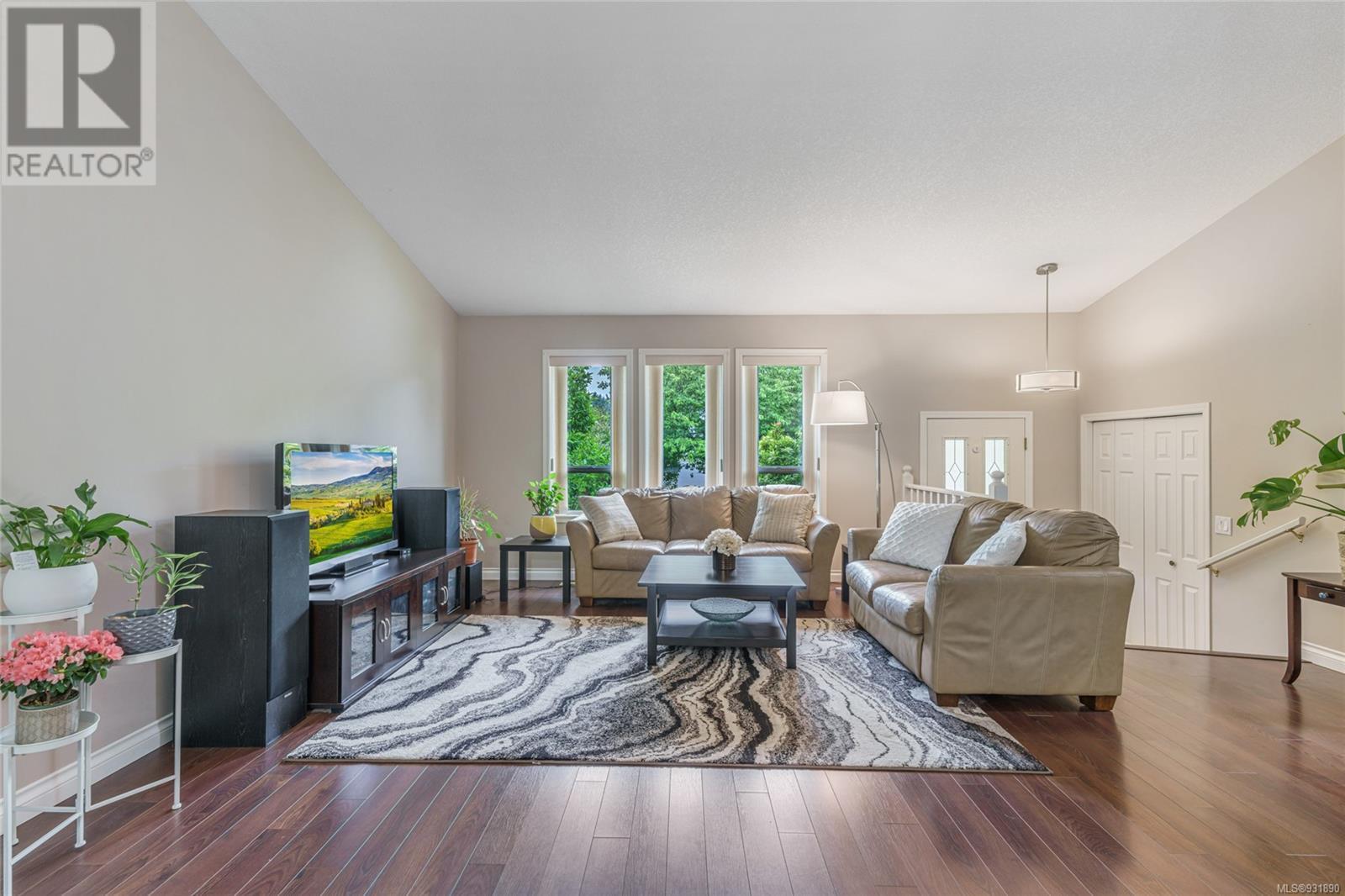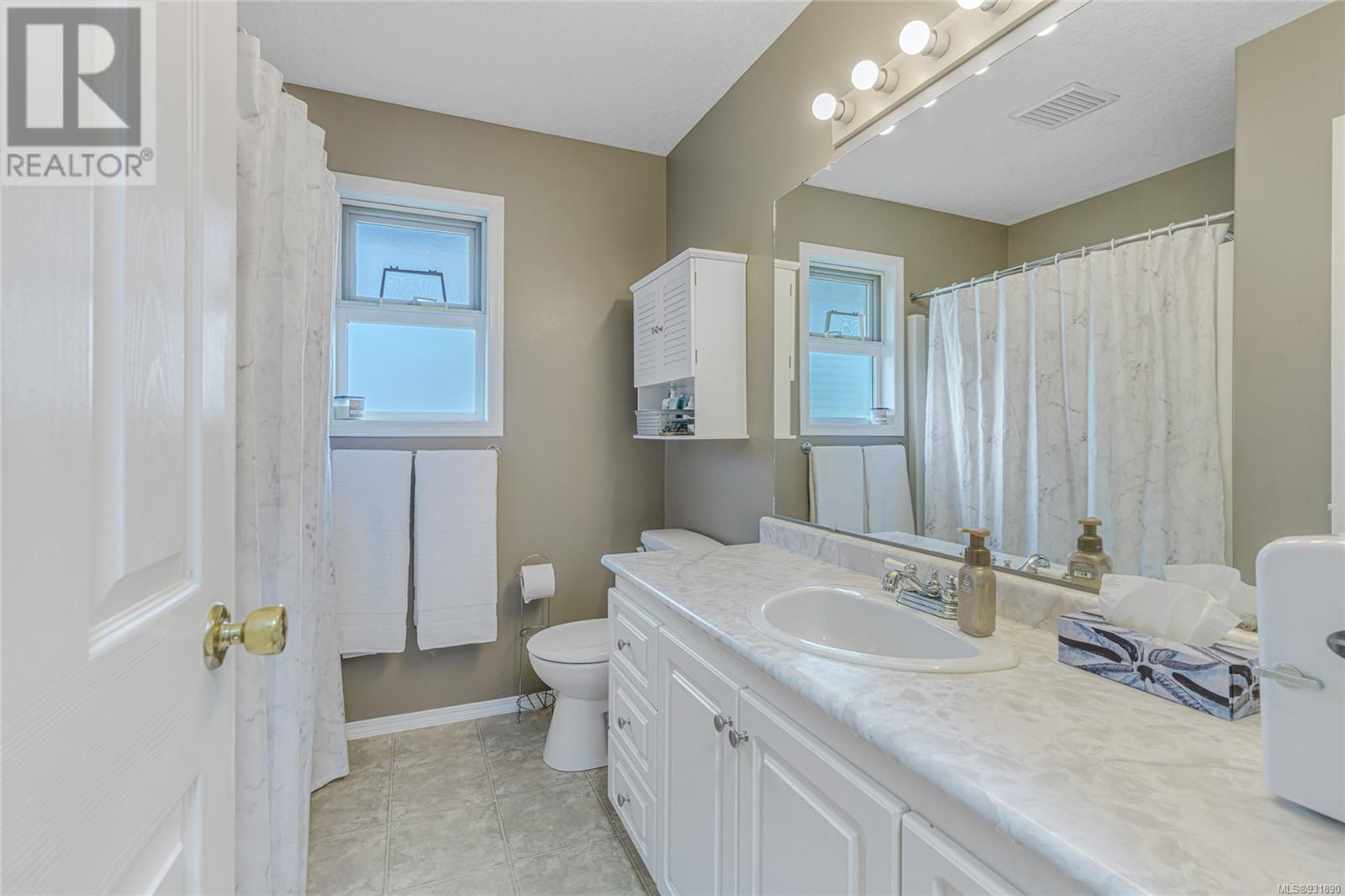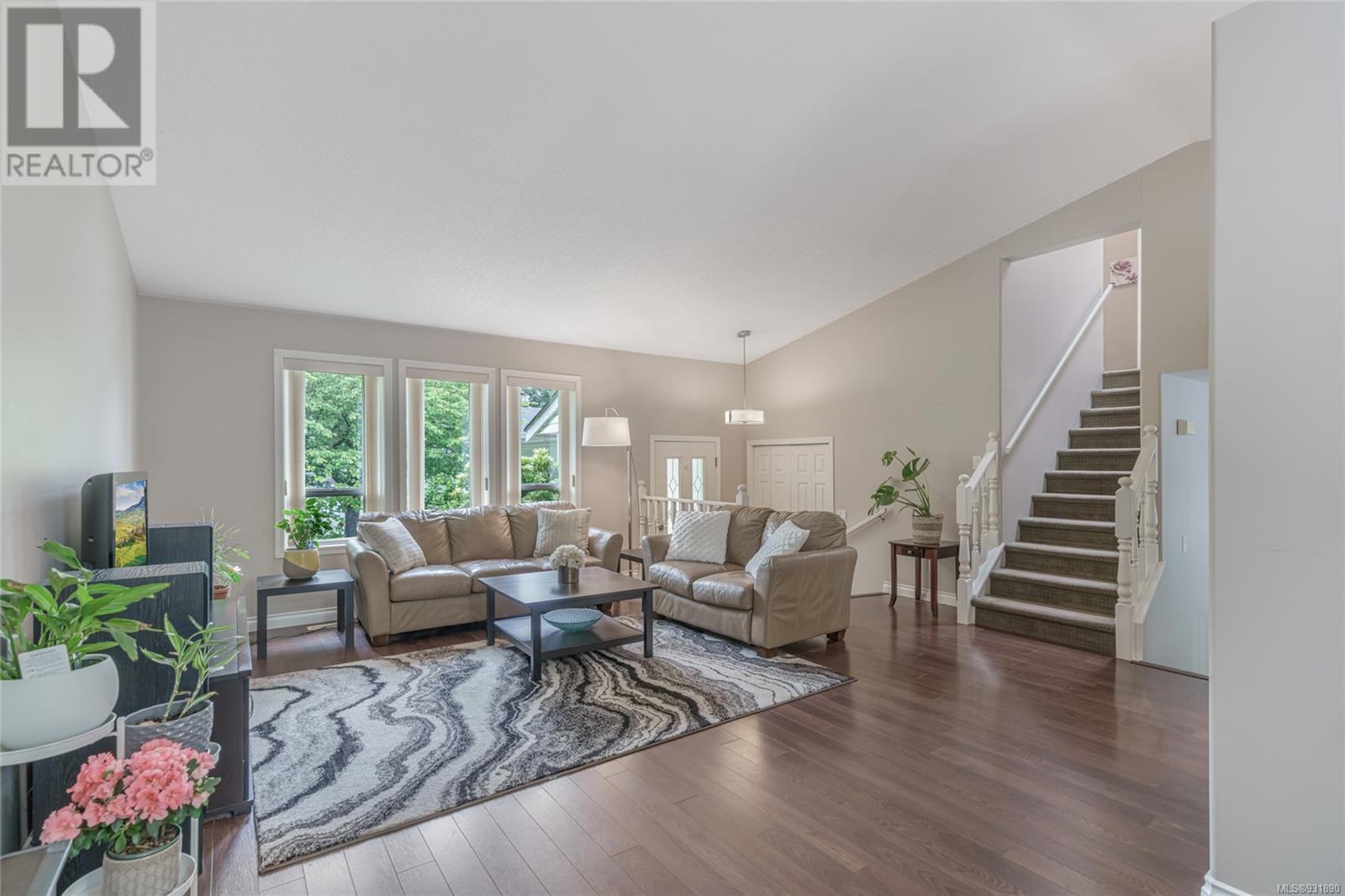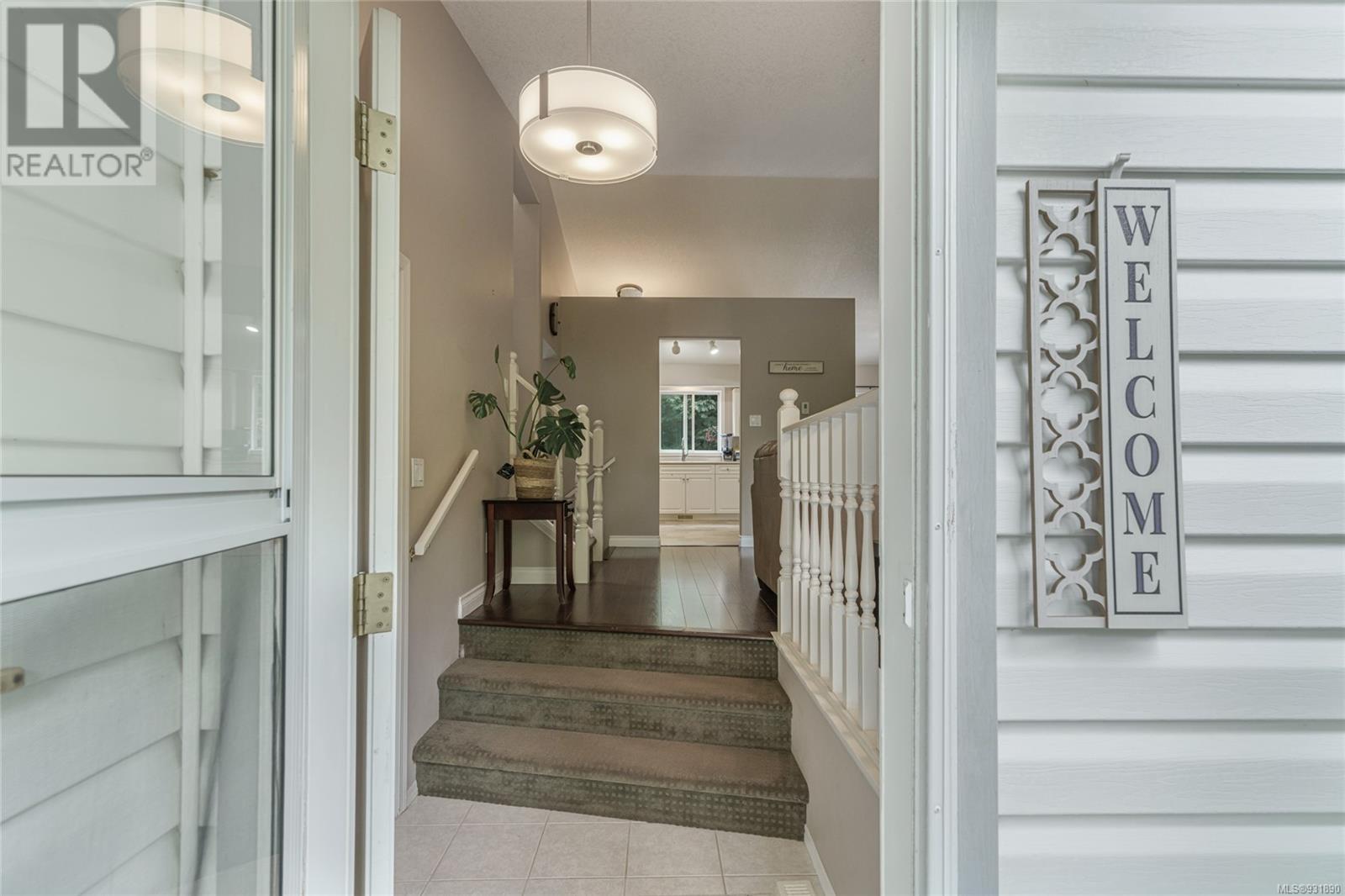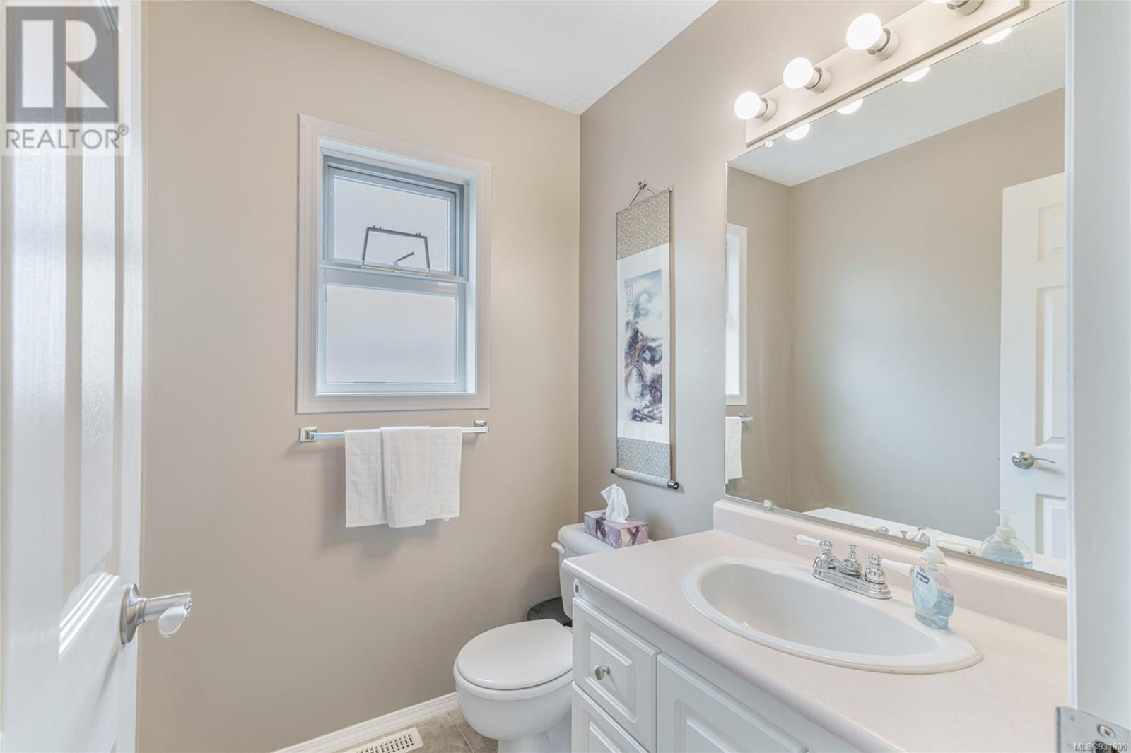 Welcome to this terrific family home with 4 bedrooms and 3 bathrooms in the very popular area of Coal Tyee Subdivision. This split level style home is central to all amenities and backing on to green space. The back yard is fully fenced and has a park like setting. There is a big, full length sundeck accessed from both the dining room and family room for easy outdoor enjoyment. Upstairs are 3 bedrooms and 2 full bathrooms, including a 4 piece en-suite and walk-in closet. Great kitchen with LG Stainless Steel appliances and lots of cabinets and counter space. The adjacent dining room area perfect for family get togethers. The lower level features a cozy gas fireplace and is ideal for a play area. There is a 4th bedroom, powder room and laundry room with access to the double garage also on this lower level. An ideal home and location close to park trails, play grounds, shopping, school, Bowen Park pool and recreation. All measurements are approx. pls. verify if important. (id:22211)