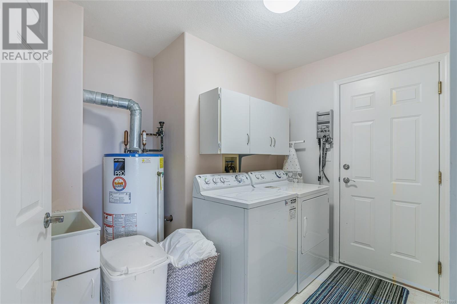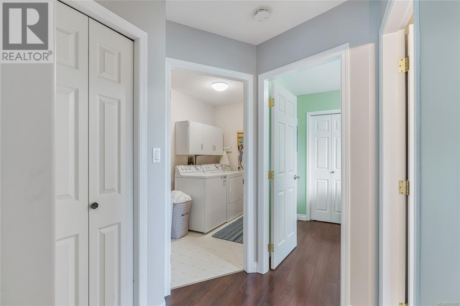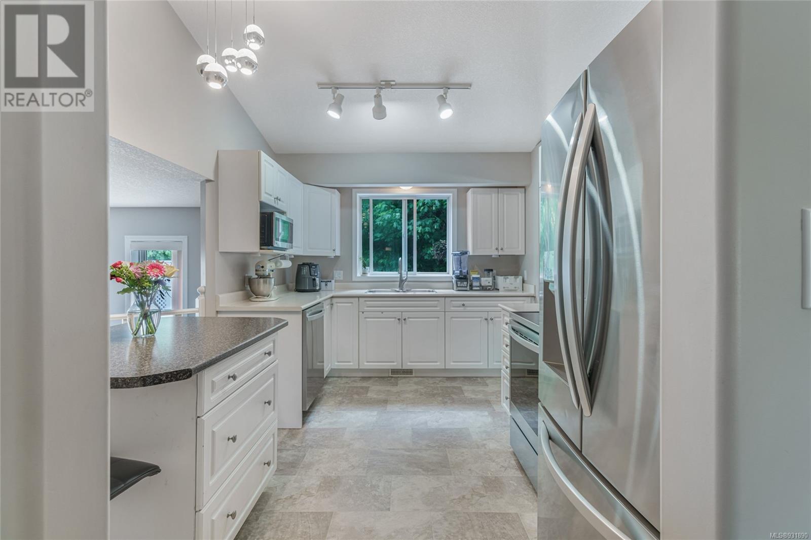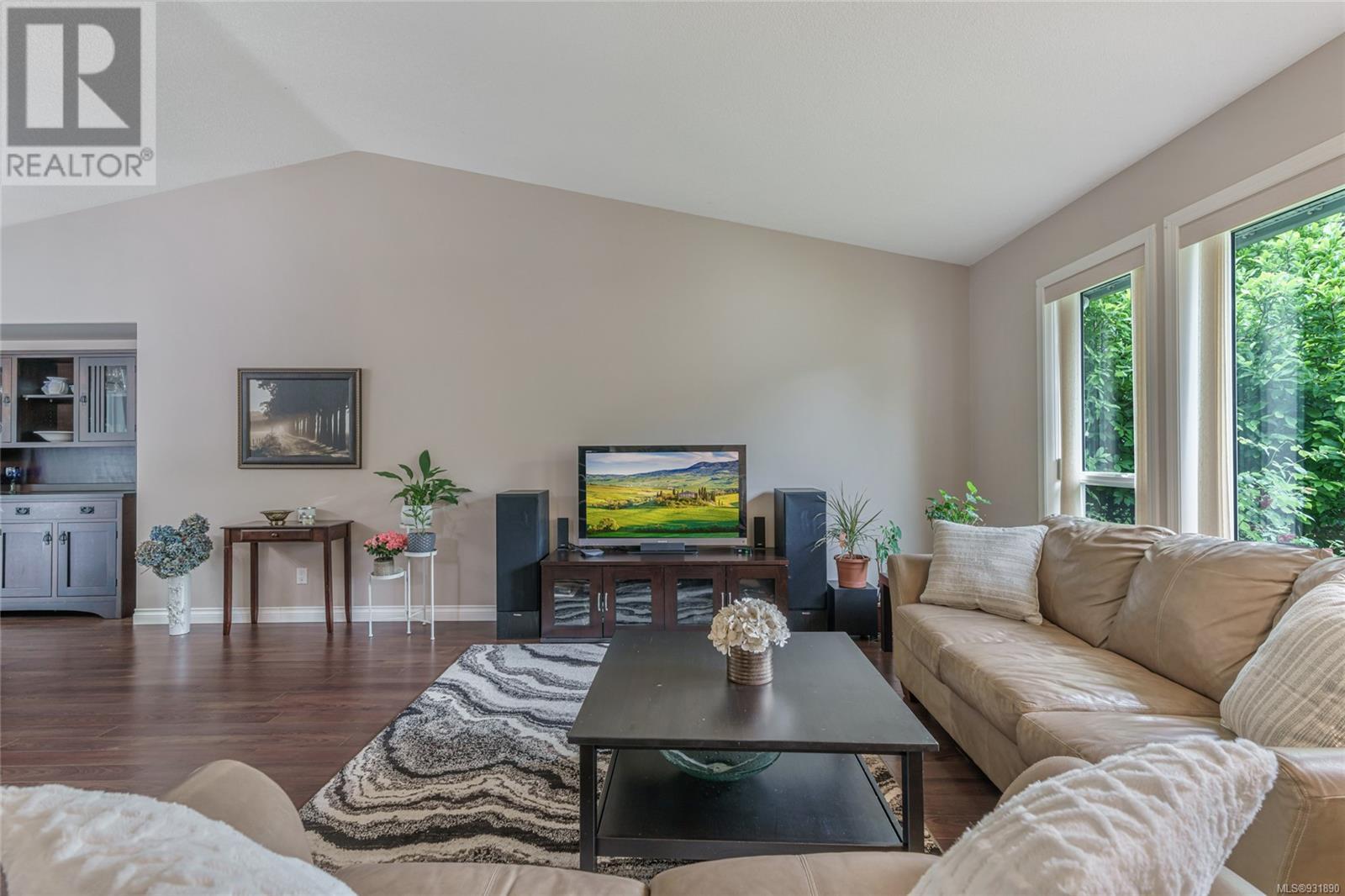 Welcome to this terrific family home with 4 bedrooms and 3 bathrooms in the very popular area of Coal Tyee Subdivision. This split level style home is central to all amenities and backing on to green space. The back yard is fully fenced and has a park like setting. There is a big, full length sundeck accessed from both the dining room and family room for easy outdoor enjoyment. Upstairs are 3 bedrooms and 2 full bathrooms, including a 4 piece en-suite and walk-in closet. Great kitchen with LG Stainless Steel appliances and lots of cabinets and counter space. The adjacent dining room area perfect for family get togethers. The lower level features a cozy gas fireplace and is ideal for a play area. There is a 4th bedroom, powder room and laundry room with access to the double garage also on this lower level. An ideal home and location close to park trails, play grounds, shopping, school, Bowen Park pool and recreation. All measurements are approx. pls. verify if important. (id:22211)