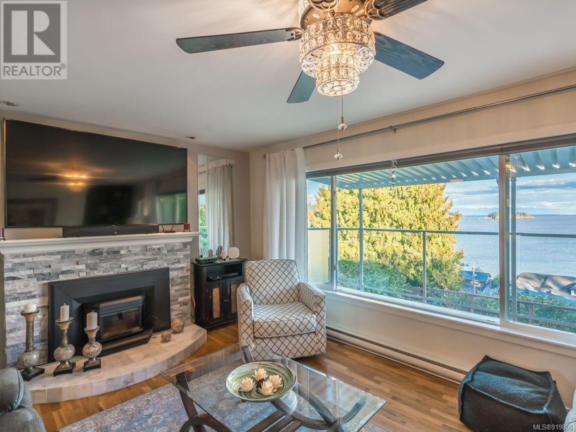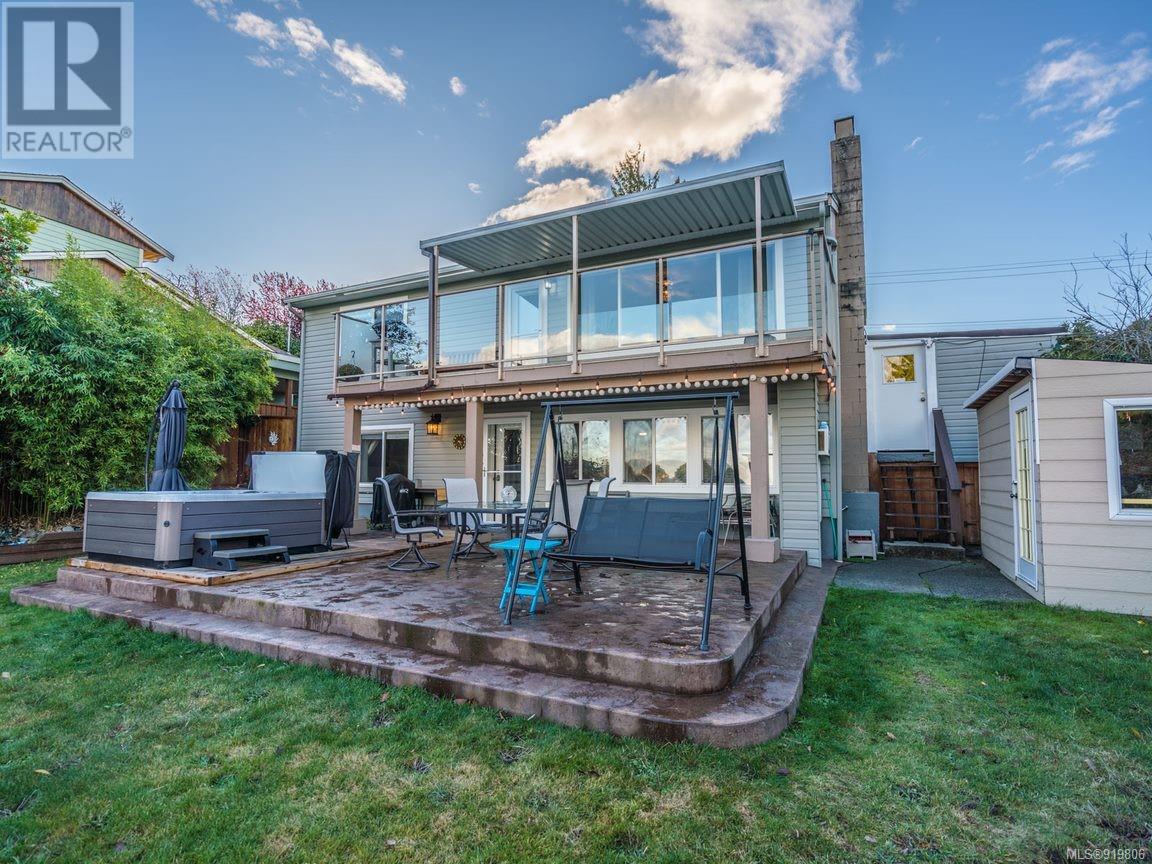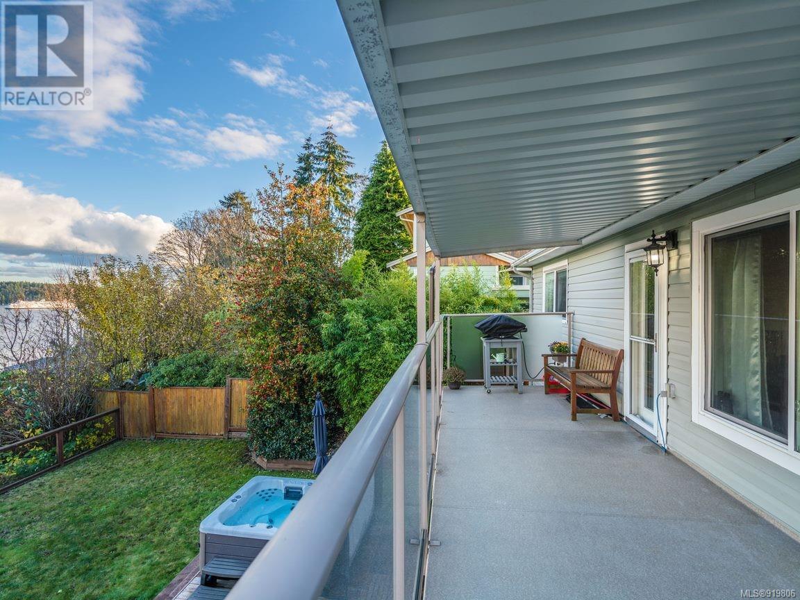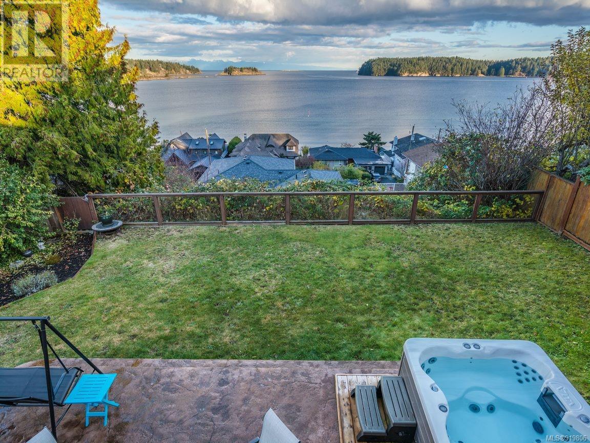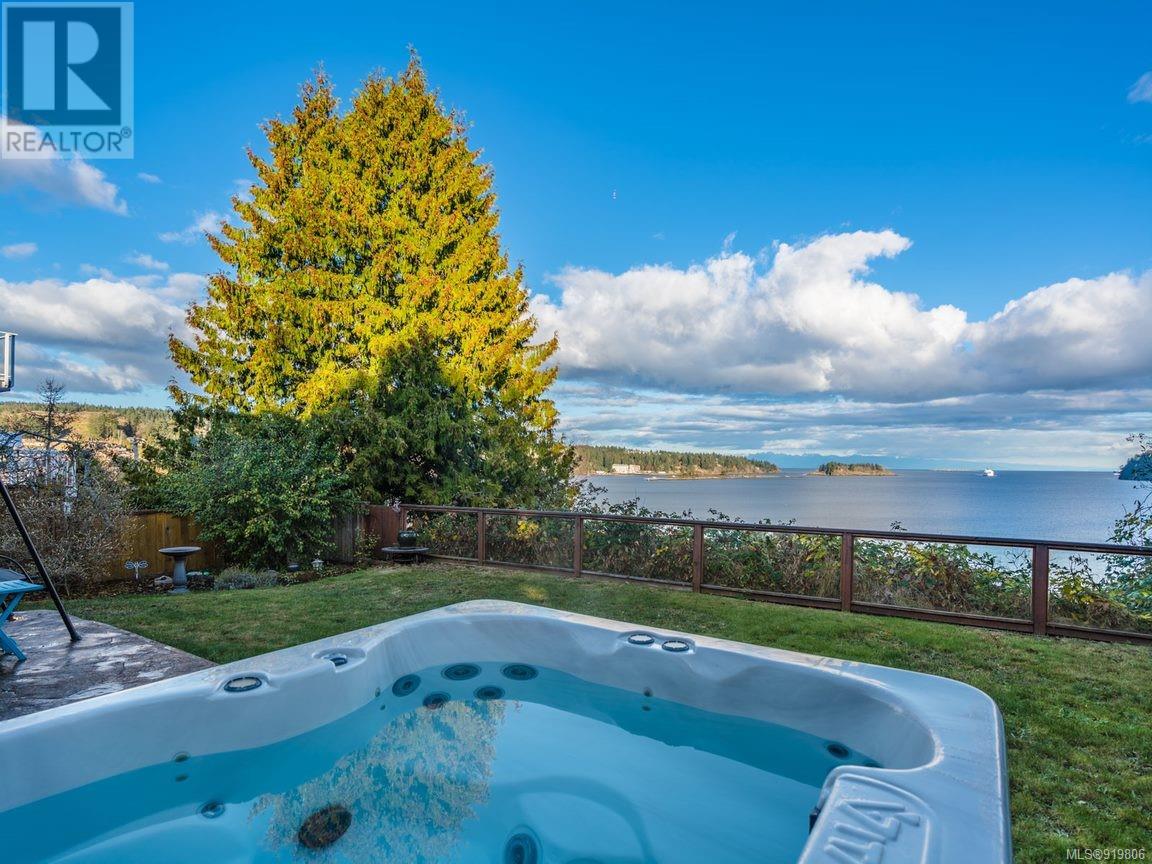 Quite possibly the best Ocean Views in Nanaimo! Here is a rare opportunity to own this beautifully remodeled level entry/walkout basement home perched high on the bluffs overlooking Departure Bay. Featuring 2 bedrooms on the main floor & an additional bedroom, den and 11x18 family room on the lower level with direct access to the large, flat rear yard. The current owner has painstakingly remodeled nearly the entire home including a gorgeous maple kitchen, refinished oak hardwood flooring, thermal windows, newer exterior siding, large deck with glass railings, new roof, new lighting & plumbing fixtures modern wood stove, rear stamped concrete patio with hot tub, rear fence with glass inserts and so much more. Enjoy awe inspiring ocean & mountain views from almost all rooms in the home including the master bedroom, living room, family room, kitchen & dining area. The Airbnb suite has been rented part time and produced $30,000 over the past 12 months Departure Bay Ocean front is mere minutes away along with schools, shopping & transportation routes. All measurements approximate; verify if important. (id:22211)