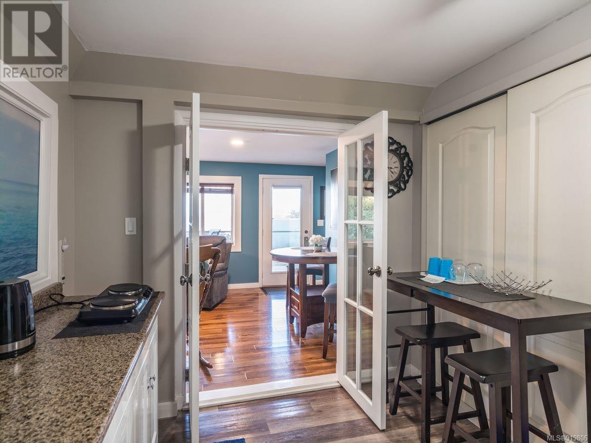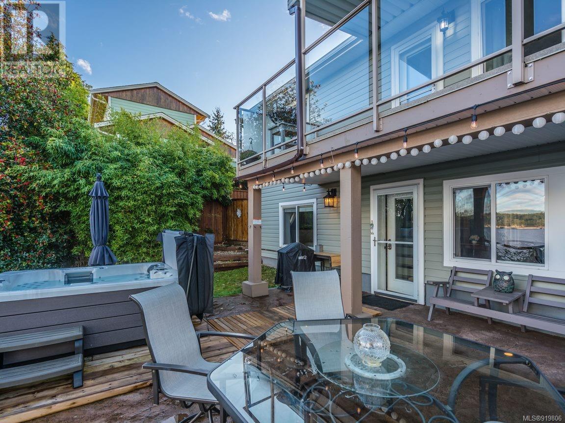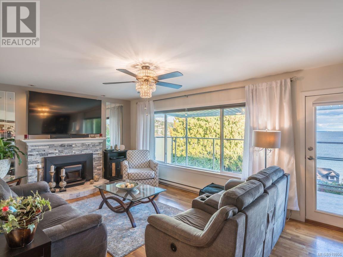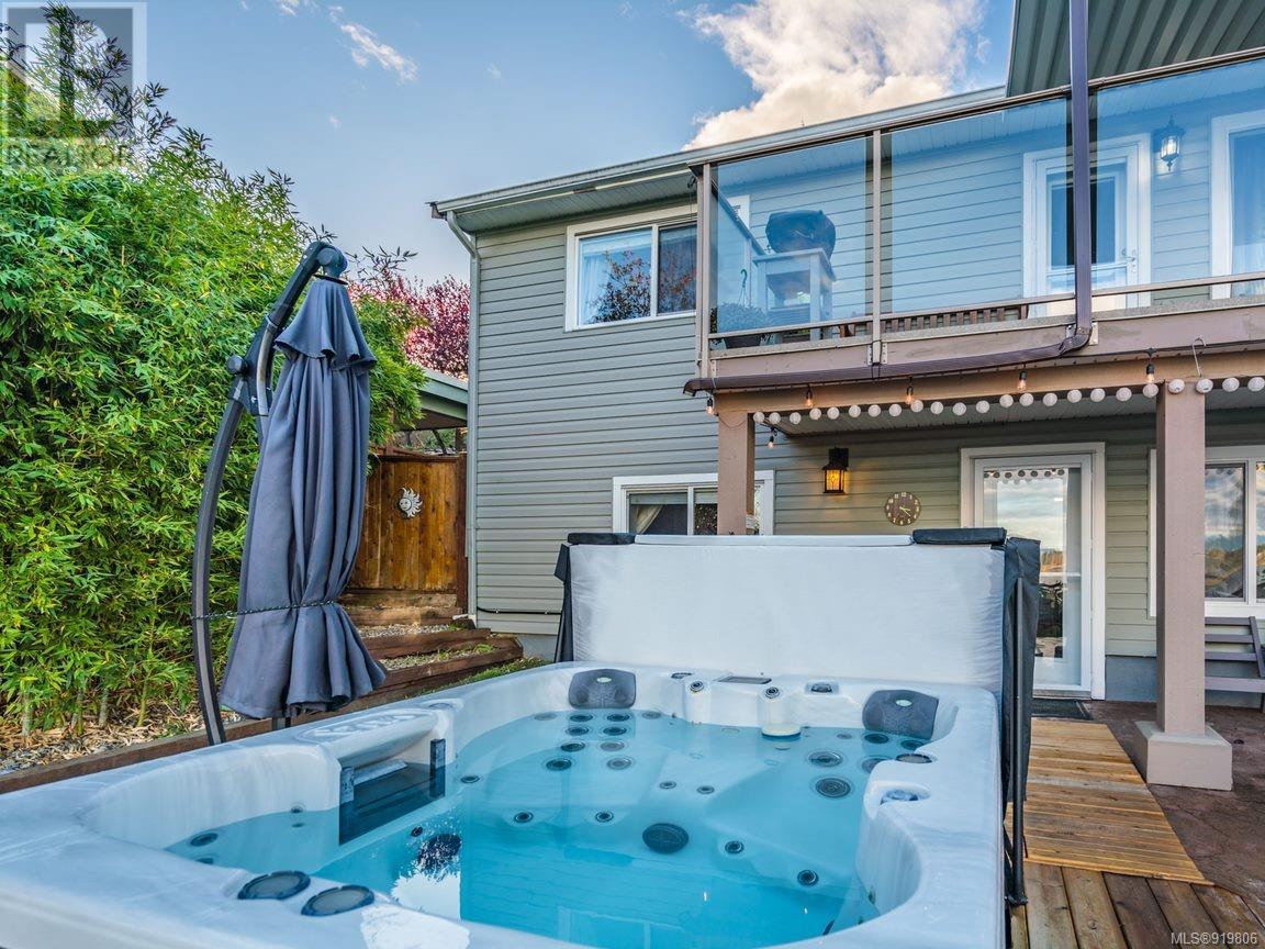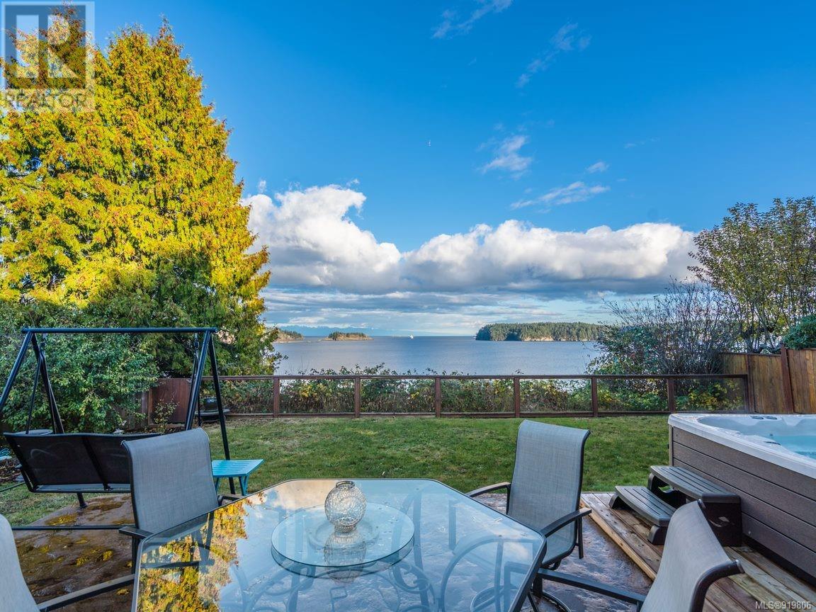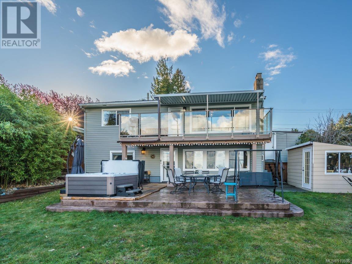 Quite possibly the best Ocean Views in Nanaimo! Here is a rare opportunity to own this beautifully remodeled level entry/walkout basement home perched high on the bluffs overlooking Departure Bay. Featuring 2 bedrooms on the main floor & an additional bedroom, den and 11x18 family room on the lower level with direct access to the large, flat rear yard. The current owner has painstakingly remodeled nearly the entire home including a gorgeous maple kitchen, refinished oak hardwood flooring, thermal windows, newer exterior siding, large deck with glass railings, new roof, new lighting & plumbing fixtures modern wood stove, rear stamped concrete patio with hot tub, rear fence with glass inserts and so much more. Enjoy awe inspiring ocean & mountain views from almost all rooms in the home including the master bedroom, living room, family room, kitchen & dining area. The Airbnb suite has been rented part time and produced $30,000 over the past 12 months Departure Bay Ocean front is mere minutes away along with schools, shopping & transportation routes. All measurements approximate; verify if important. (id:22211)