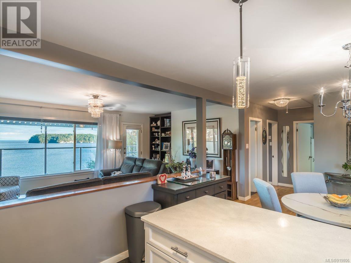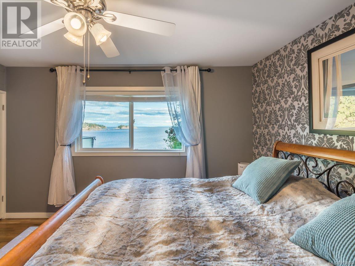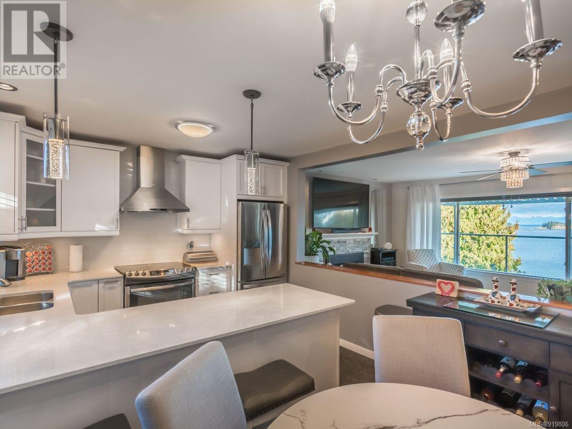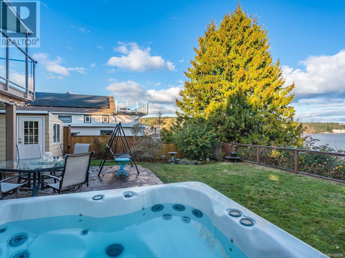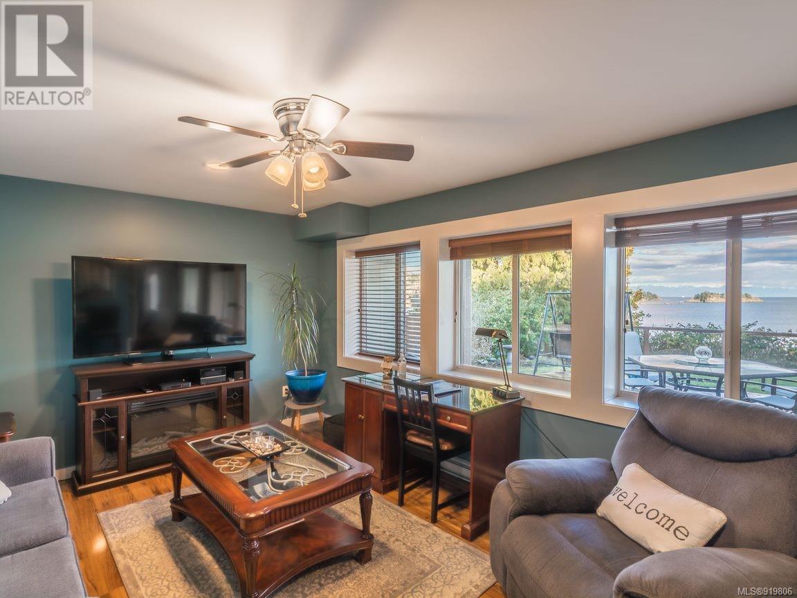 Quite possibly the best Ocean Views in Nanaimo! Here is a rare opportunity to own this beautifully remodeled level entry/walkout basement home perched high on the bluffs overlooking Departure Bay. Featuring 2 bedrooms on the main floor & an additional bedroom, den and 11x18 family room on the lower level with direct access to the large, flat rear yard. The current owner has painstakingly remodeled nearly the entire home including a gorgeous maple kitchen, refinished oak hardwood flooring, thermal windows, newer exterior siding, large deck with glass railings, new roof, new lighting & plumbing fixtures modern wood stove, rear stamped concrete patio with hot tub, rear fence with glass inserts and so much more. Enjoy awe inspiring ocean & mountain views from almost all rooms in the home including the master bedroom, living room, family room, kitchen & dining area. The Airbnb suite has been rented part time and produced $30,000 over the past 12 months Departure Bay Ocean front is mere minutes away along with schools, shopping & transportation routes. All measurements approximate; verify if important. (id:22211)