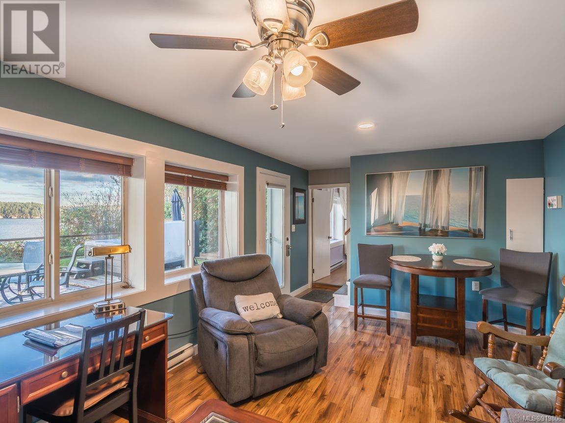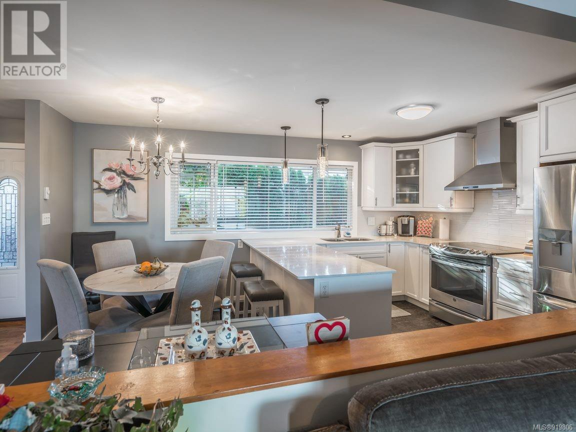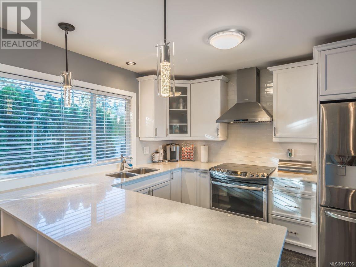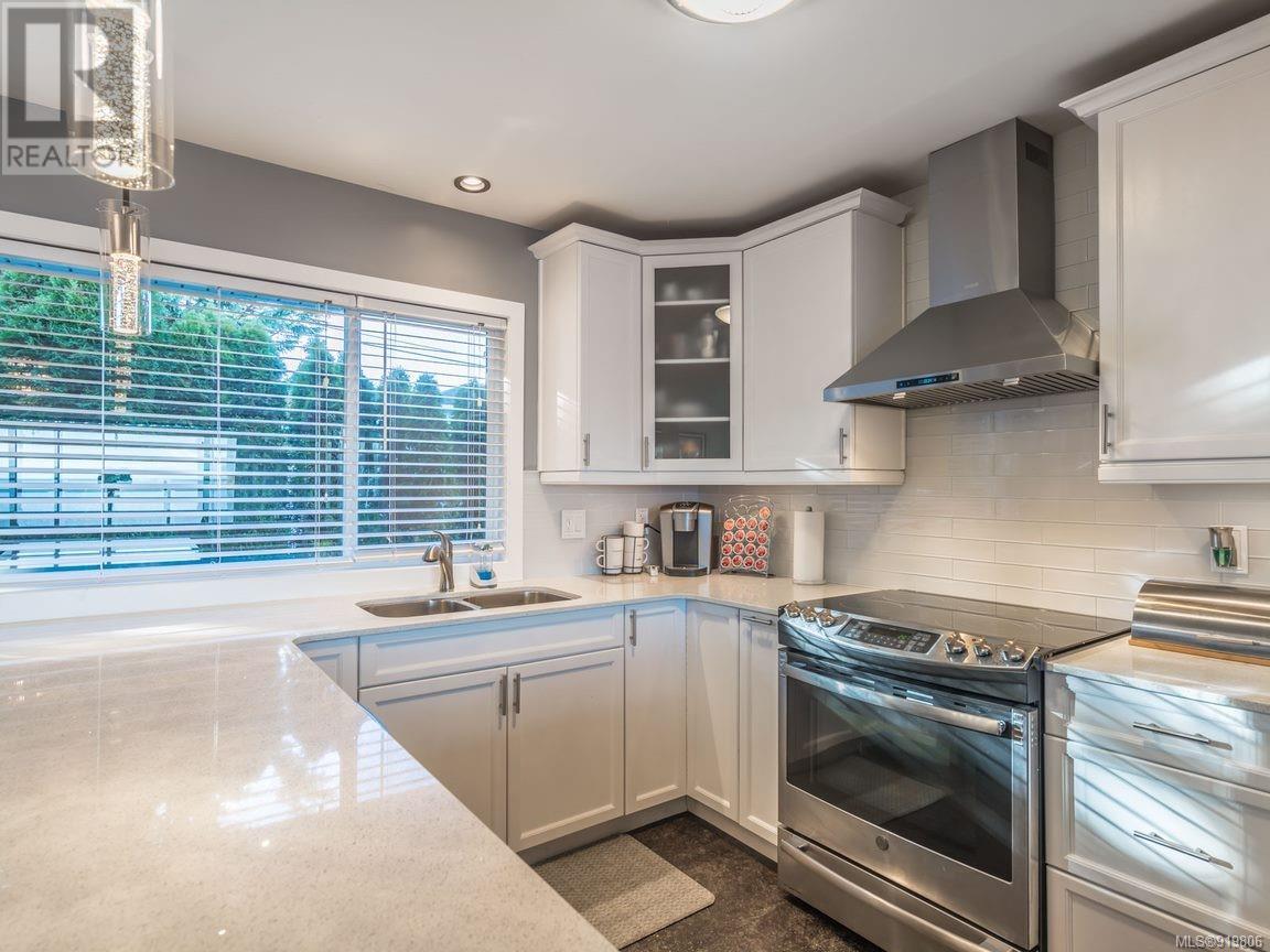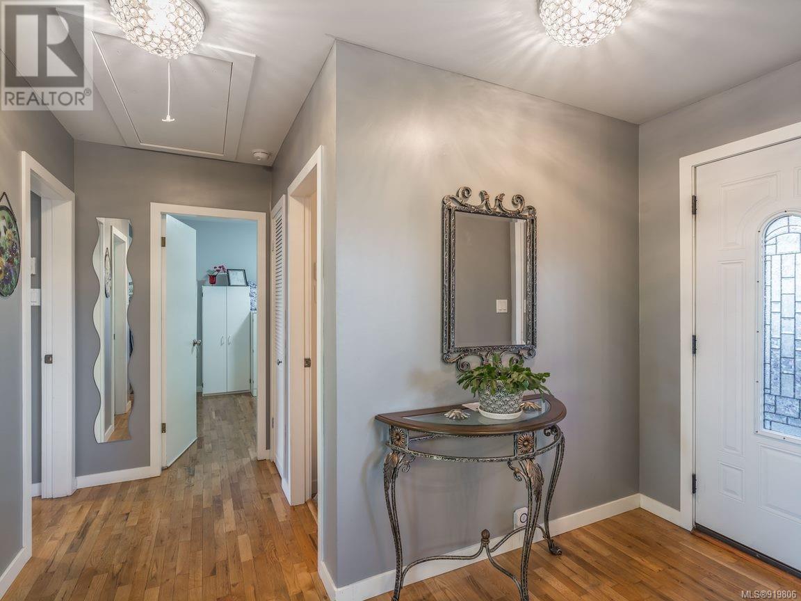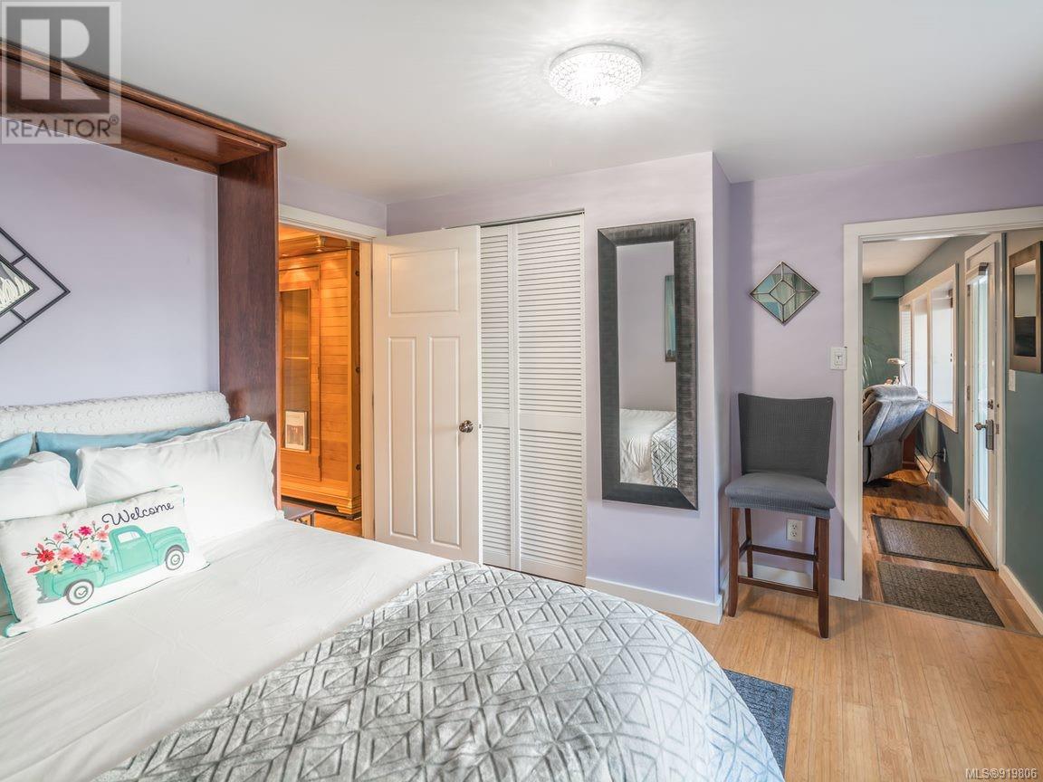 Quite possibly the best Ocean Views in Nanaimo! Here is a rare opportunity to own this beautifully remodeled level entry/walkout basement home perched high on the bluffs overlooking Departure Bay. Featuring 2 bedrooms on the main floor & an additional bedroom, den and 11x18 family room on the lower level with direct access to the large, flat rear yard. The current owner has painstakingly remodeled nearly the entire home including a gorgeous maple kitchen, refinished oak hardwood flooring, thermal windows, newer exterior siding, large deck with glass railings, new roof, new lighting & plumbing fixtures modern wood stove, rear stamped concrete patio with hot tub, rear fence with glass inserts and so much more. Enjoy awe inspiring ocean & mountain views from almost all rooms in the home including the master bedroom, living room, family room, kitchen & dining area. The Airbnb suite has been rented part time and produced $30,000 over the past 12 months Departure Bay Ocean front is mere minutes away along with schools, shopping & transportation routes. All measurements approximate; verify if important. (id:22211)