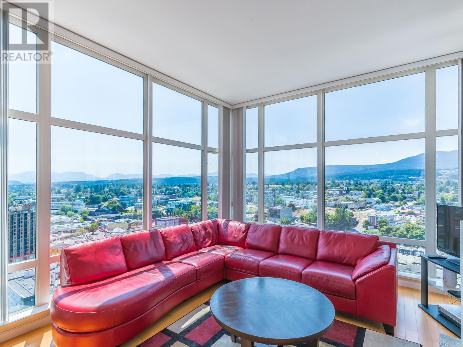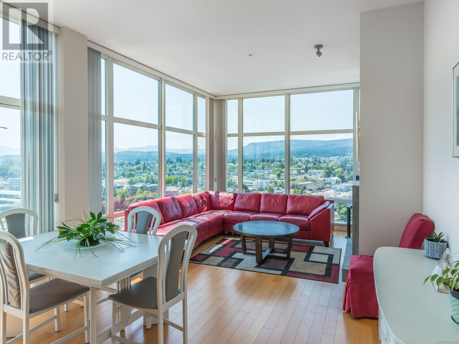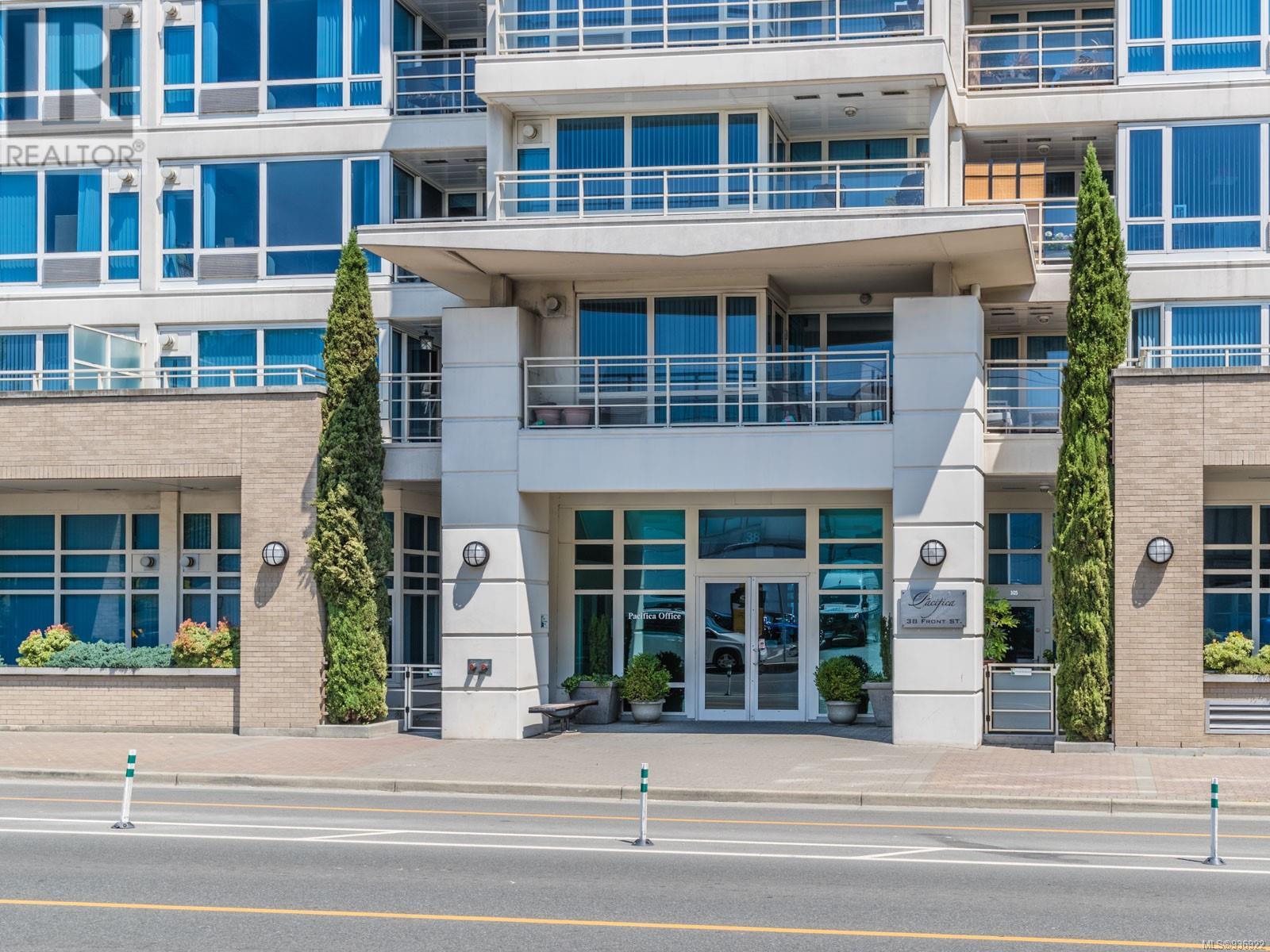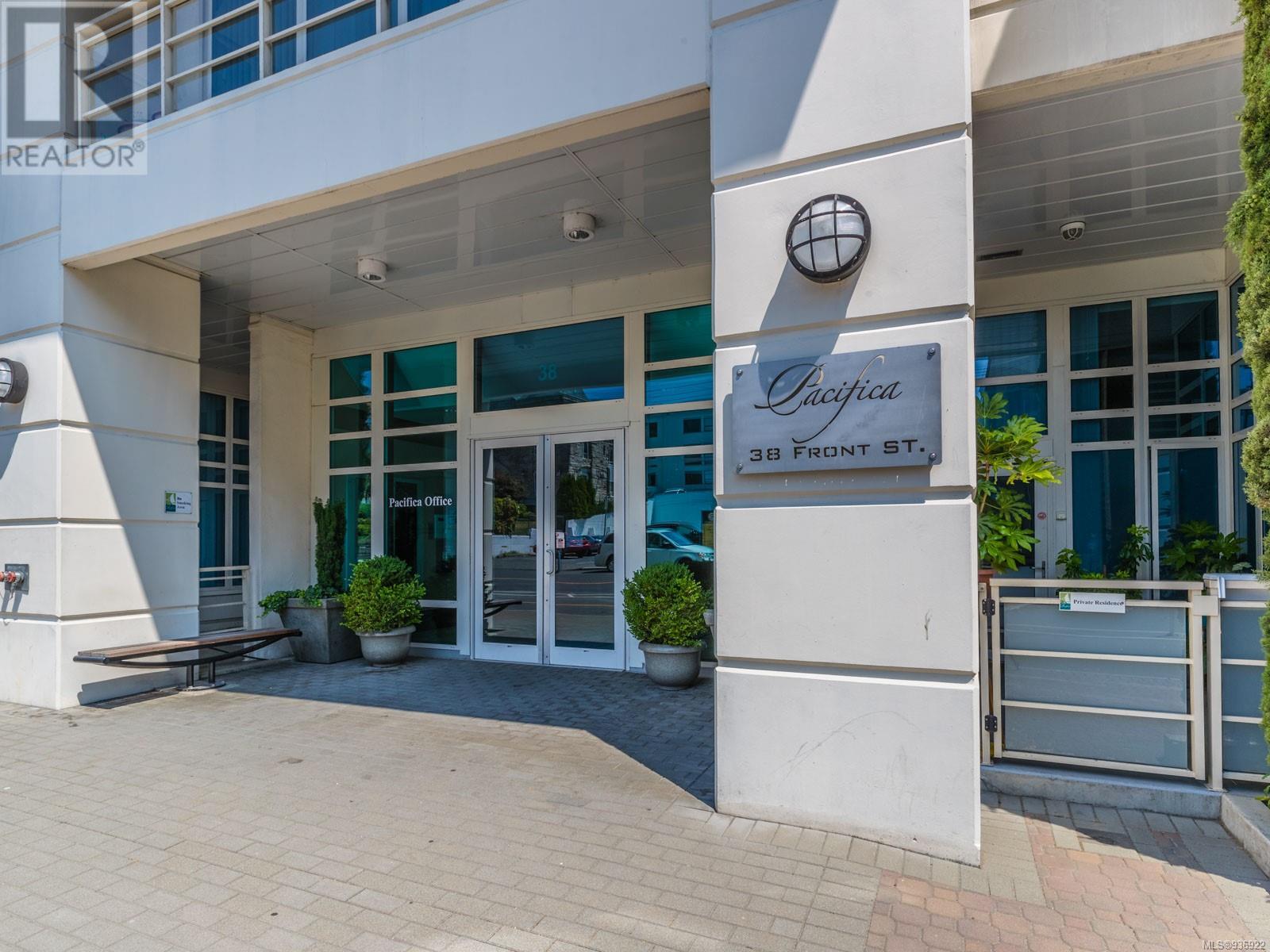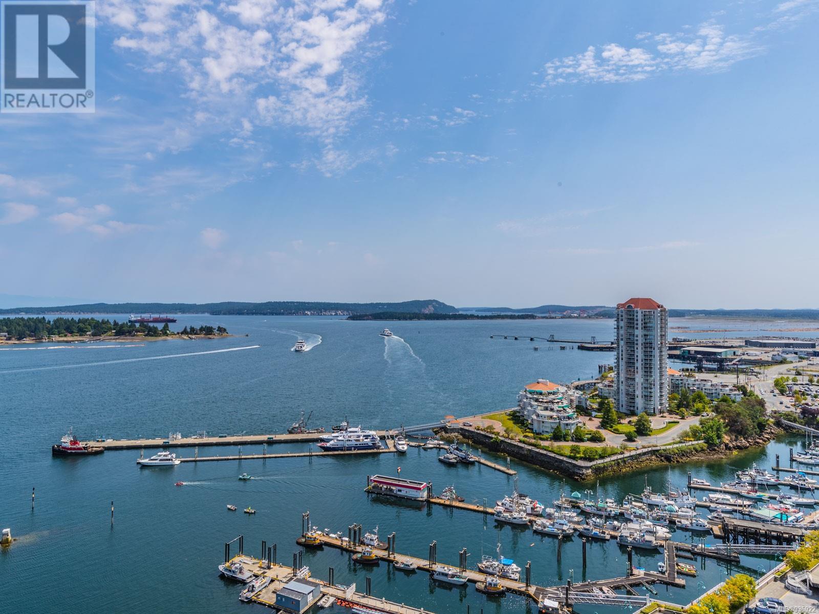Top Floor Penthouse unit with soaring 10 foot ceilings! Welcome home to the Pacifica - Nanaimo's premiere Waterfront condominium. This unit features spectacular City, Mountain & Ocean views overlooking the inner harbour towards Gabriola Island. The open-concept living space & both bedrooms boast floor to ceiling windows. The kitchen features a Natural Gas range, granite countertops, high-end s/s appliances & honey teak inspired cabinetry. The large primary bedroom includes a Walk in closet & 4 piece ensuite w/ granite counters, double sink & a tiled shower. With 90 degree floor to ceiling windows on two sides, you have the best sights that the Harbour City has to offer. This unit features a large deck directly off the living room & facing the ocean & city. Ideally situated in Nanaimo's downtown core with entertainment, restaurants, shopping & all amenities just steps away including the waterfront walk way. Msmts approx., pls verify if important. (id:22211)