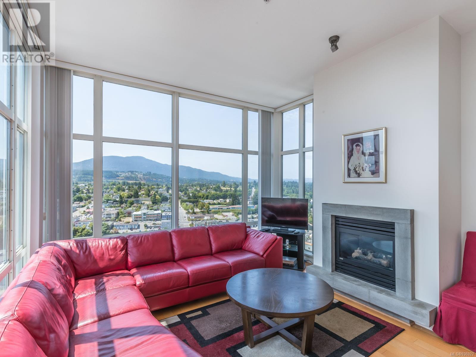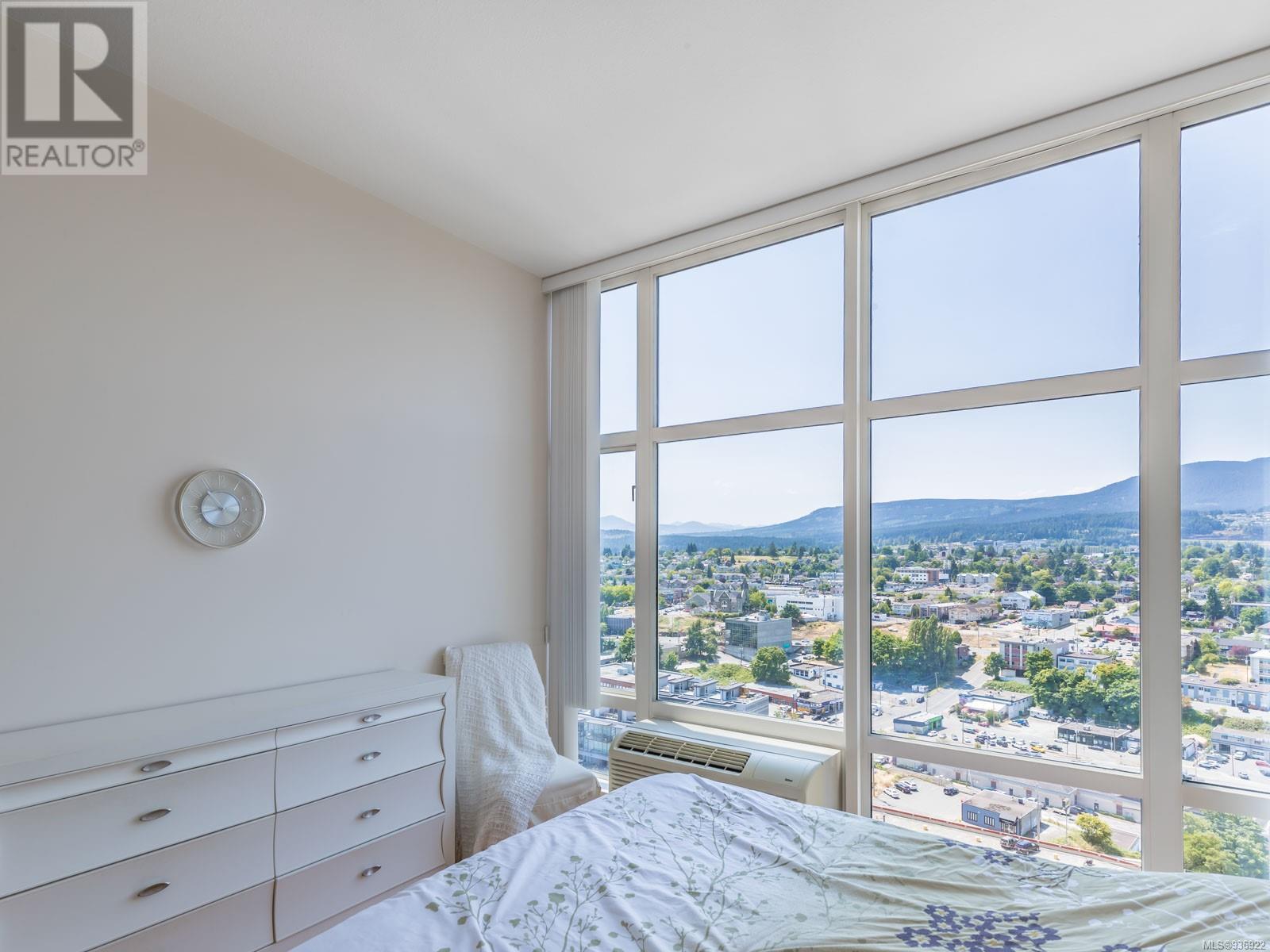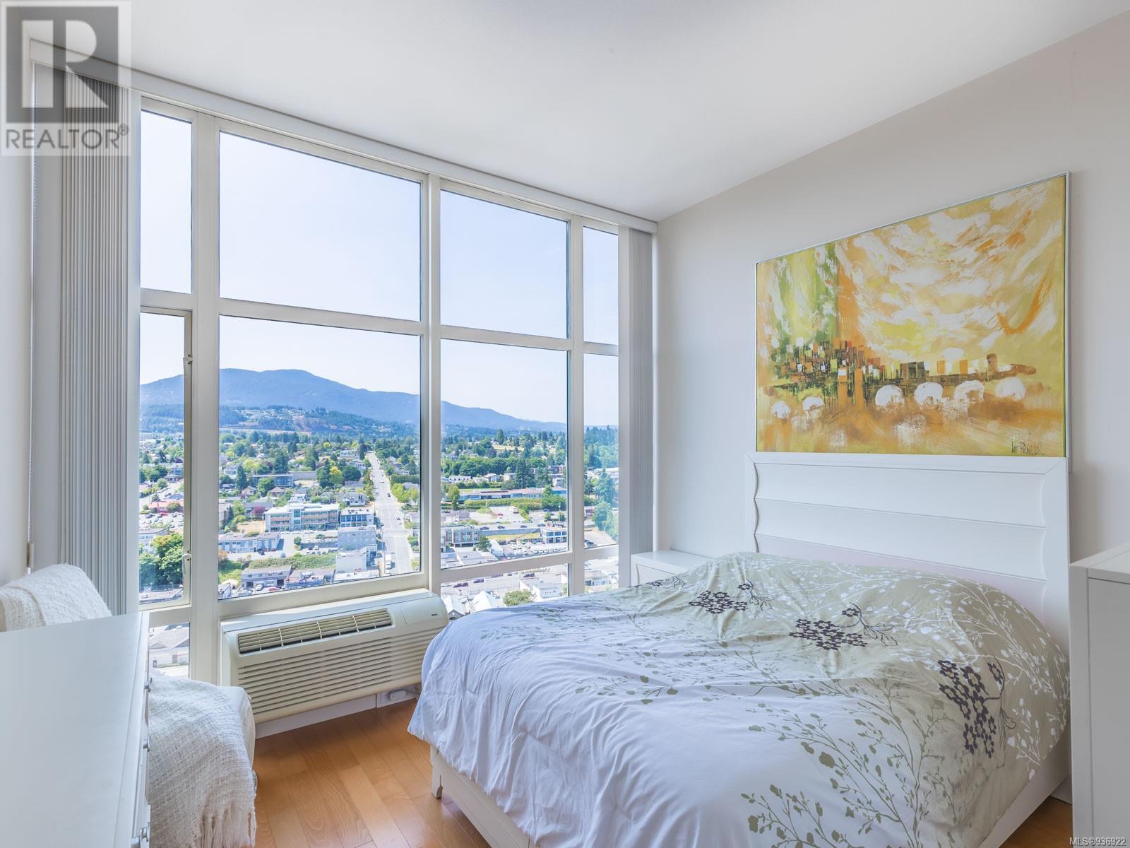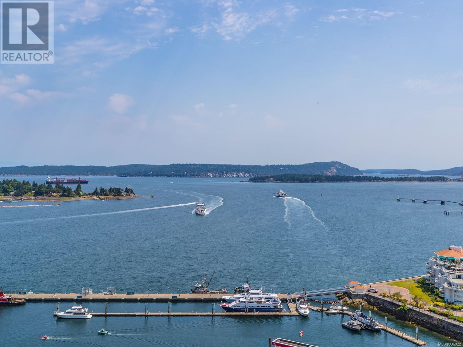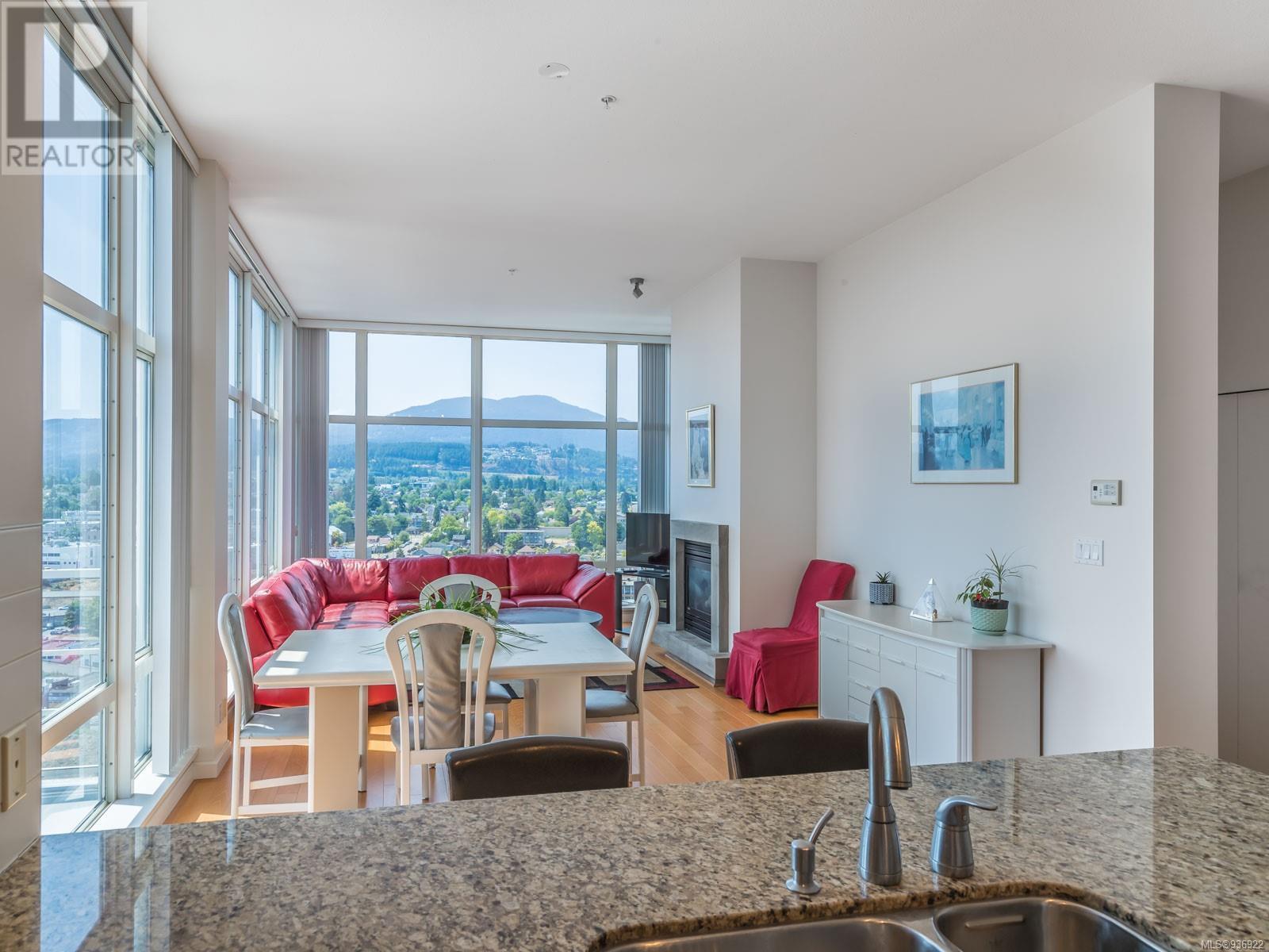 Top Floor Penthouse unit with soaring 10 foot ceilings! Welcome home to the Pacifica - Nanaimo's premiere Waterfront condominium. This unit features spectacular City, Mountain & Ocean views overlooking the inner harbour towards Gabriola Island. The open-concept living space & both bedrooms boast floor to ceiling windows. The kitchen features a Natural Gas range, granite countertops, high-end s/s appliances & honey teak inspired cabinetry. The large primary bedroom includes a Walk in closet & 4 piece ensuite w/ granite counters, double sink & a tiled shower. With 90 degree floor to ceiling windows on two sides, you have the best sights that the Harbour City has to offer. This unit features a large deck directly off the living room & facing the ocean & city. Ideally situated in Nanaimo's downtown core with entertainment, restaurants, shopping & all amenities just steps away including the waterfront walk way. Msmts approx., pls verify if important. (id:22211)