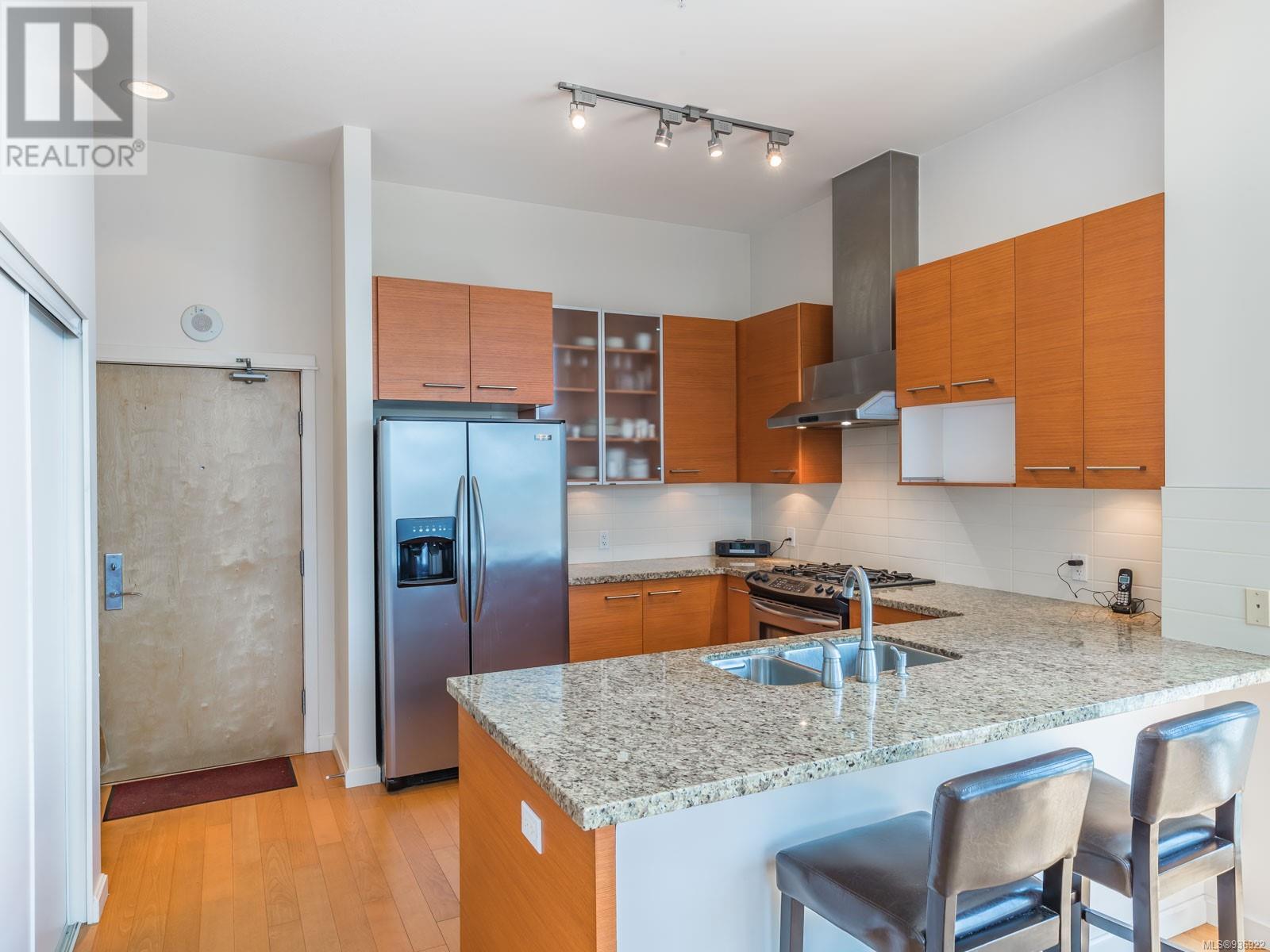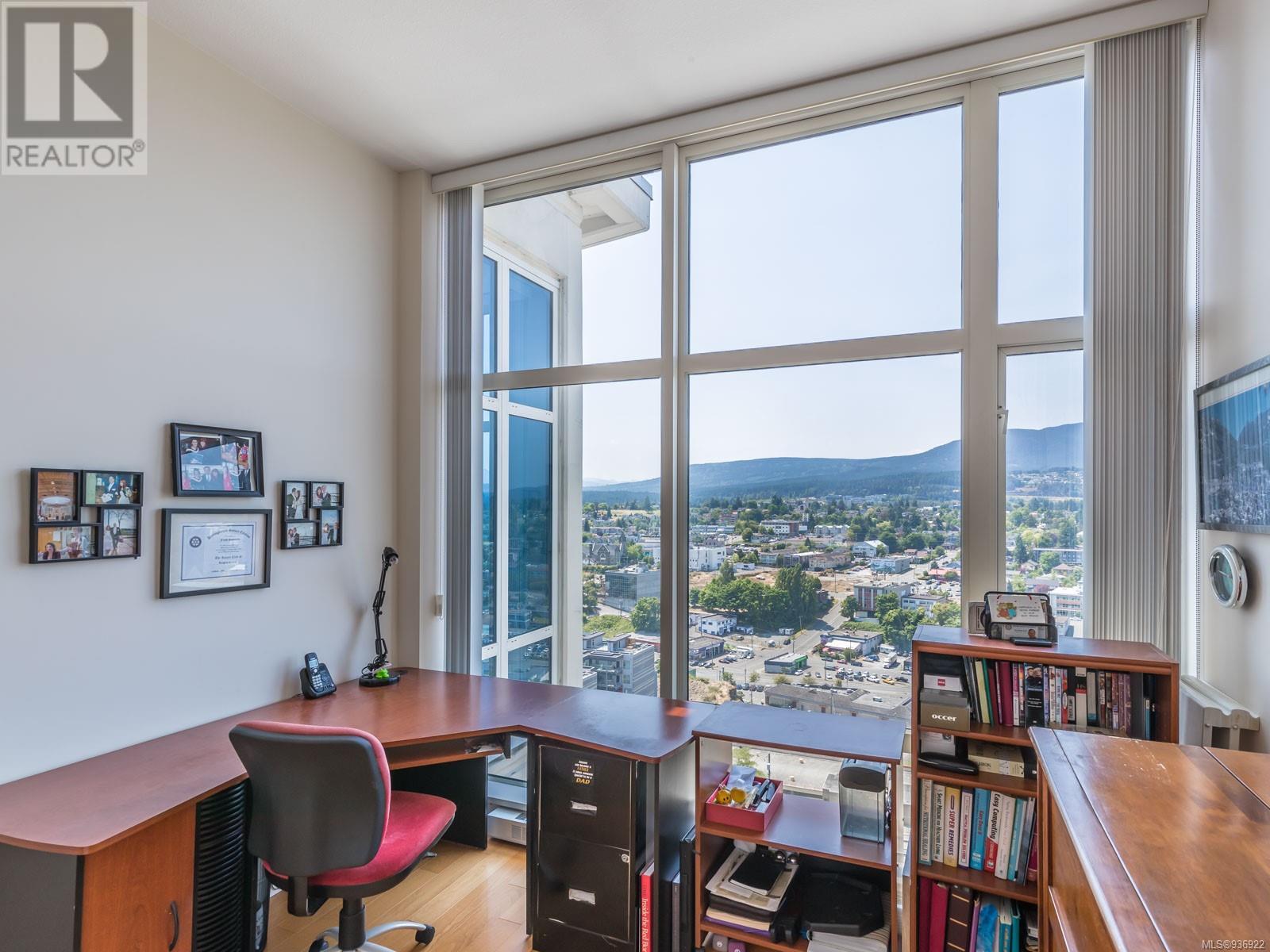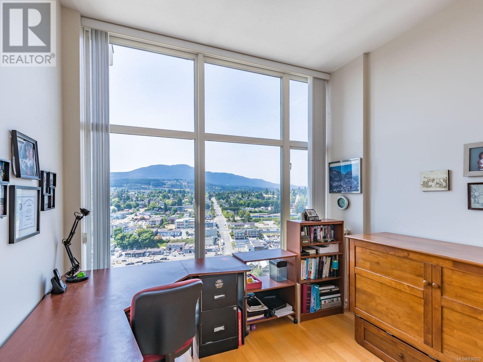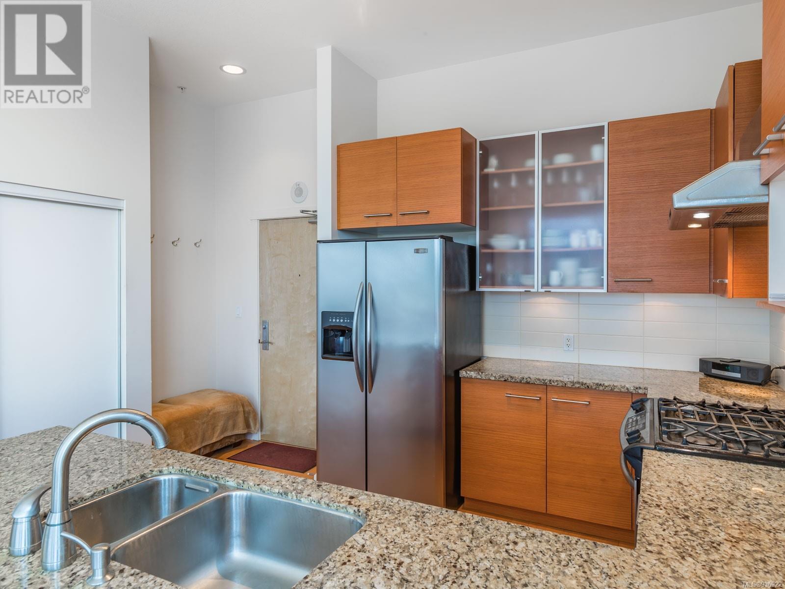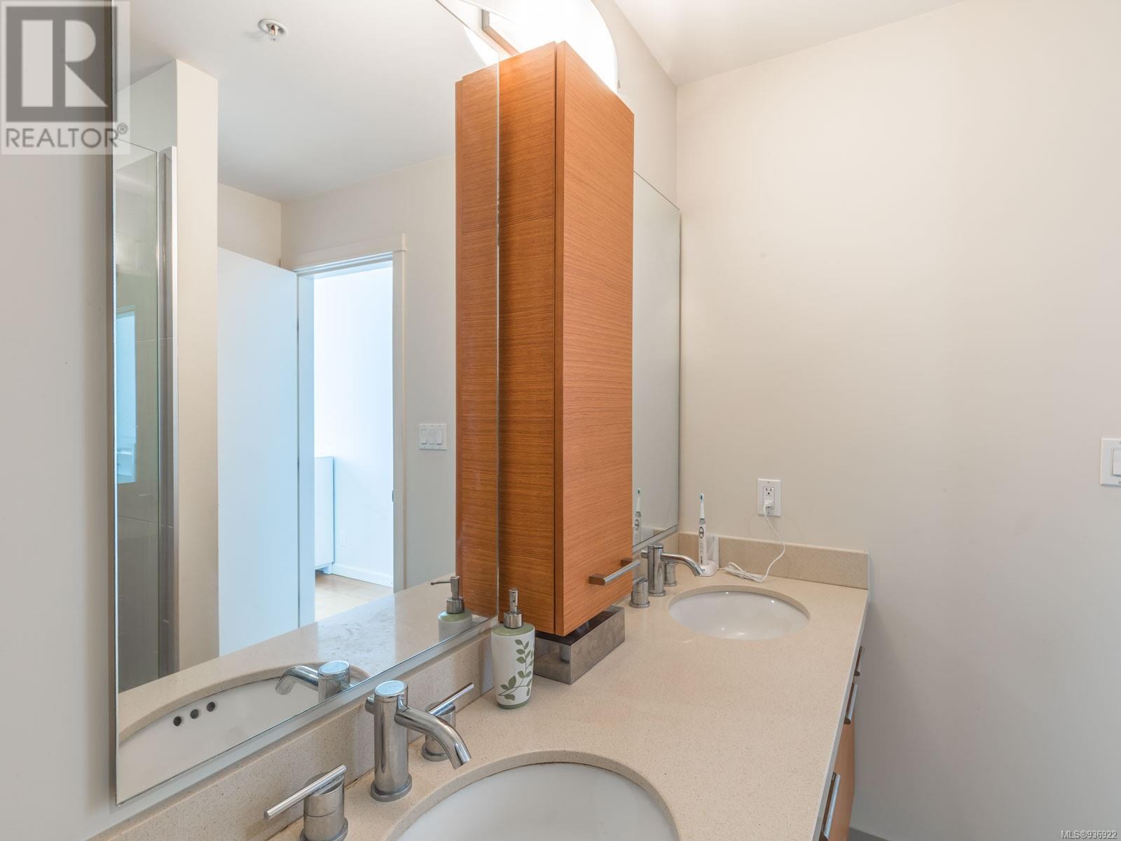 Top Floor Penthouse unit with soaring 10 foot ceilings! Welcome home to the Pacifica - Nanaimo's premiere Waterfront condominium. This unit features spectacular City, Mountain & Ocean views overlooking the inner harbour towards Gabriola Island. The open-concept living space & both bedrooms boast floor to ceiling windows. The kitchen features a Natural Gas range, granite countertops, high-end s/s appliances & honey teak inspired cabinetry. The large primary bedroom includes a Walk in closet & 4 piece ensuite w/ granite counters, double sink & a tiled shower. With 90 degree floor to ceiling windows on two sides, you have the best sights that the Harbour City has to offer. This unit features a large deck directly off the living room & facing the ocean & city. Ideally situated in Nanaimo's downtown core with entertainment, restaurants, shopping & all amenities just steps away including the waterfront walk way. Msmts approx., pls verify if important. (id:22211)