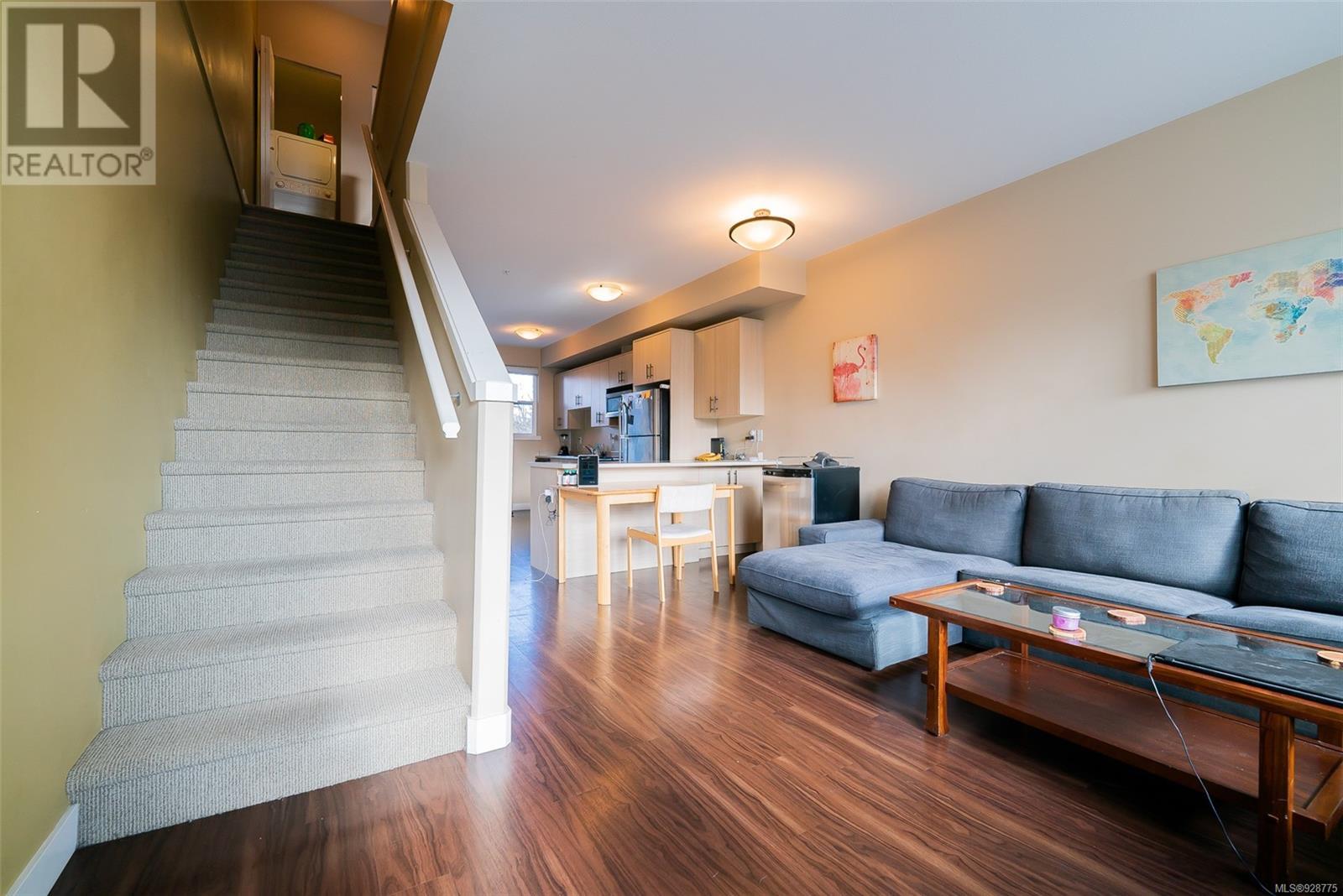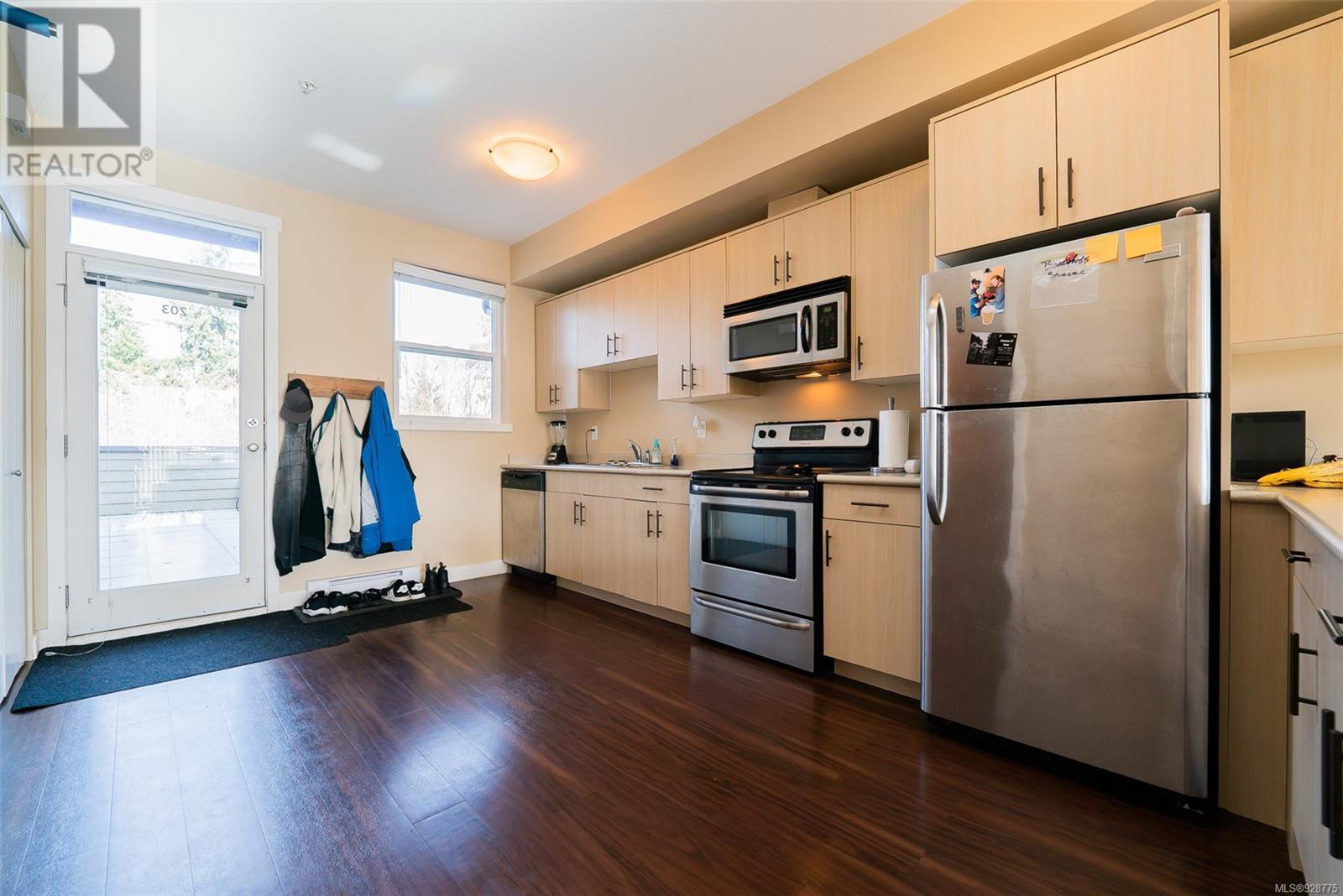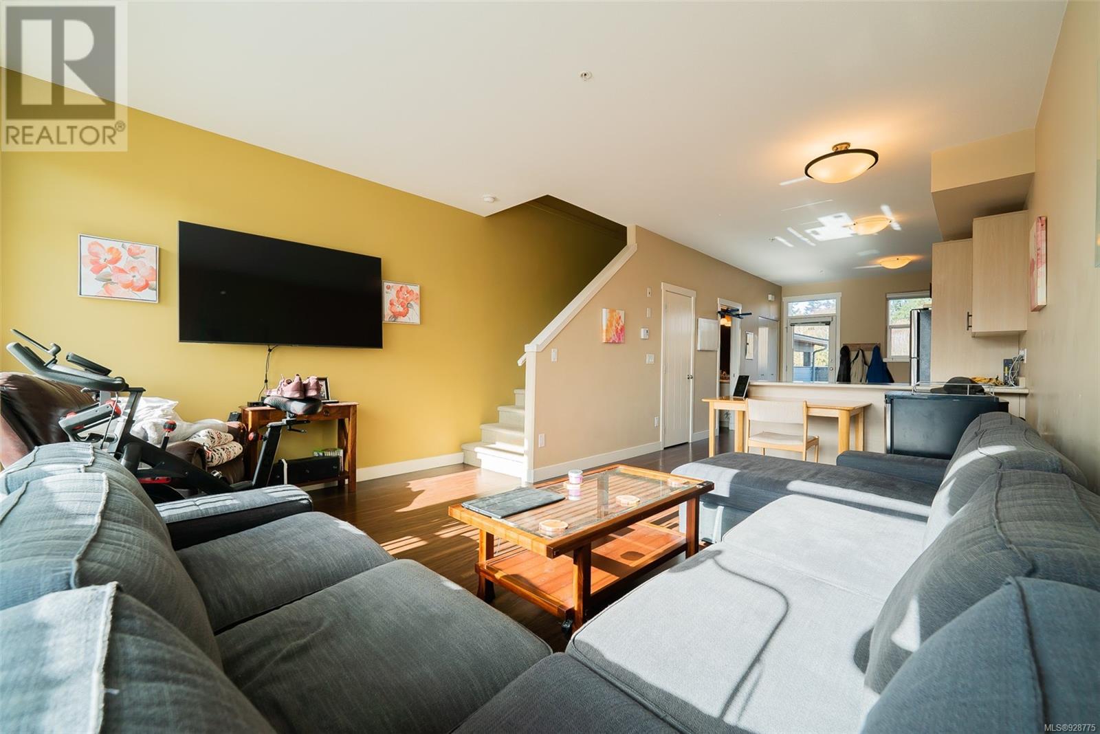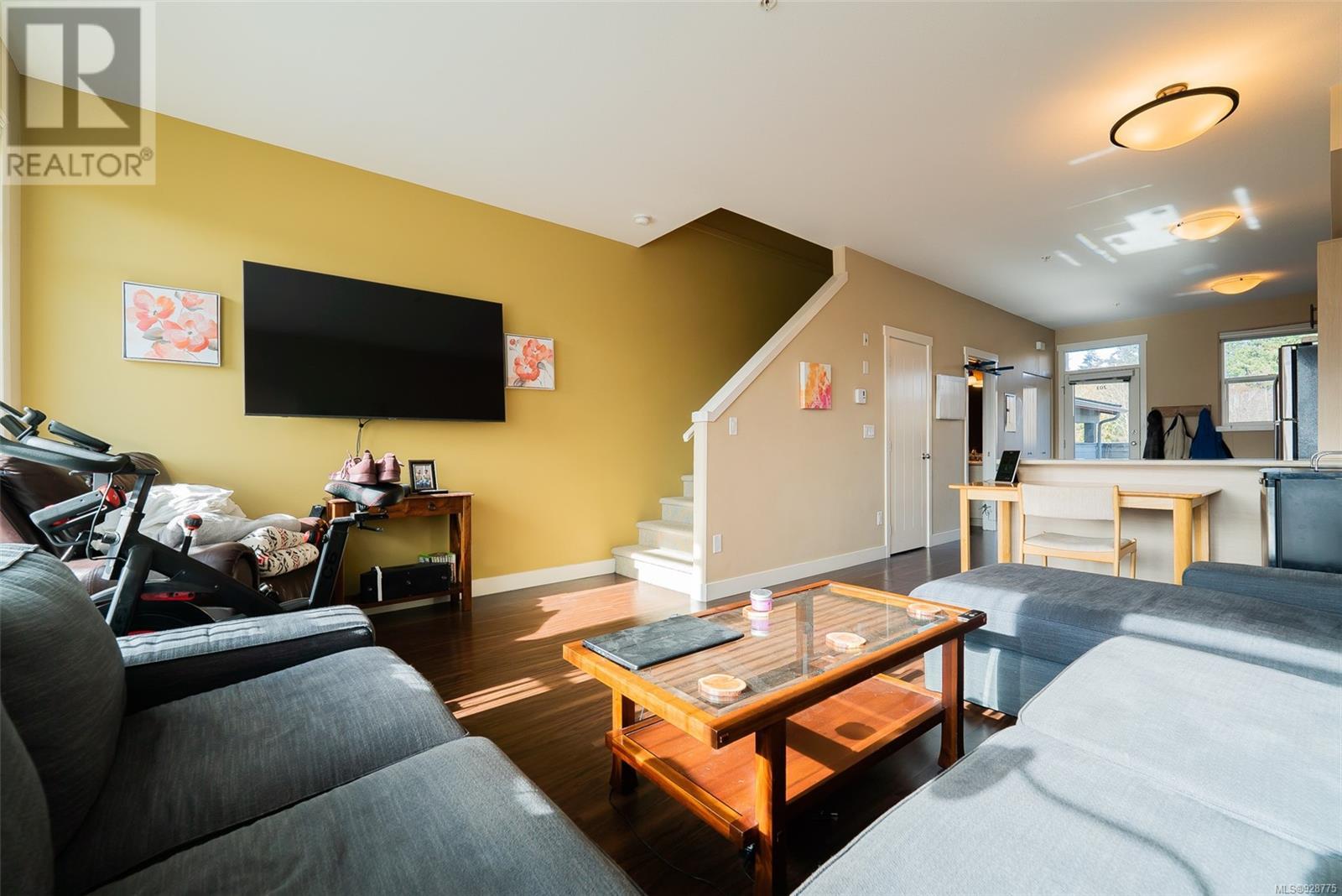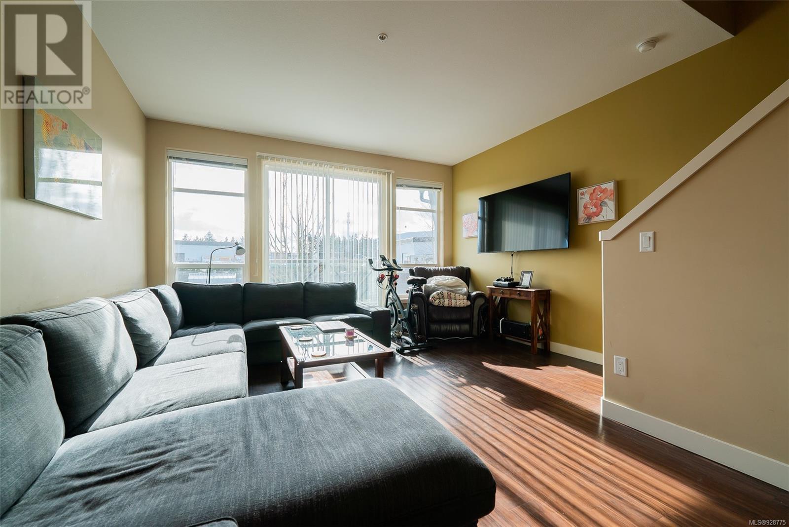 STROLL TO EVERYTHING! Brannen Lake, Parkway trail, local parks, excellent restaurants, movie theatre, the mall! Extremely spacious, over 1000 sq ft, gorgeous townhouse with 2 bedrooms & 2 bathrooms in the heart of prestigious and desirable North Nanaimo! Built by esteemed Windley Construction in 2011 and part of exceptionally well-run strata with some of the lowest strata fees in town! No elevator! Walk straight into the main floor’s open concept design, kitchen w/eating bar, soft-close cabinetry, stainless steel appliances, expansive dining & living area with plenty space for a comfy sectional & desk, 2 piece bath & storage. Upstairs - 2 spacious bedrooms, 4 piece bath, linen closet & laundry. Beautiful large sunny common patio just outside your door, perfect for lazy afternoons to fun summer nights. 1 Parking. Amazing LOCATION! Must see! (id:22211)