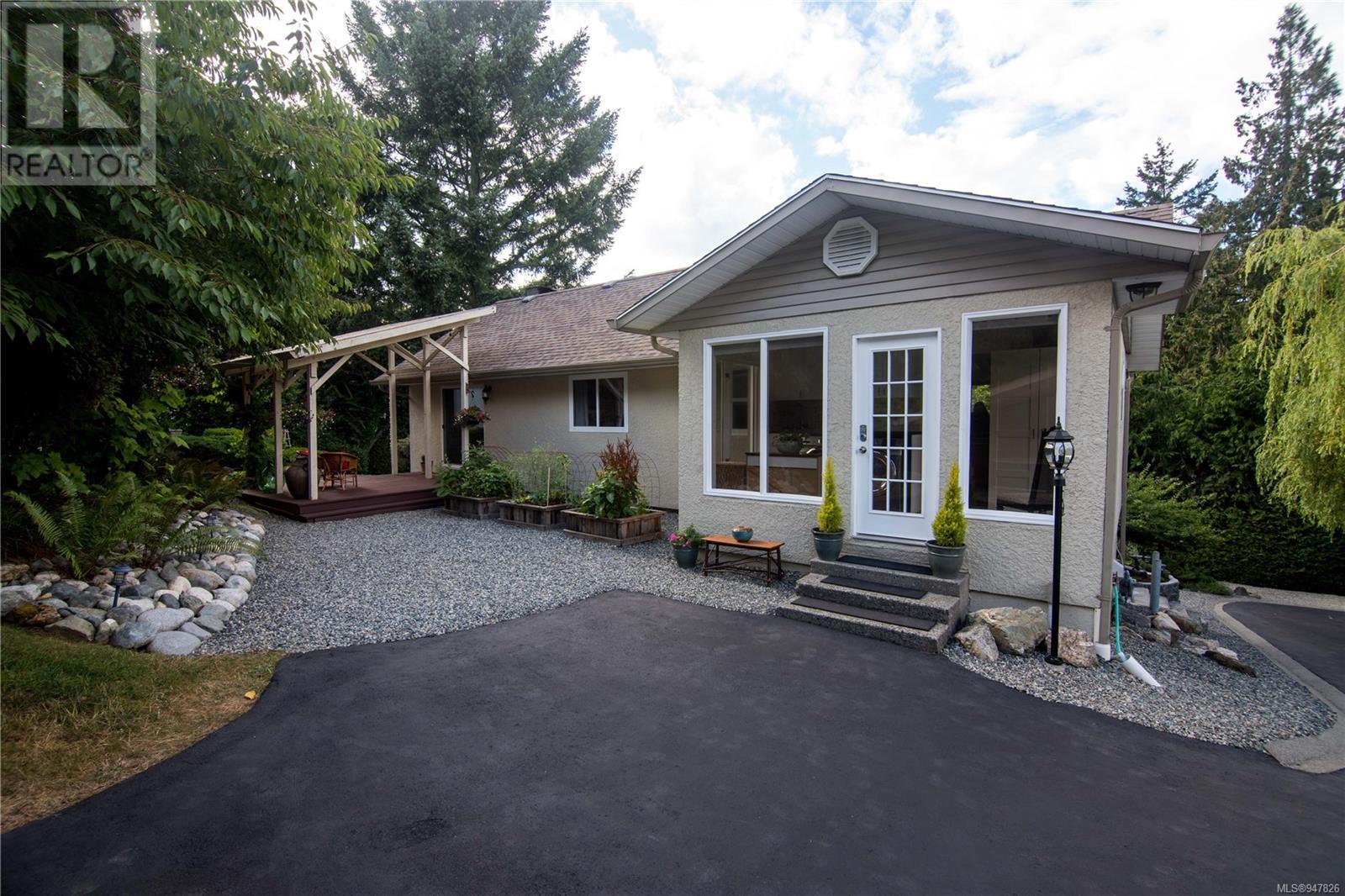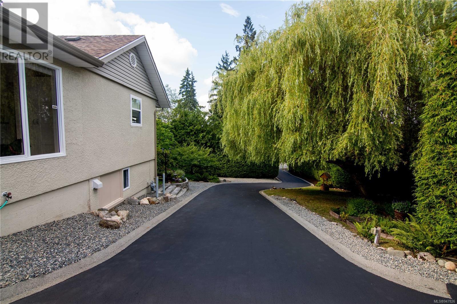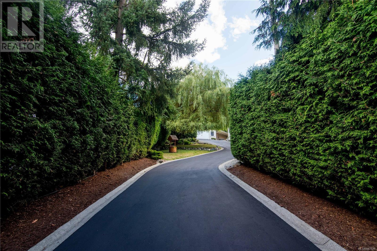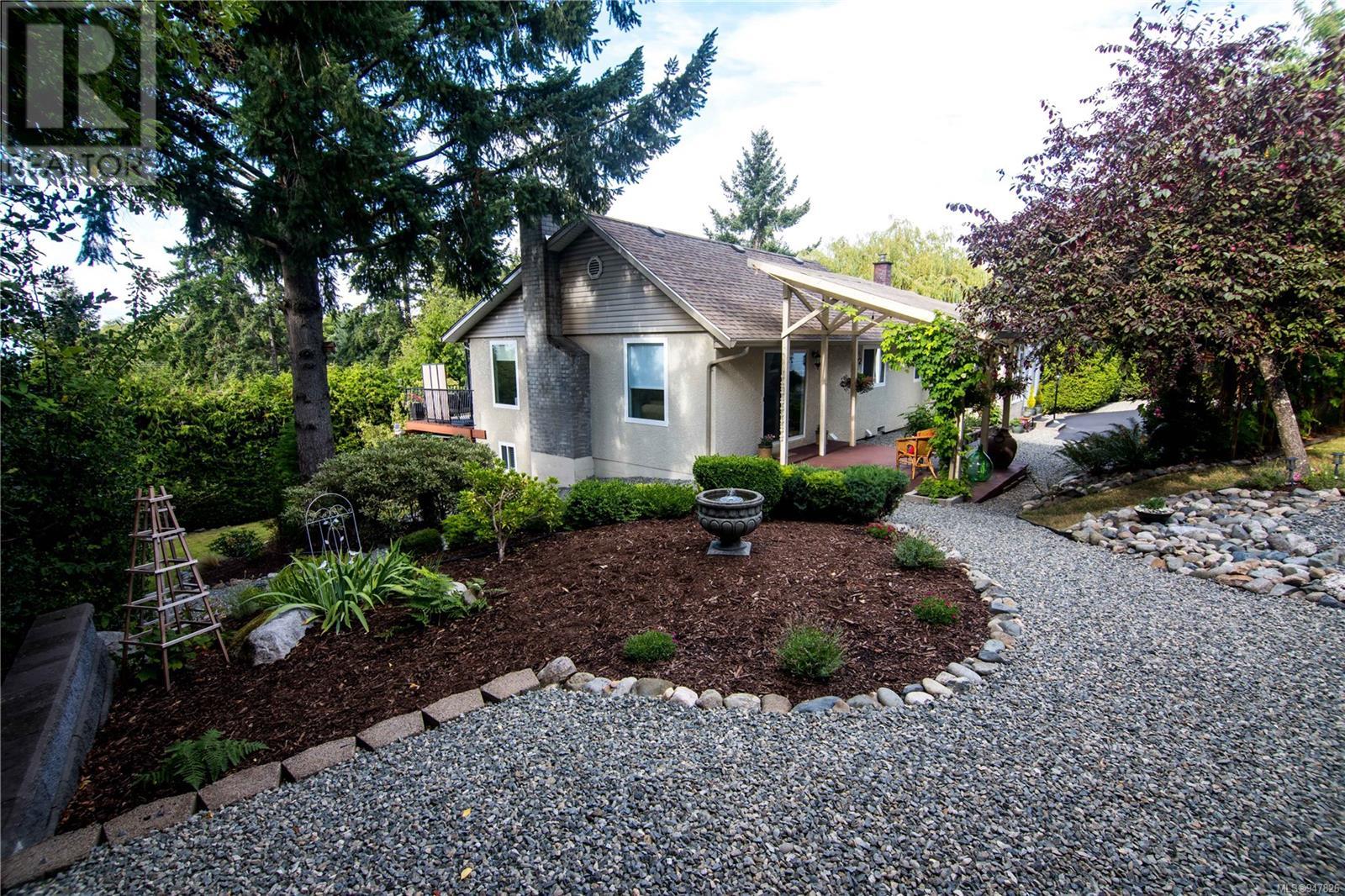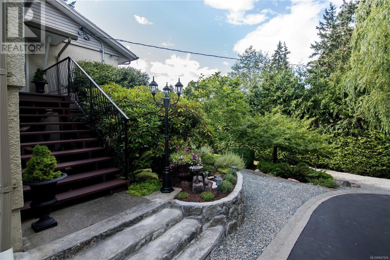 'Turn-key' single-level living with an income suite & shop. Nestled in North Nanaimo, this designer-inspired estate offers modern luxury on a nearly half-acre lot. A gated driveway leads to this private retreat, surrounded by mature trees and manicured gardens. The main floor features hardwood floors, a new kitchen with granite counters, and a spacious lounge/dining area with a stone fireplace. Bedrooms boast custom wardrobes, and sleek bathrooms maximize space with modern finishes. The lower level includes a self-contained suite & includes laundry, and a bright bedroom. Additional highlights include a detached oversized garage (545sqft) & greenhouse (167sqft), detached workshop (100sqft), and ample parking for cars, boats, and RVs. Enjoy panoramic views from expansive decks, creating the perfect space for entertaining or relaxation. This property seamlessly blends old-world charm with modern elegance, offering a warm & inviting atmosphere amidst breathtaking natural surroundings. (id:22211)