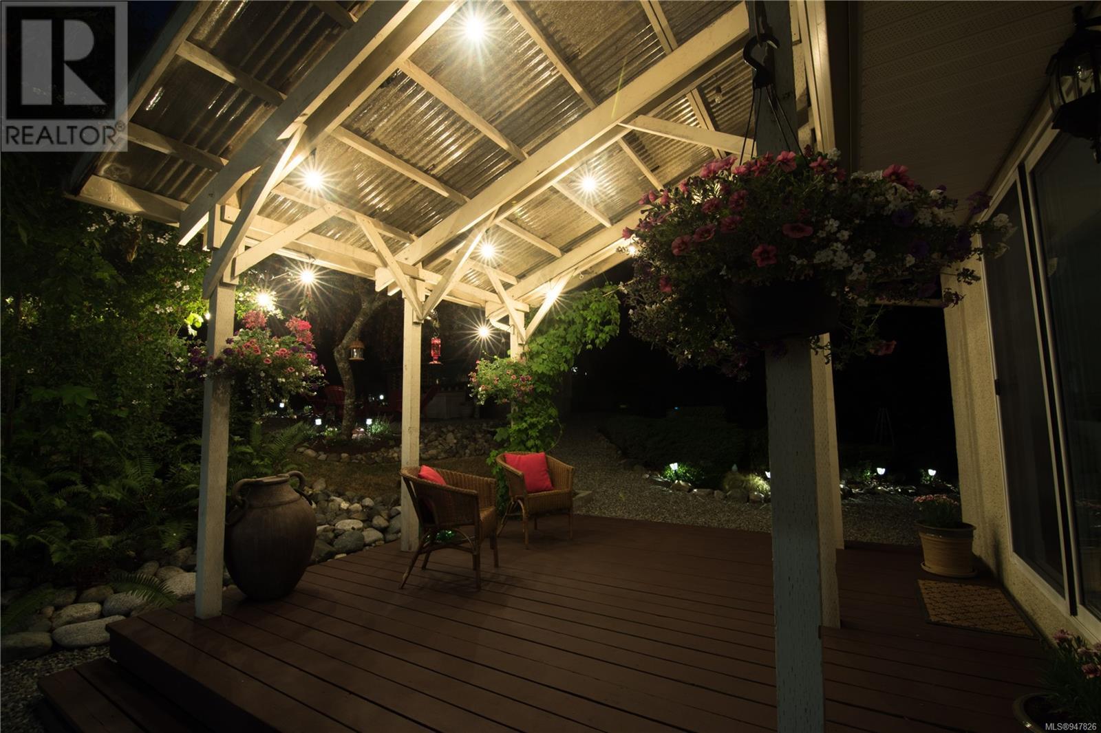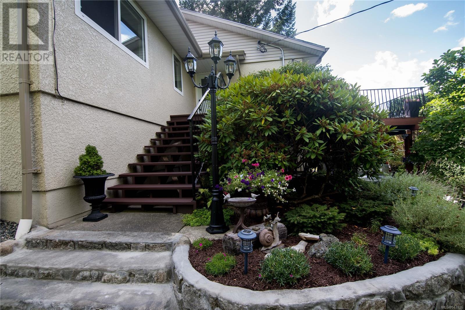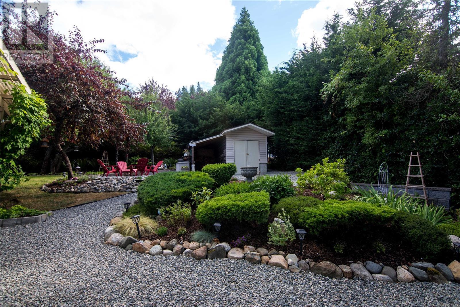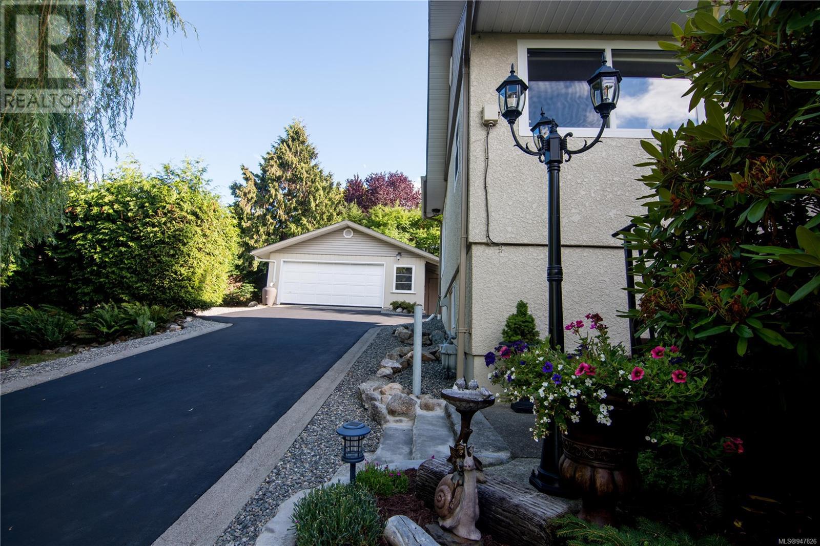 'Turn-key' single-level living with an income suite & shop. Nestled in North Nanaimo, this designer-inspired estate offers modern luxury on a nearly half-acre lot. A gated driveway leads to this private retreat, surrounded by mature trees and manicured gardens. The main floor features hardwood floors, a new kitchen with granite counters, and a spacious lounge/dining area with a stone fireplace. Bedrooms boast custom wardrobes, and sleek bathrooms maximize space with modern finishes. The lower level includes a self-contained suite & includes laundry, and a bright bedroom. Additional highlights include a detached oversized garage (545sqft) & greenhouse (167sqft), detached workshop (100sqft), and ample parking for cars, boats, and RVs. Enjoy panoramic views from expansive decks, creating the perfect space for entertaining or relaxation. This property seamlessly blends old-world charm with modern elegance, offering a warm & inviting atmosphere amidst breathtaking natural surroundings. (id:22211)