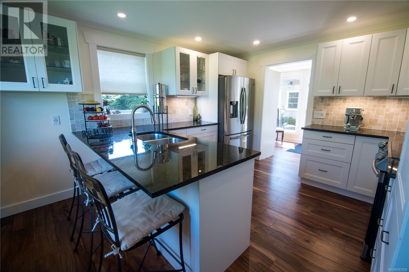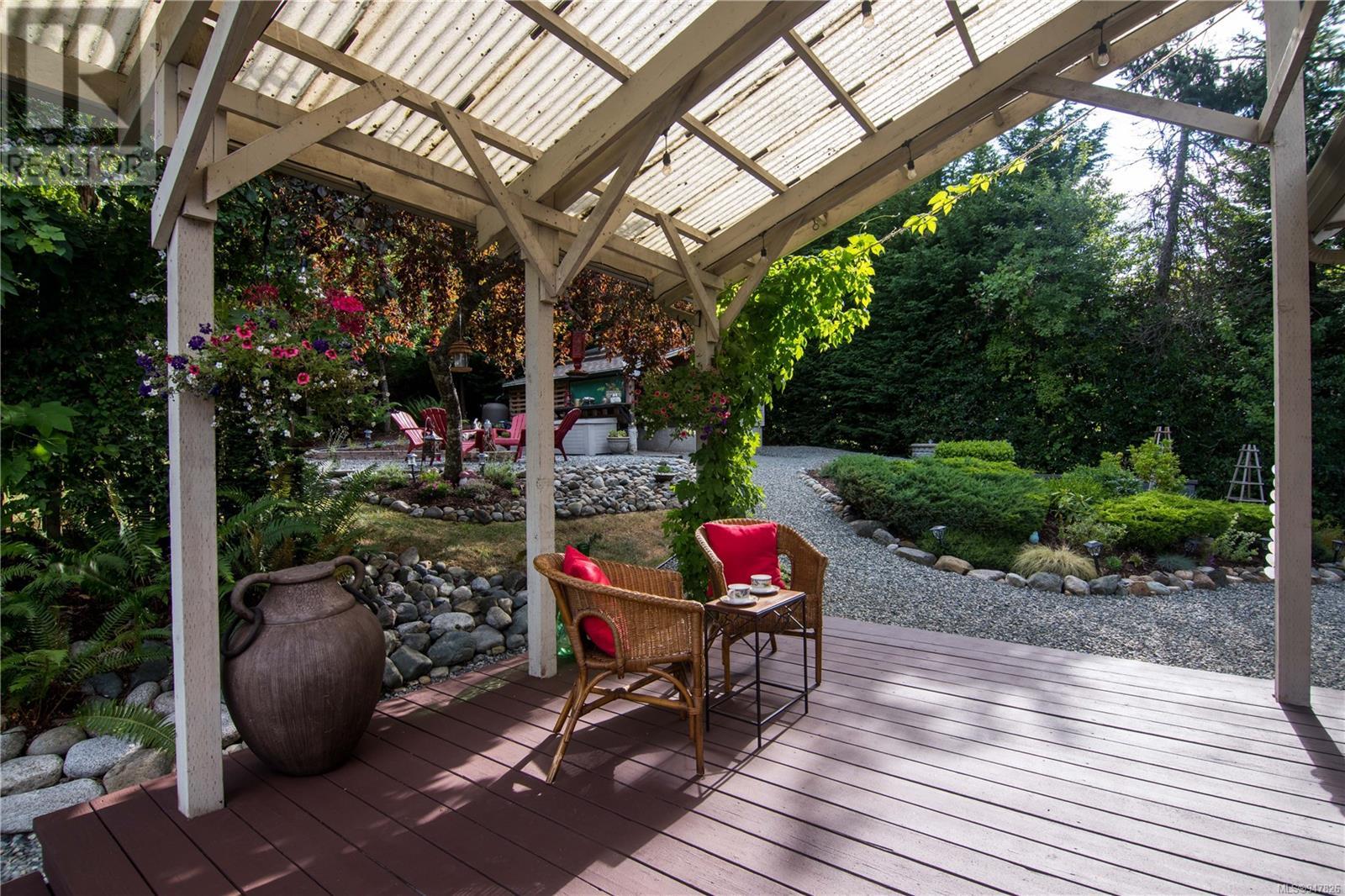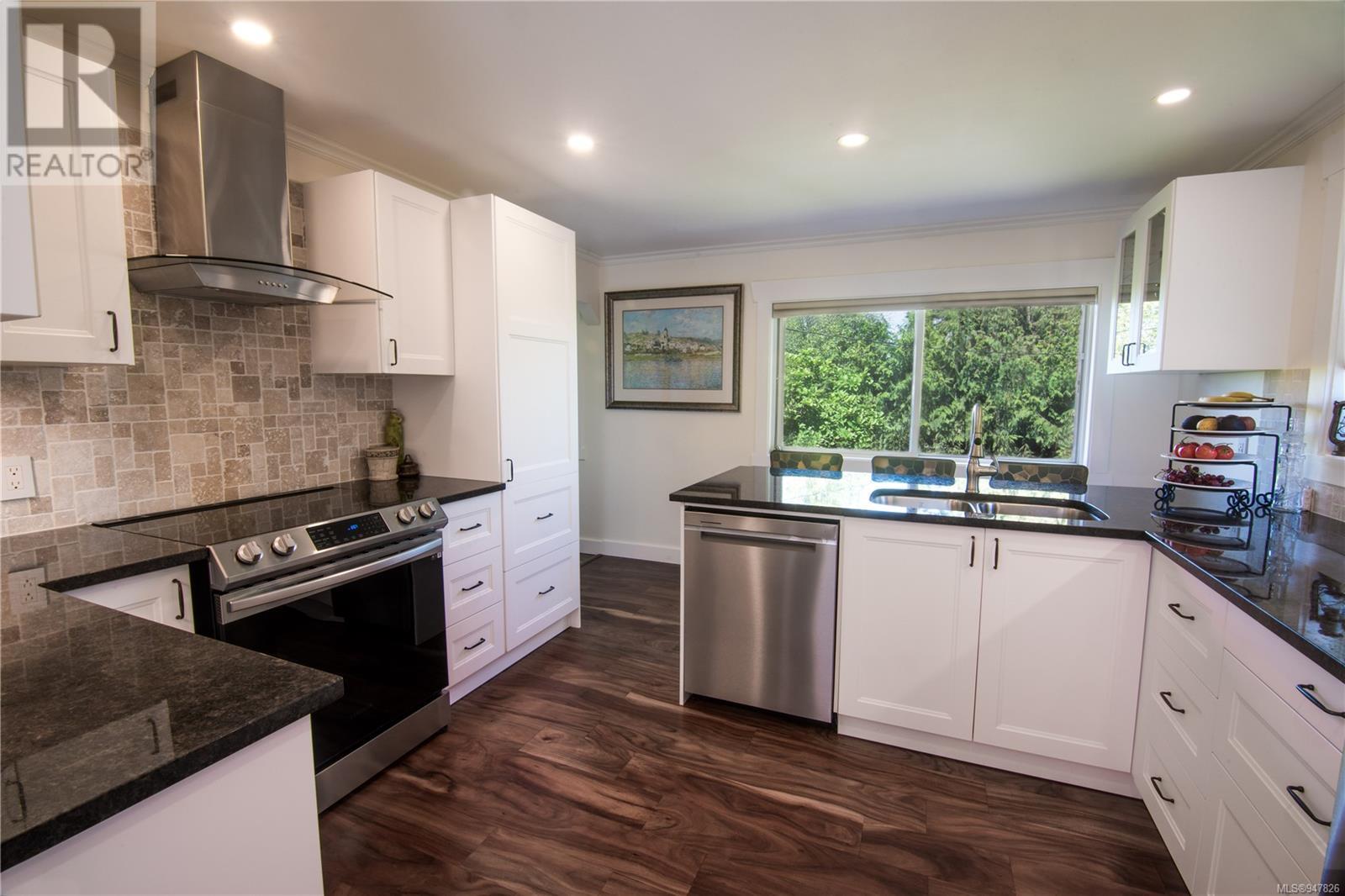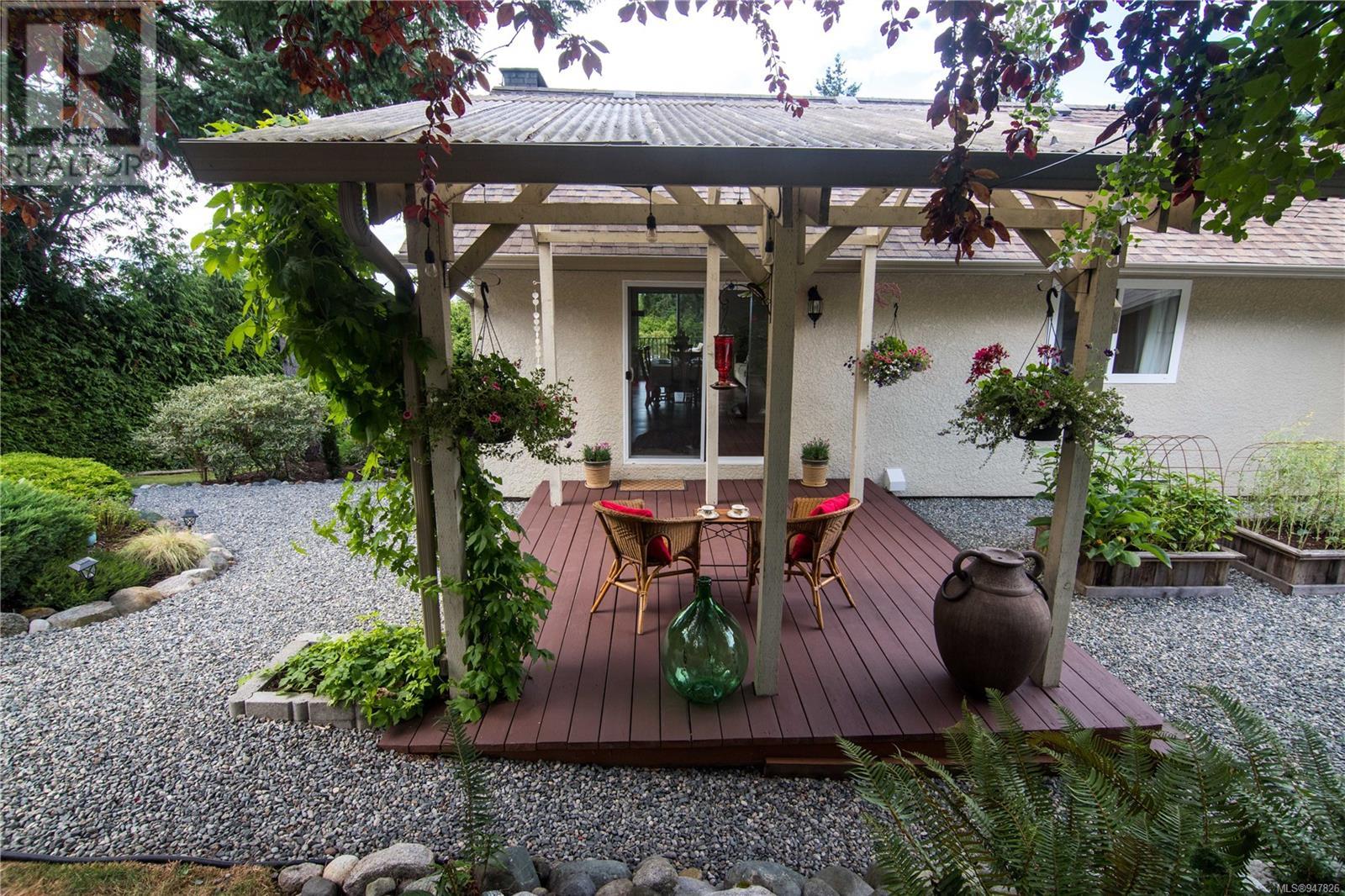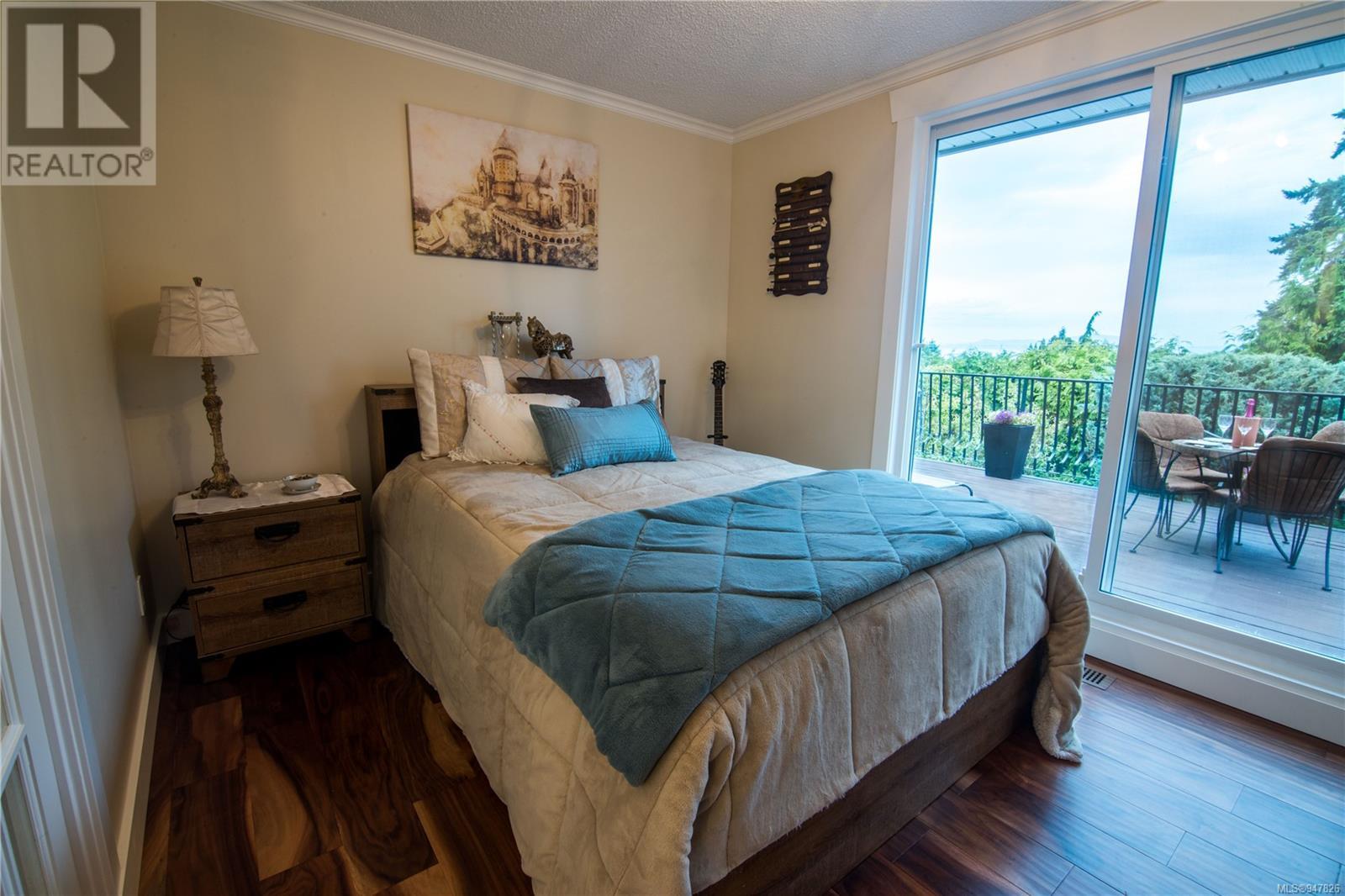 'Turn-key' single-level living with an income suite & shop. Nestled in North Nanaimo, this designer-inspired estate offers modern luxury on a nearly half-acre lot. A gated driveway leads to this private retreat, surrounded by mature trees and manicured gardens. The main floor features hardwood floors, a new kitchen with granite counters, and a spacious lounge/dining area with a stone fireplace. Bedrooms boast custom wardrobes, and sleek bathrooms maximize space with modern finishes. The lower level includes a self-contained suite & includes laundry, and a bright bedroom. Additional highlights include a detached oversized garage (545sqft) & greenhouse (167sqft), detached workshop (100sqft), and ample parking for cars, boats, and RVs. Enjoy panoramic views from expansive decks, creating the perfect space for entertaining or relaxation. This property seamlessly blends old-world charm with modern elegance, offering a warm & inviting atmosphere amidst breathtaking natural surroundings. (id:22211)