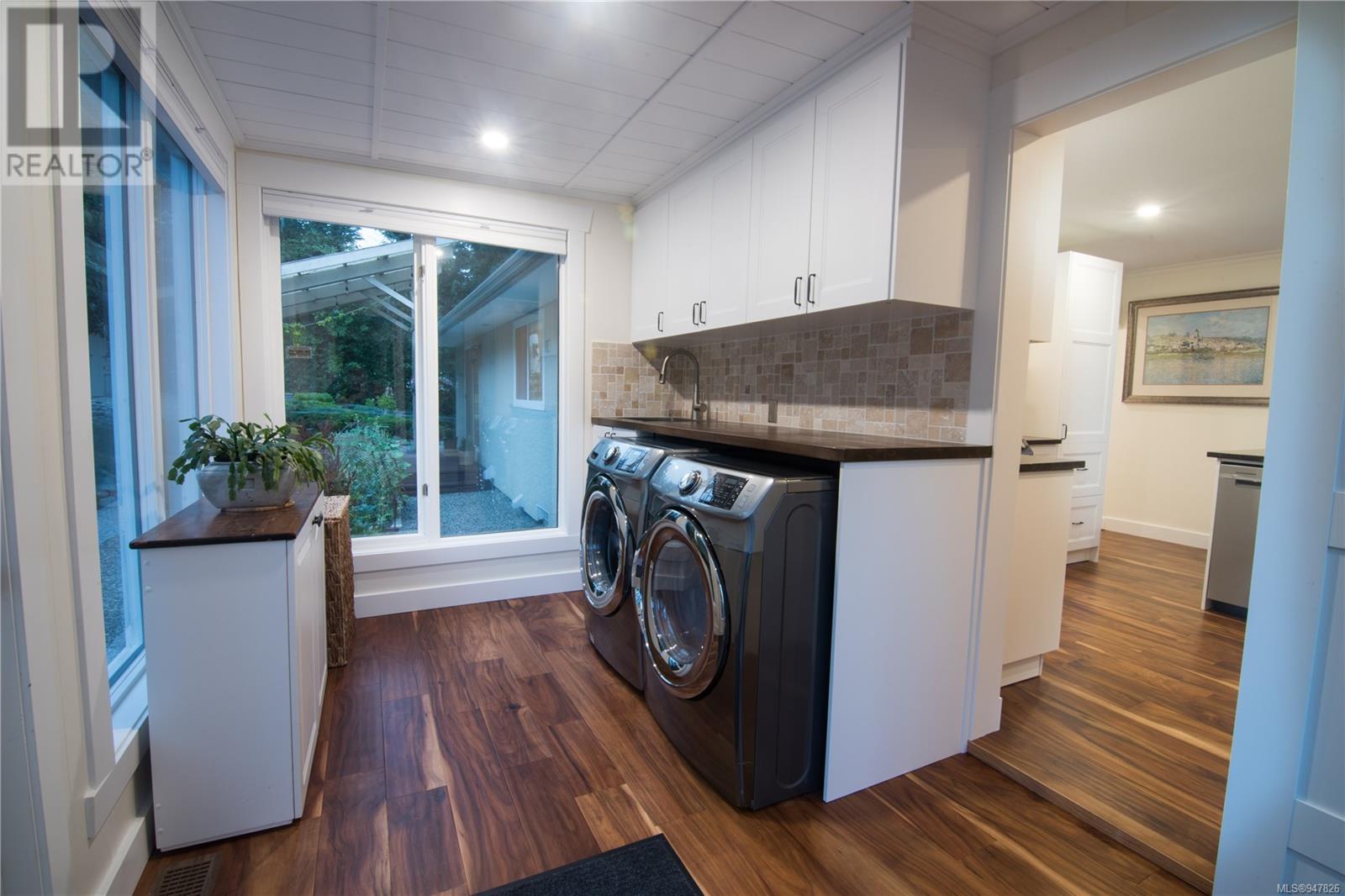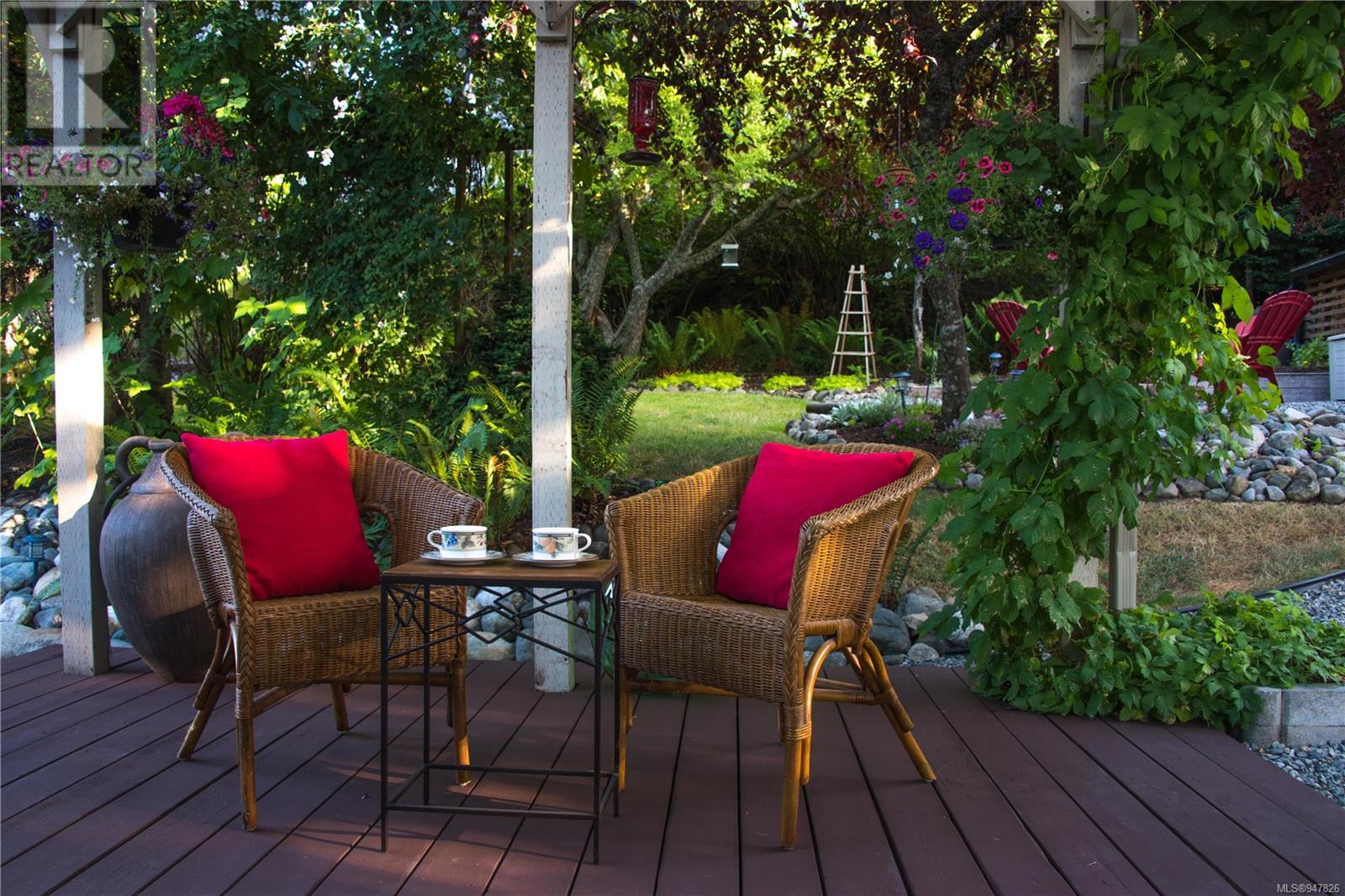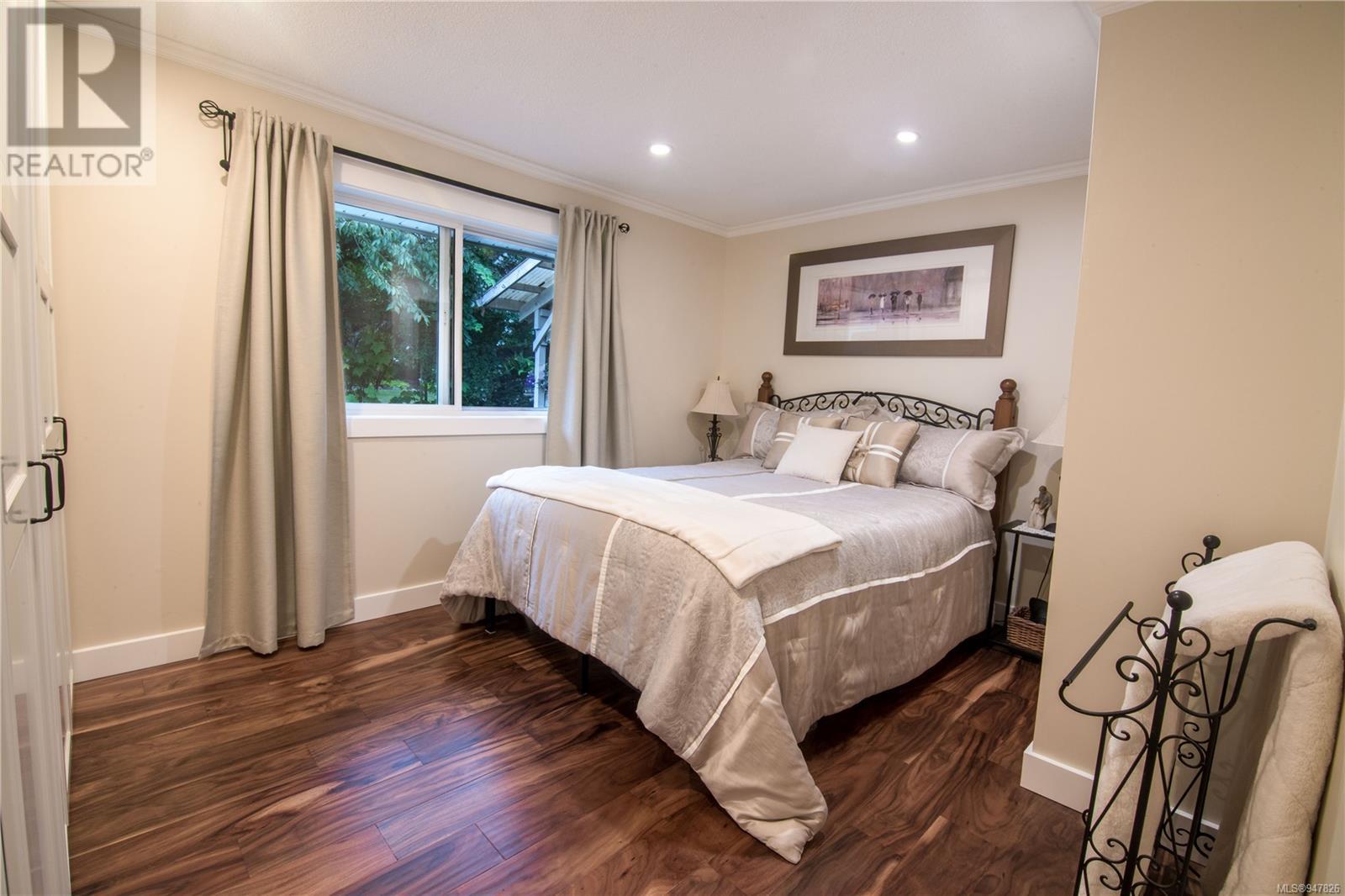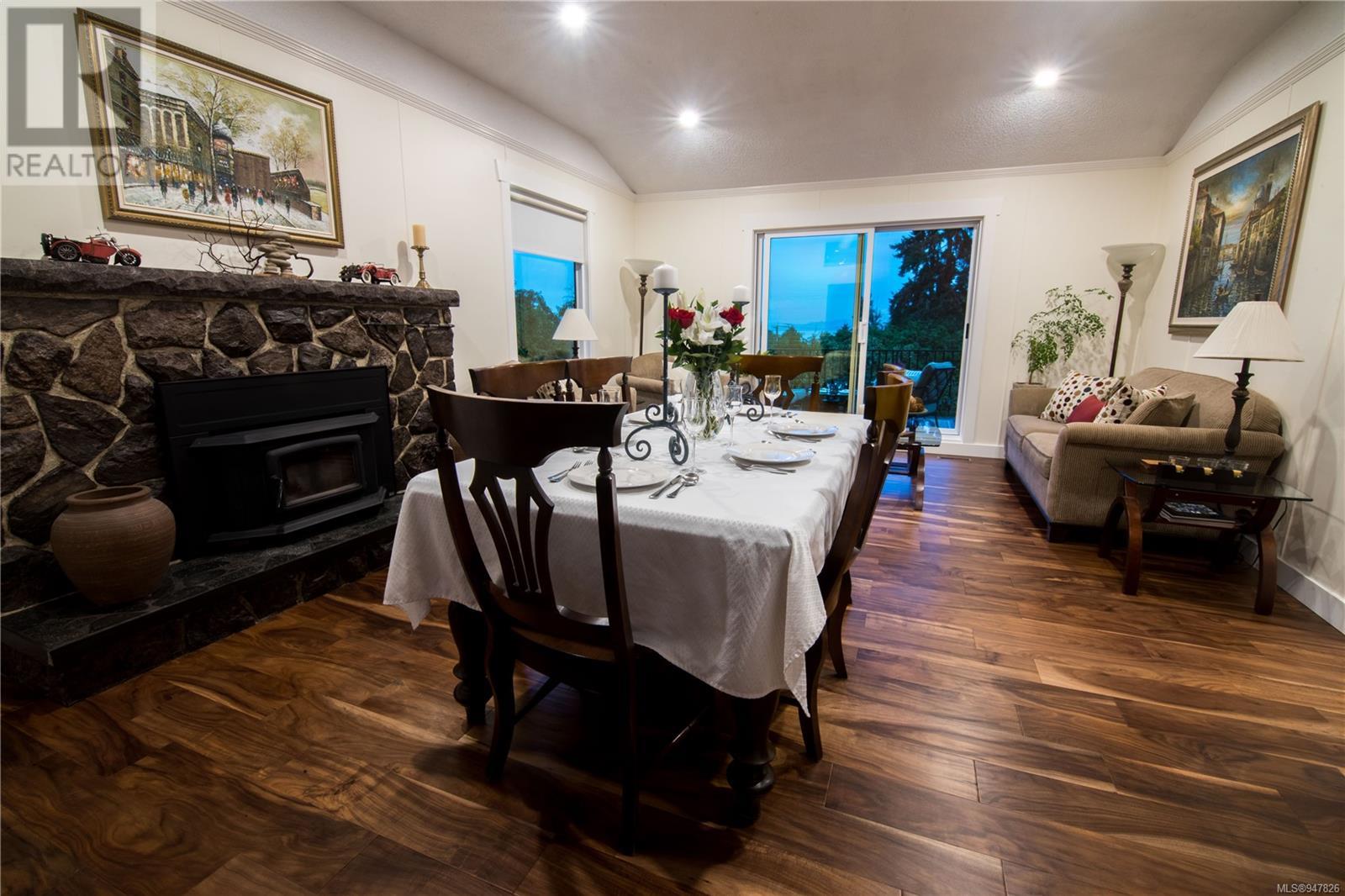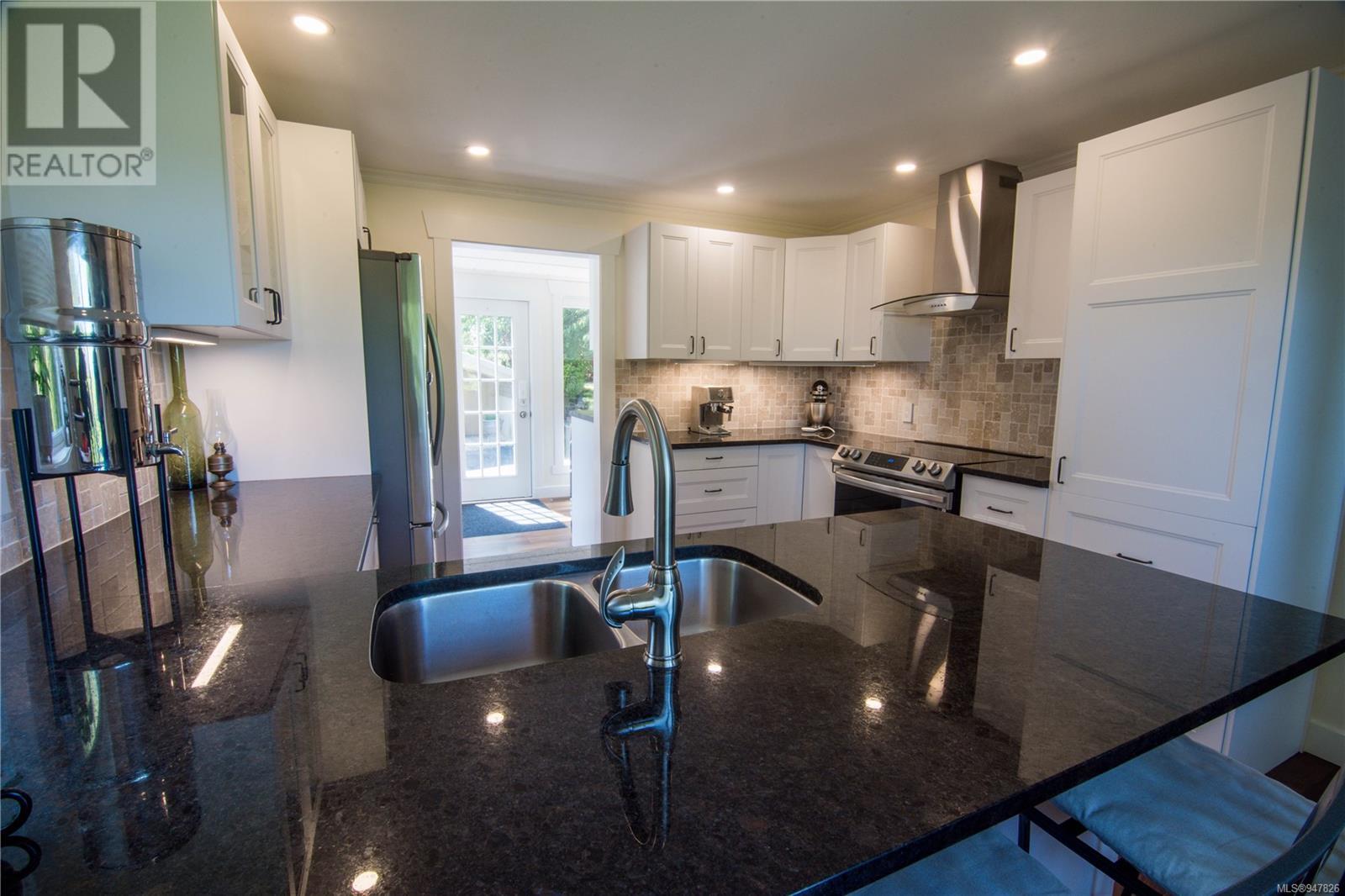 'Turn-key' single-level living with an income suite & shop. Nestled in North Nanaimo, this designer-inspired estate offers modern luxury on a nearly half-acre lot. A gated driveway leads to this private retreat, surrounded by mature trees and manicured gardens. The main floor features hardwood floors, a new kitchen with granite counters, and a spacious lounge/dining area with a stone fireplace. Bedrooms boast custom wardrobes, and sleek bathrooms maximize space with modern finishes. The lower level includes a self-contained suite & includes laundry, and a bright bedroom. Additional highlights include a detached oversized garage (545sqft) & greenhouse (167sqft), detached workshop (100sqft), and ample parking for cars, boats, and RVs. Enjoy panoramic views from expansive decks, creating the perfect space for entertaining or relaxation. This property seamlessly blends old-world charm with modern elegance, offering a warm & inviting atmosphere amidst breathtaking natural surroundings. (id:22211)
