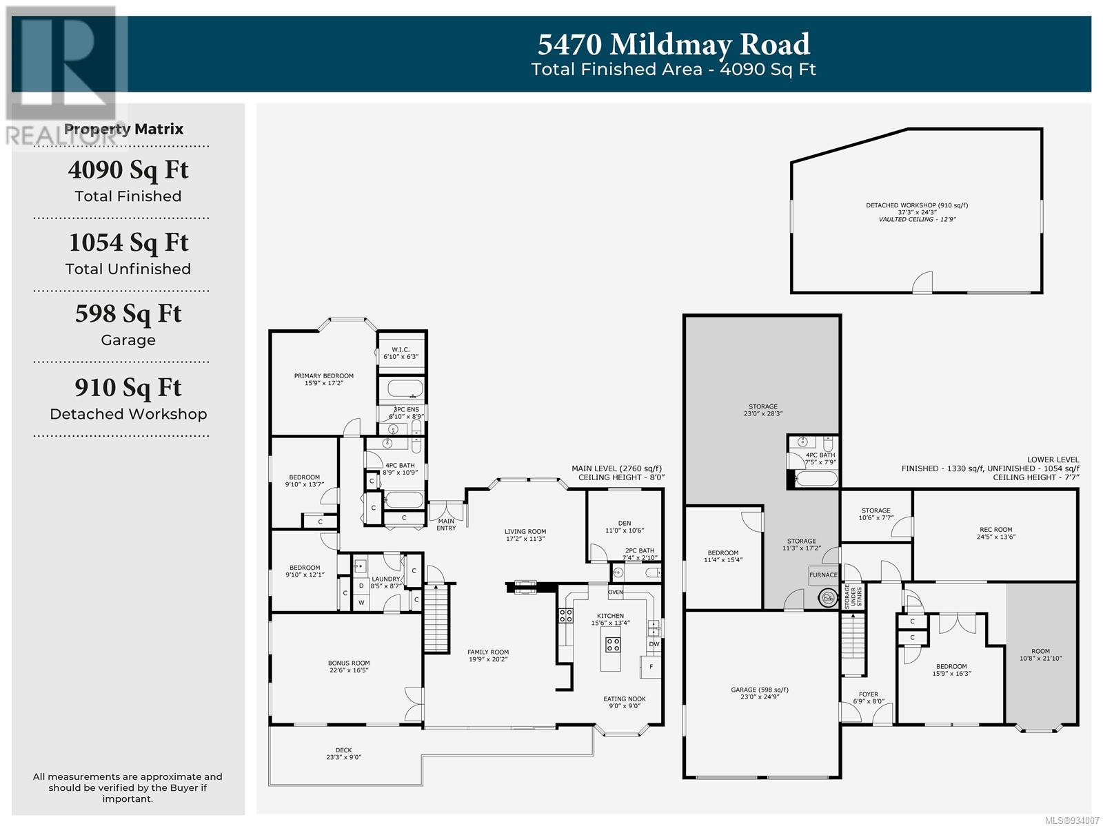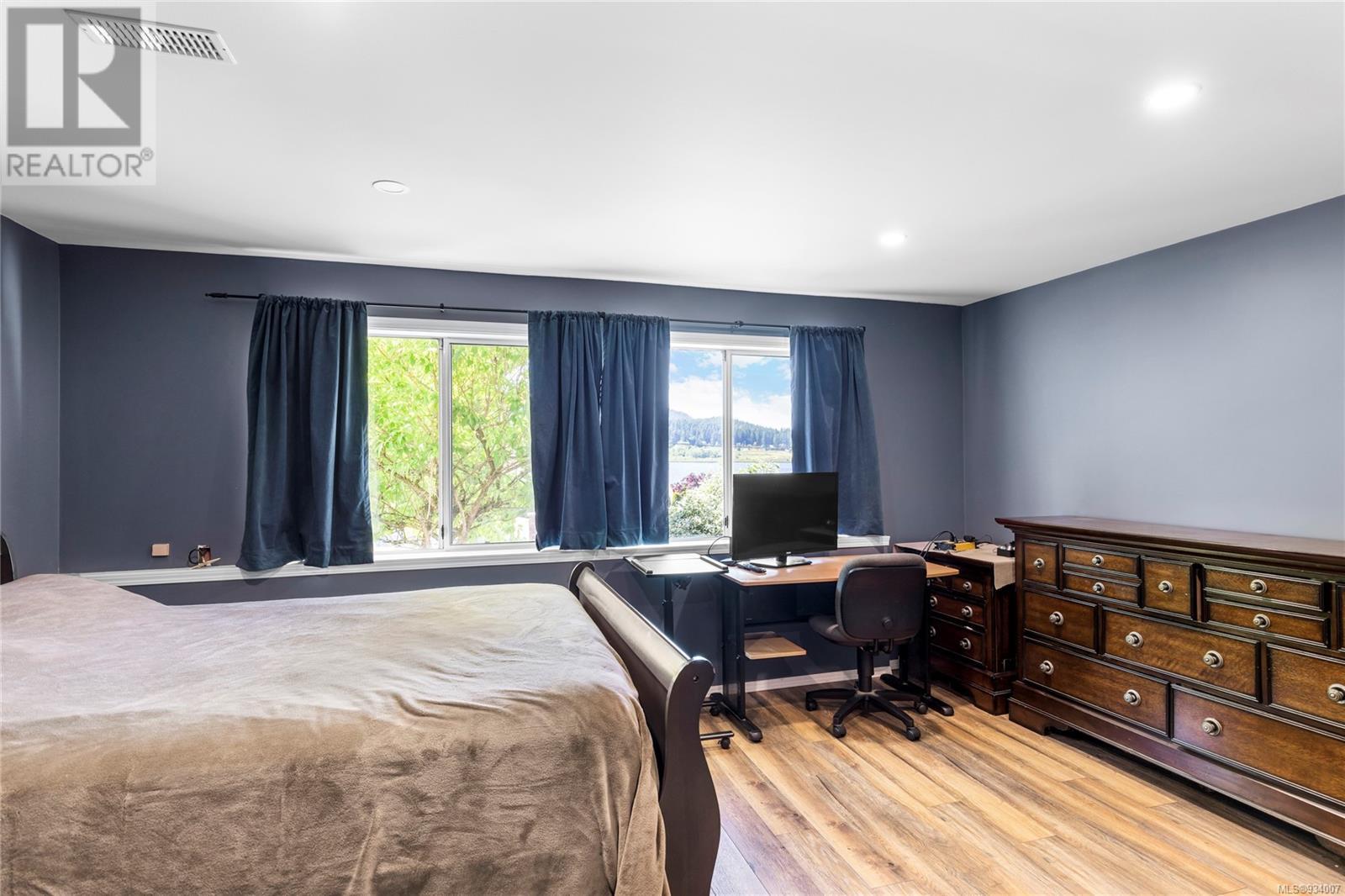 Set on a 0.48 acre corner lot with beautiful views of Brannen Lake, this property boasts a 5,144 sqft home and detached workshop with separate 200 amp service. Enjoy the views from the abundant windows and front deck. The expansive main level boasts three separate living areas, den and three bedrooms including the primary with walk-in closet and three-piece ensuite. The kitchen offers many additional appliances, eating area, island and accessible portion of counter with second cooktop. Currently the lower level has additional living spaces, two bedrooms and storage but the layout is ideal for future suite potential. The 910 sqft workshop is located at the rear of the property accessed by the huge wraparound driveway providing tons of parking. This is a fantastic location with boat ramp down the street and easy access to North Nanaimo amenities. For more information see the 3D tour, video and floor plan. All data and measurements are approximate and must be verified if fundamental. (id:22211)