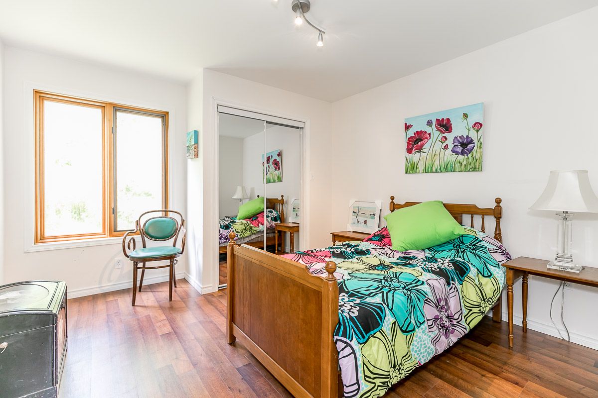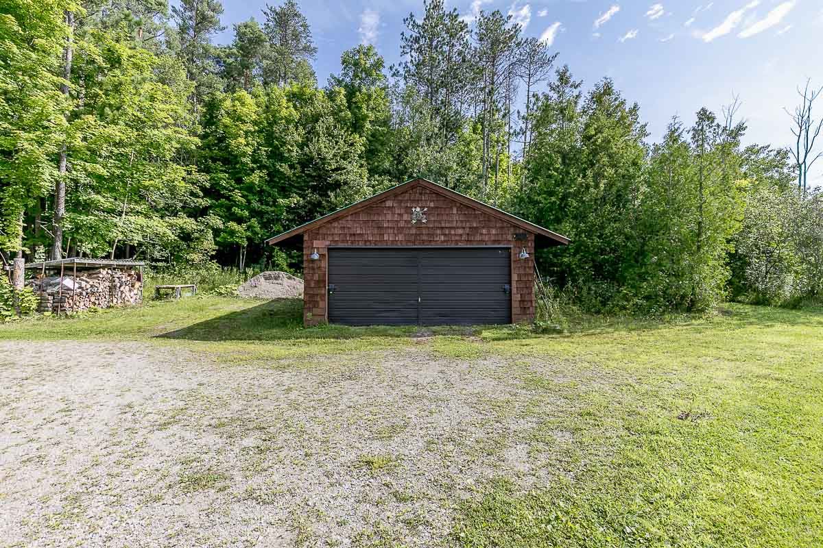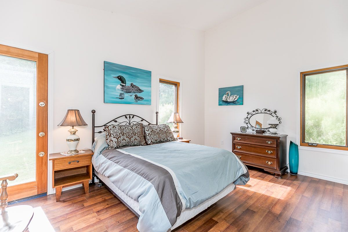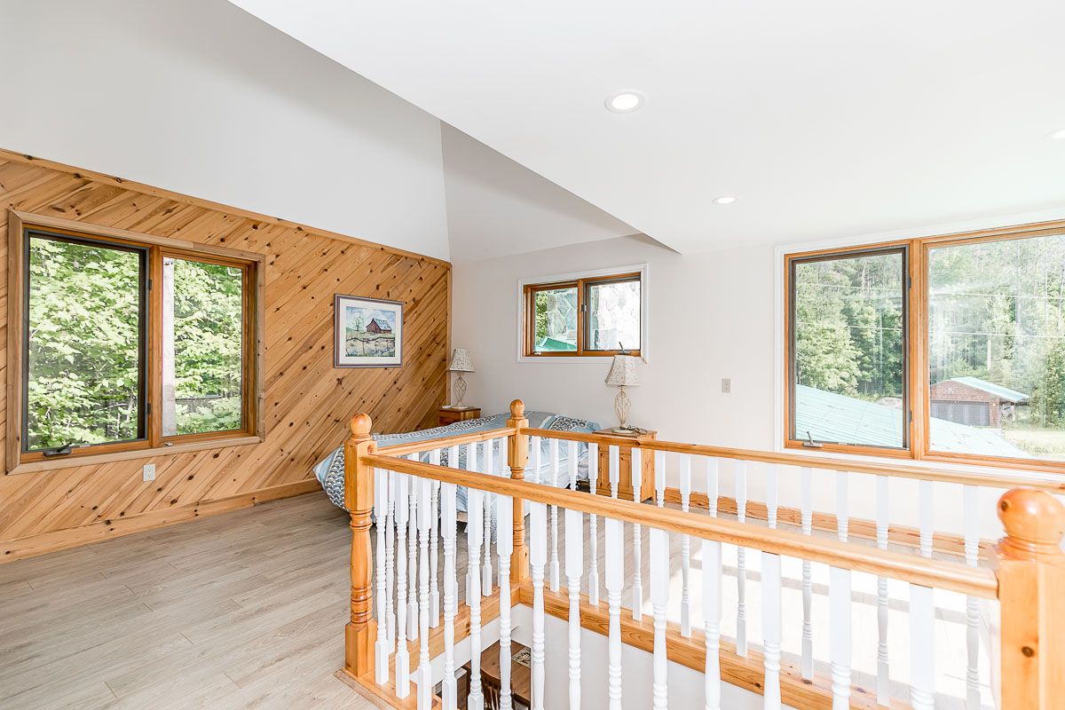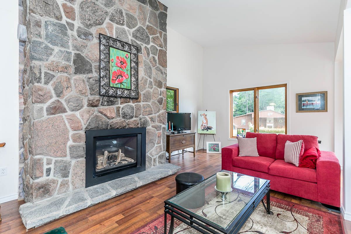 50+ acre parklike setting. Enjoy trails, spring fed pond, babbling brook and privacy at its finest. Four season 1.5 Storey with 1.5 baths, 2 bedrooms plus a loft. Separate studio like building with a mostly finished 3pc bath. Very accessible, being 1 minute from highway 9 between 50 & 27. Make this your weekend getaway or an Airbnb hot spot.