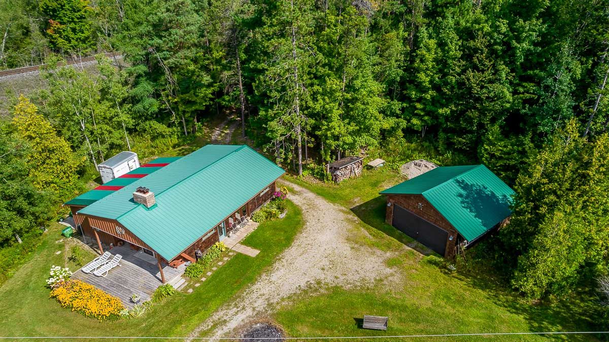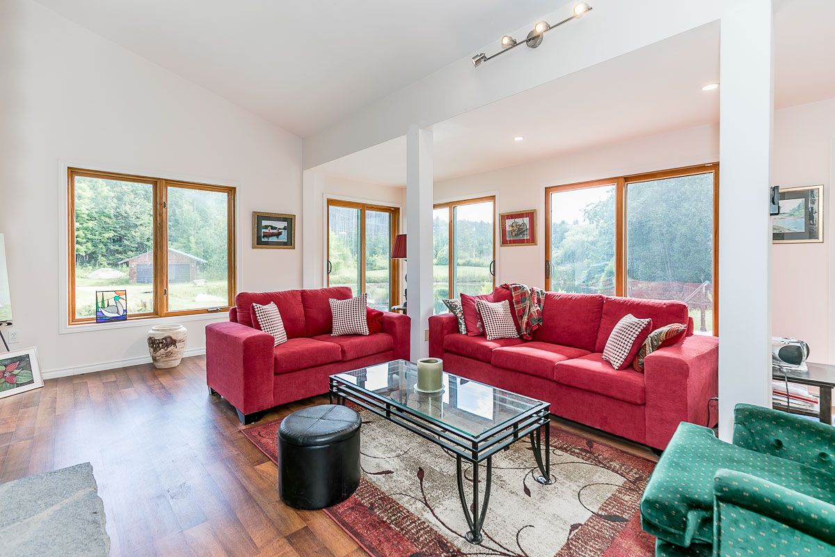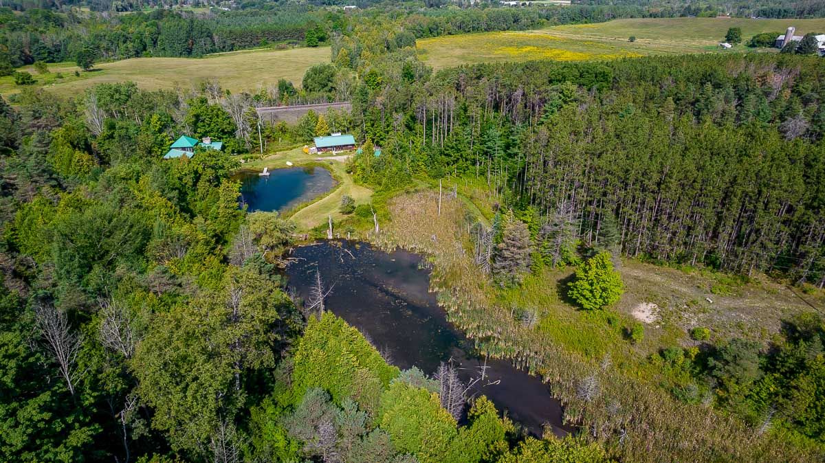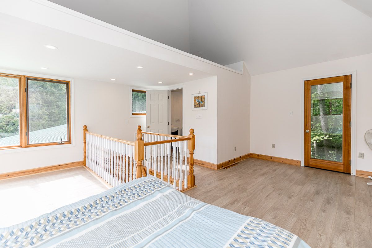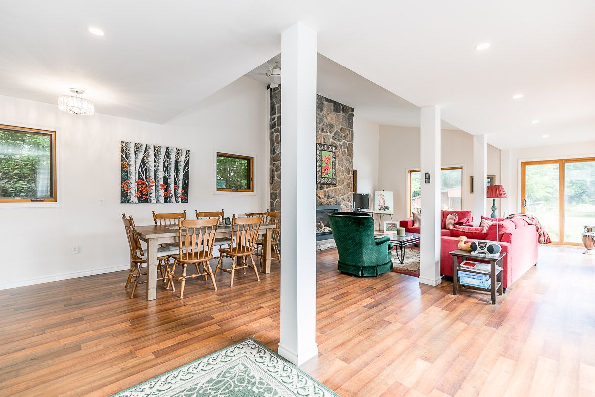 50+ acre parklike setting. Enjoy trails, spring fed pond, babbling brook and privacy at its finest. Four season 1.5 Storey with 1.5 baths, 2 bedrooms plus a loft. Separate studio like building with a mostly finished 3pc bath. Very accessible, being 1 minute from highway 9 between 50 & 27. Make this your weekend getaway or an Airbnb hot spot.