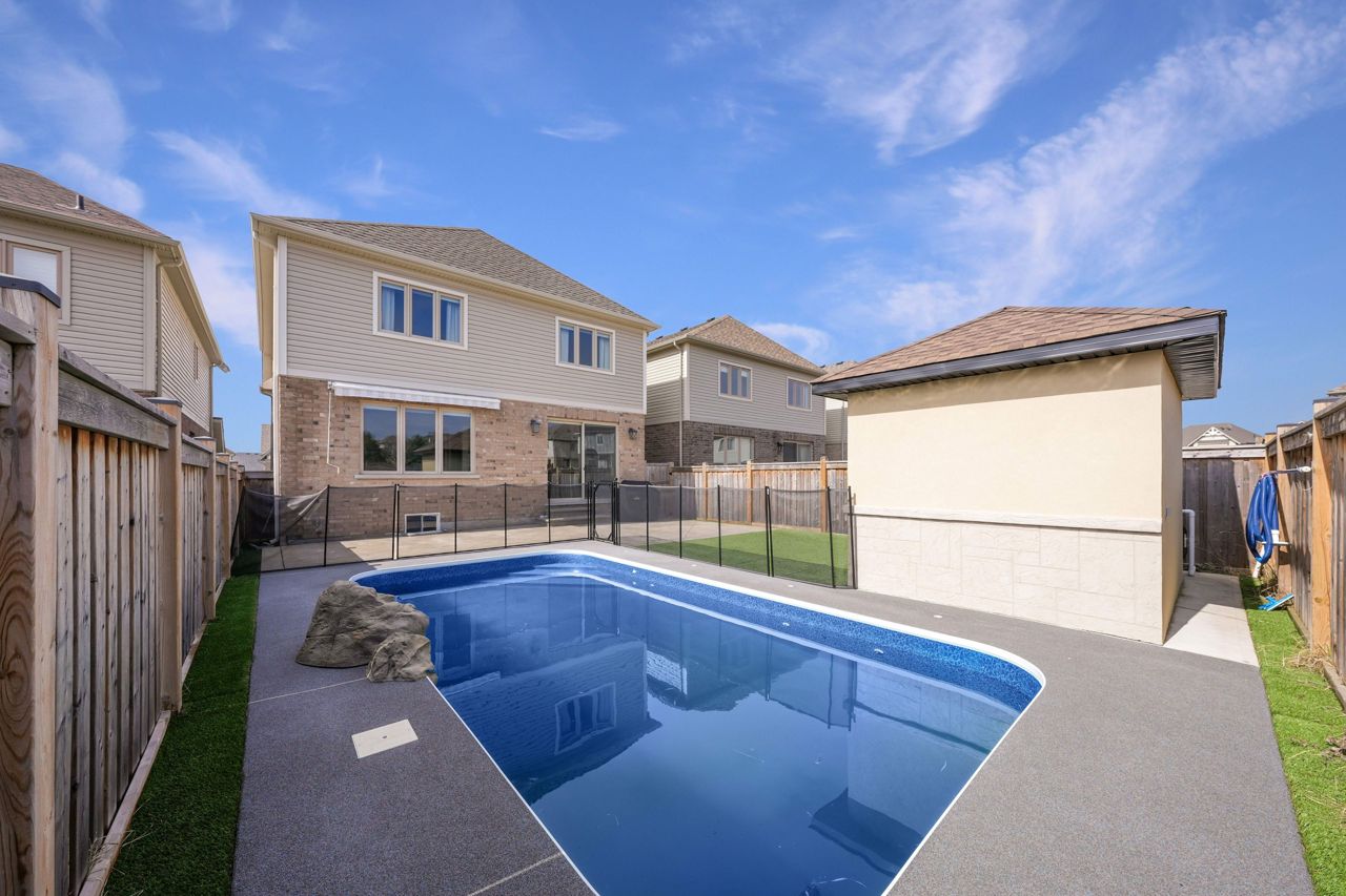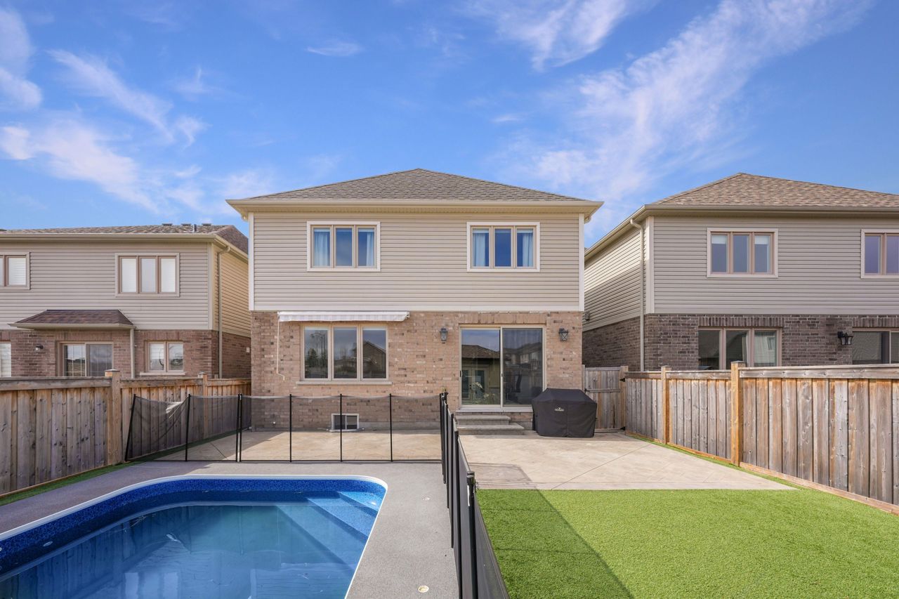 Welcome to 12 Bell Ave! This beautiful home is a true showstopper! With over 2700 sq feet of living, this is the perfect space to call home! Gorgeous open concept kitchen with gleaming floors, granite countertop and backsplash, large centre island, stainless steel appliances and a perfect sized chef's pantry. Walkout to your backyard oasis featuring a heated salt water inground pool with a brand new waterfall and colour Changing lights, Maintenance free turf - just relax and enjoy your privacy with no neighbours behind you! The Main floor features bright and spacious open concept living throughout plus a private office. The second floor offers 4 large sized bedrooms and 2 full bathrooms. Be wowed by the Primary bedroom that has tons of space including a 5 piece ensuite w/ a beautiful walk in glass shower that features a relaxing serene rain shower head, double vanity sink and jacuzzi tub. Partially finished basement with access to the garage. Look no further, this home has it all!s/s fridge, s/s stove, s/s dishwasher, s/s hood fan, s/s washer, s/s dryer, all electrical light fixtures, 2 gdo & remotes, central vac & related attachments.Pool equipment: electric robot vacuum cleaner, Hayward heater, awning in backyard.
