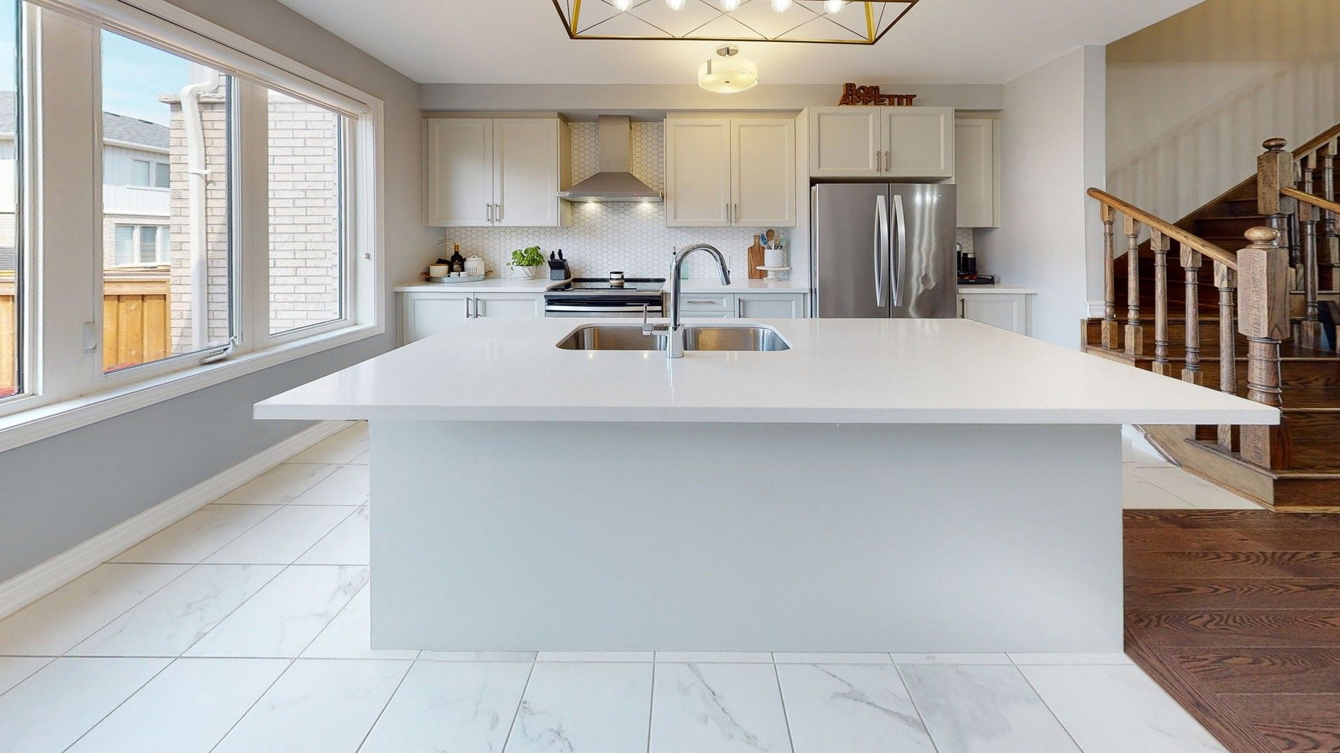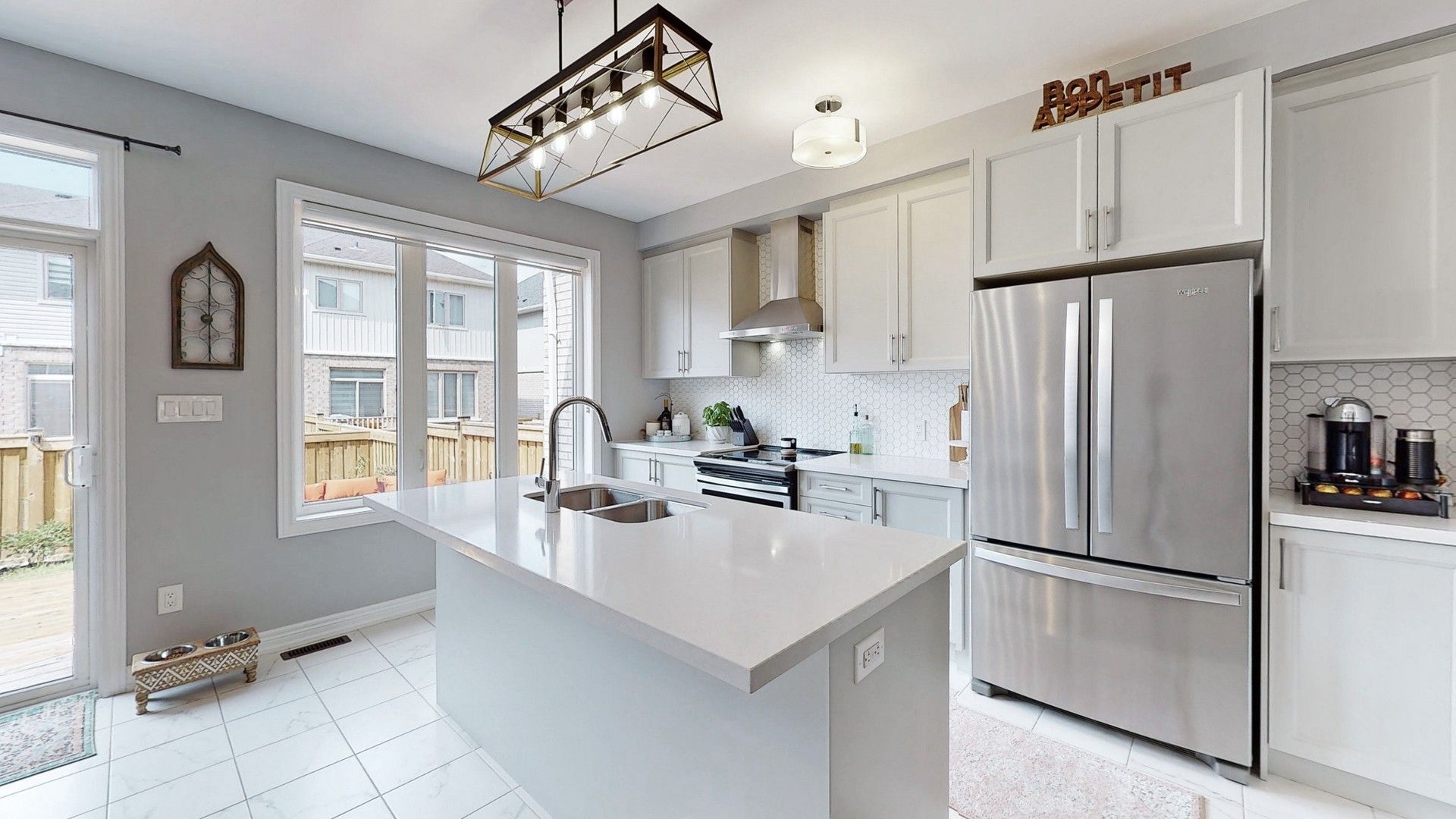 Designer Backsplash & Centre Island Showpiece W/Double Sink & Breakfast Bar. W/O To Fenced In