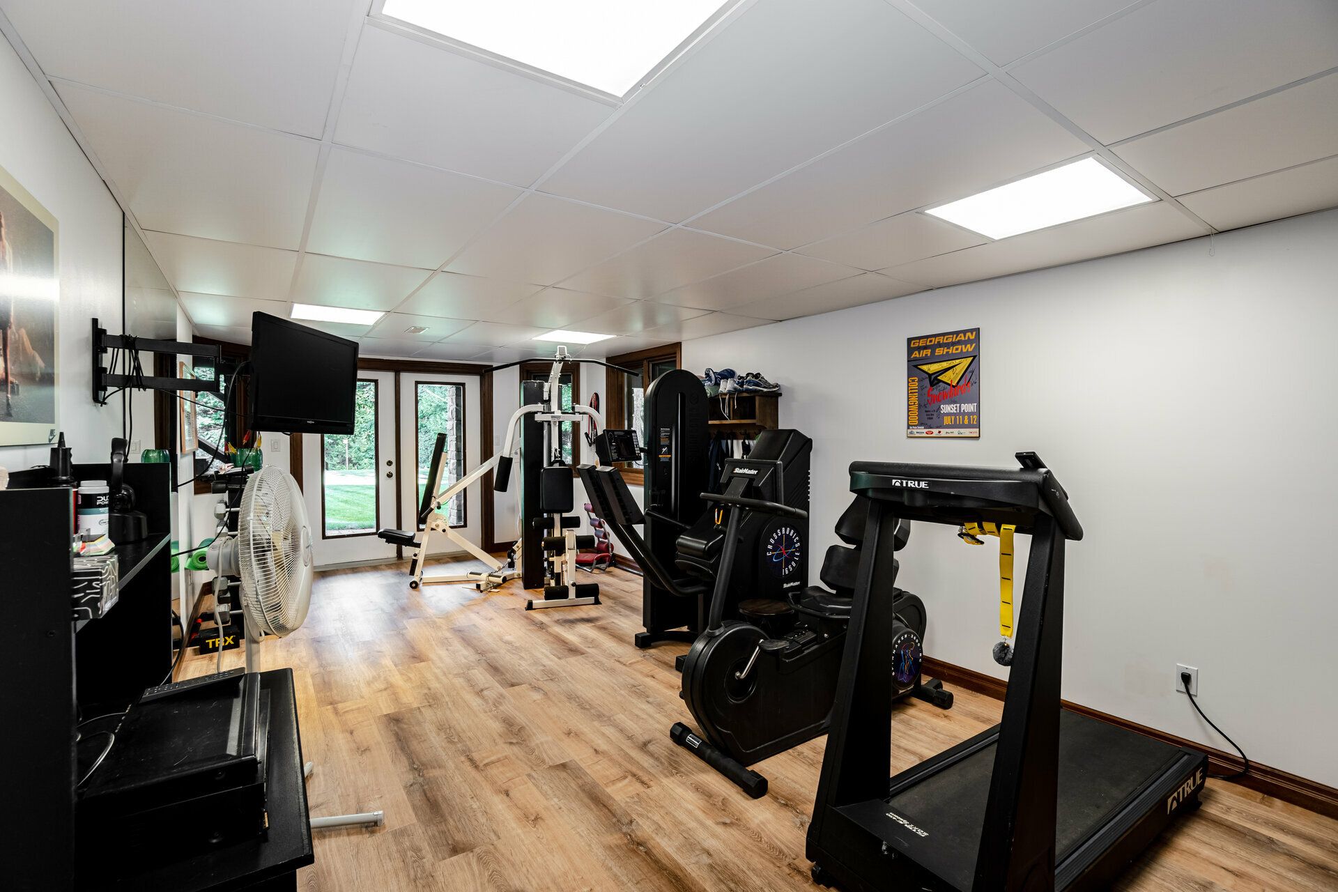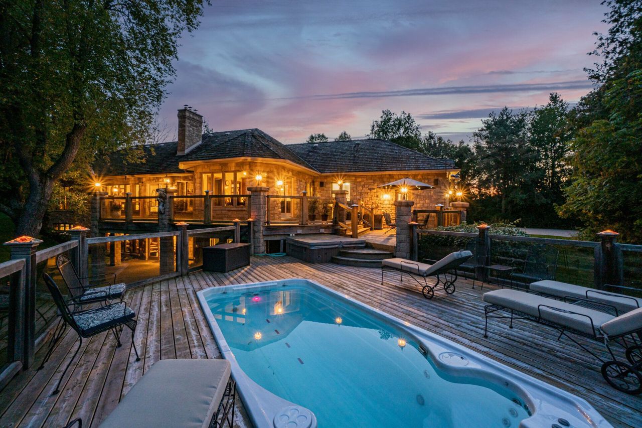 Nestled in the heart of picturesque countryside, this rural bungalow is a true gem with an array of exquisite features and meticulous attention to detail. This property is a testament to the art of fine living. Say goodbye to chilly mornings as you step into your heated garage and basement. Hardwood floors graces the main living areas, adding warmth and elegance to your daily life. The classic cedar shake roof not only adds timeless beauty to your home but also offers durability and low maintenance. Maintain lush gardens and a vibrant lawn effortlessly with the irrigation system. Durable concrete driveway enhances curb appeal. 3 Car garage & an aluminum oil pit garage is perfect for the auto enthusiast. The kitchen boasts granite counters, Jenn Air S/S appliances, and a spacious layout for culinary creativity.This bungalow truly exemplifies the fusion of rustic charm and modern comfort. Don't miss the opportunity to make this dream home your own.Whether you're relaxing in the Hydro Pool, Hot Tub or hosting friends at the bar in the rec room, this property is designed to elevate your lifestyle. The over-sized garage features an RV height centre door. Infrared sauna, your own gym.