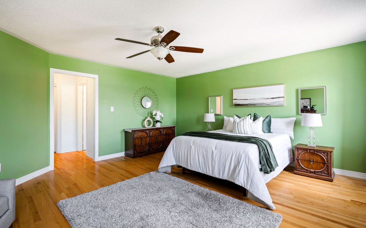 The main level presents an open-concept layout with a gourmet kitchen, a spacious living room, and access to a private backyard. Upstairs, you'll discover two primary suites, each with its own ensuite, along with four additional bedrooms throughout the home.
