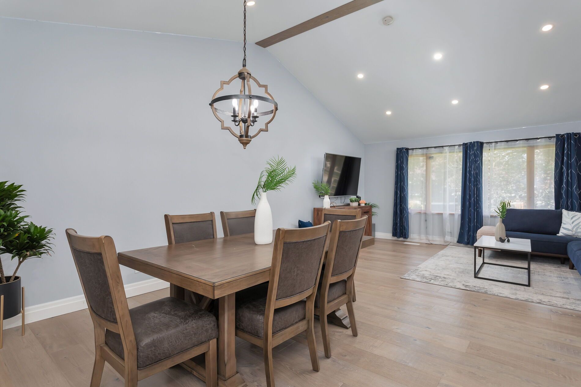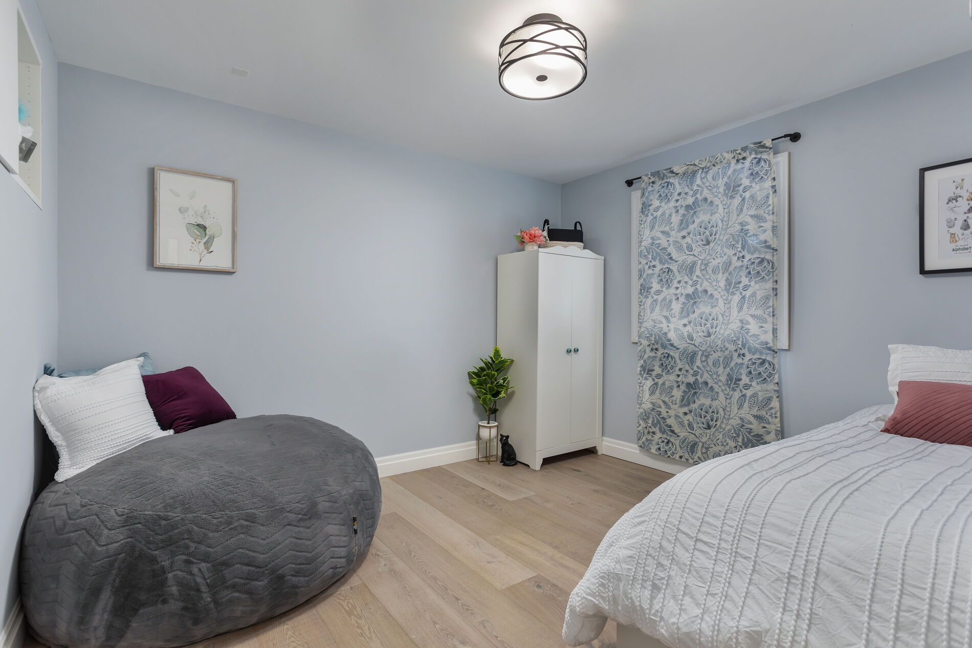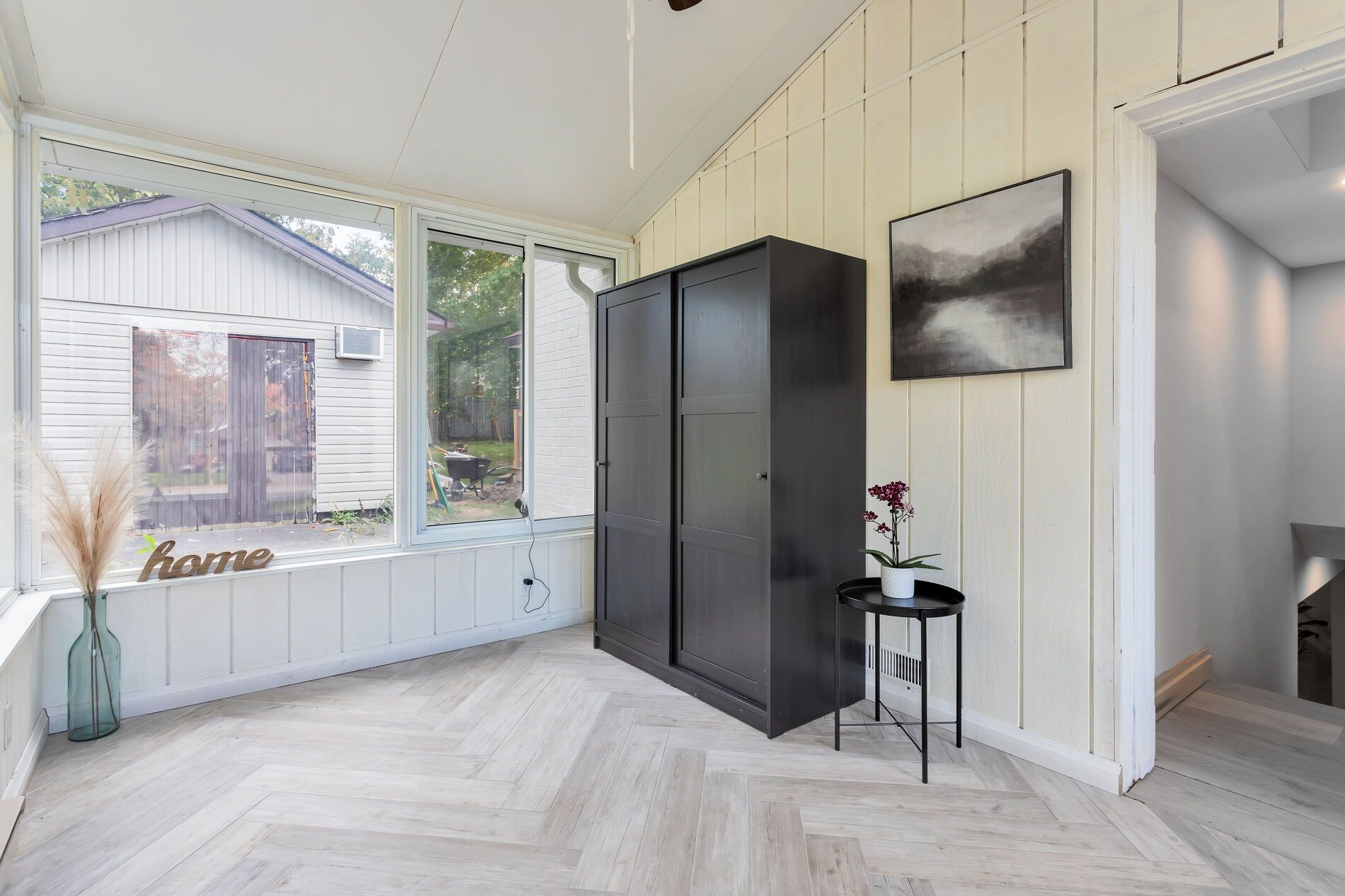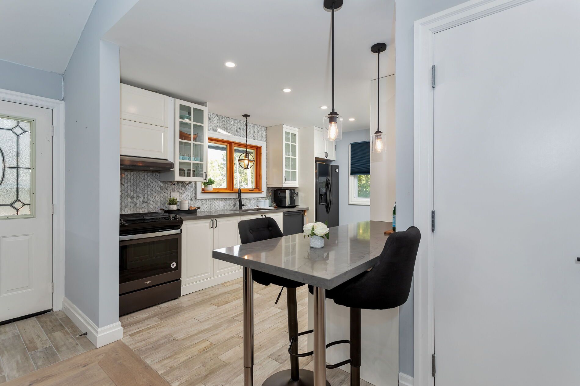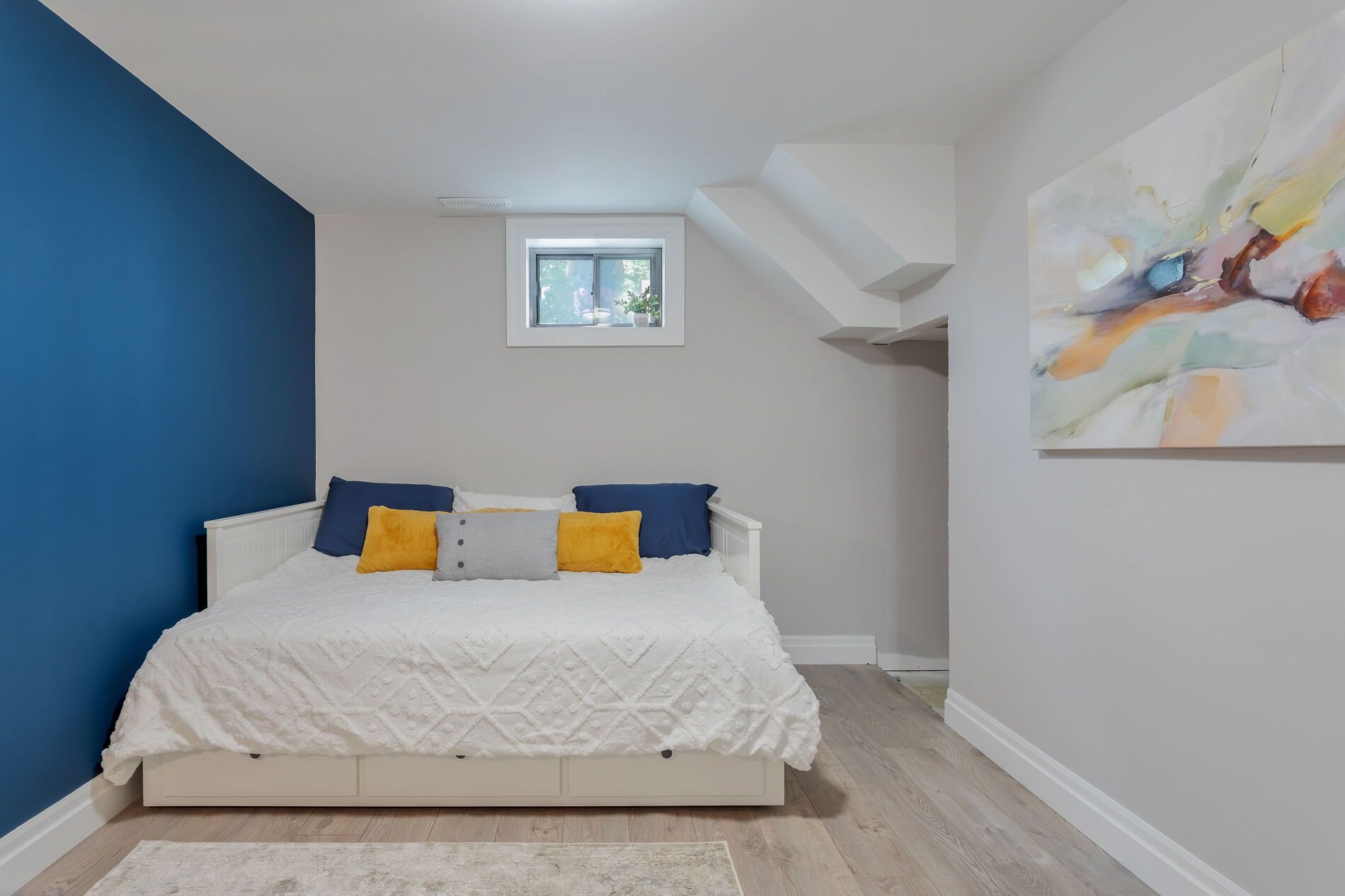 This spectacular bungalow boasts an astonishing interior living area with a brand-new and open-concept kitchen. No corner has been left untouched in this full-scale renovation. New insulation, dry walls, and vapor barriers. Complete with engineered 8.25" hand-scraped hardwoods, new baseboards, and trims. The intriguing cathedral ceiling elevates the space to new heights. Solid, heavy-duty doors further enhance the luxurious appeal.Embrace the full spa experience in the bthr fitted with a freestanding soaker tub, a walk-in shower a rain shower head, modern matte black finishes,& a linear drain. Experience the charm of the vaulted ceilings and chandelier is a perfect finishing touch to this delightful retreat. Backyard made for both relaxation and play. With a playground and a newly fenced North side, you can sit back &enjoy your outdoor space. The sunroom - which doubles as a mudroom. Exhibiting new tiles and fresh paint, this addition beautifully seals the allure of this suburban gem.Existing Black Stainless Steel Appliances: Double Door Fridge, Gas Stove, Hood Fan, Built-in Dishwasher. Washer and Dryer Machines.