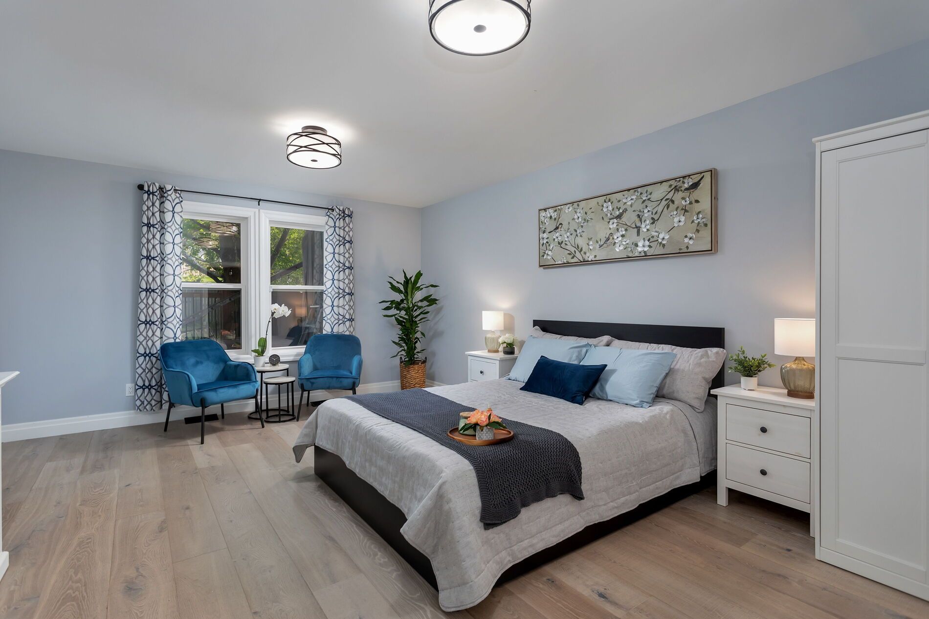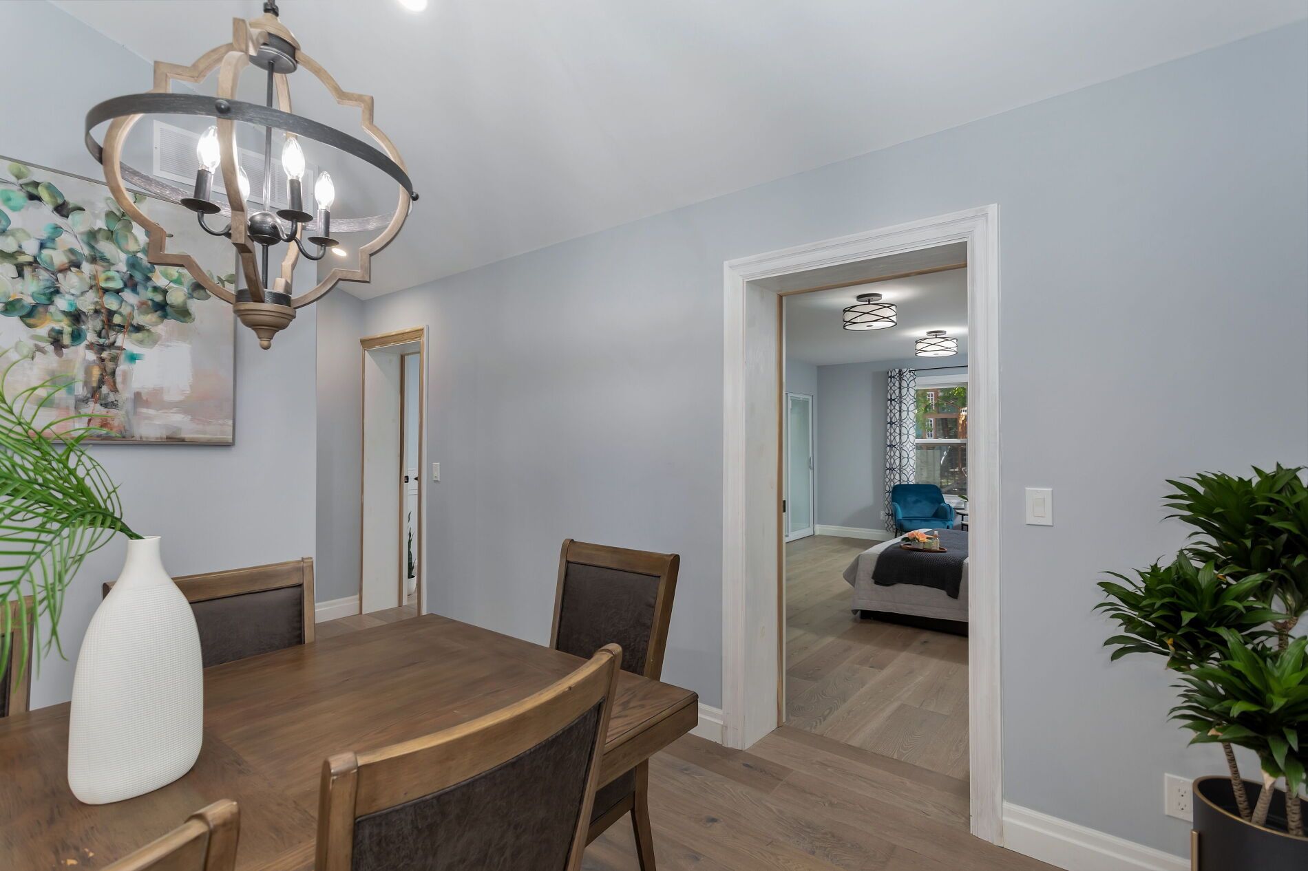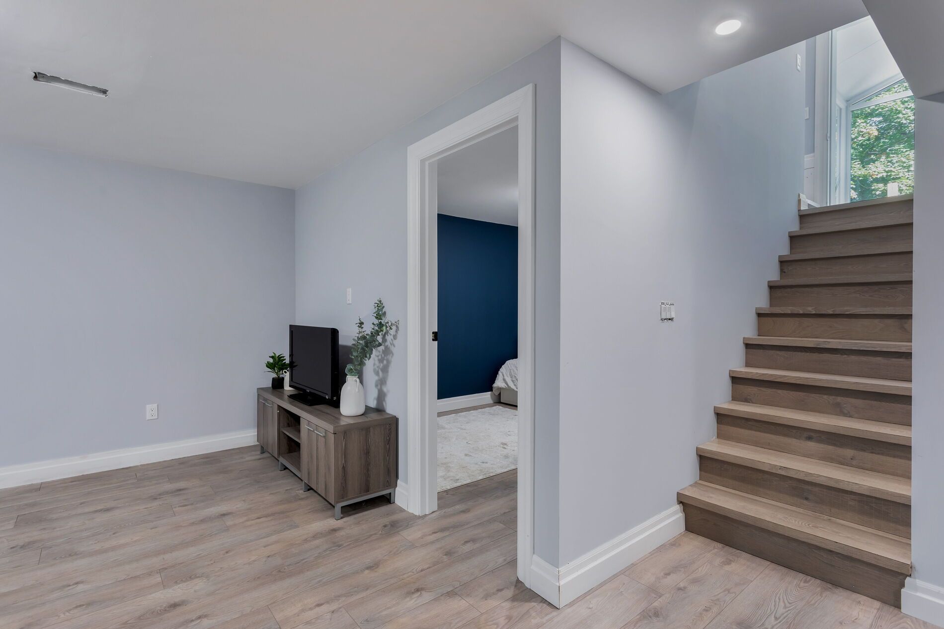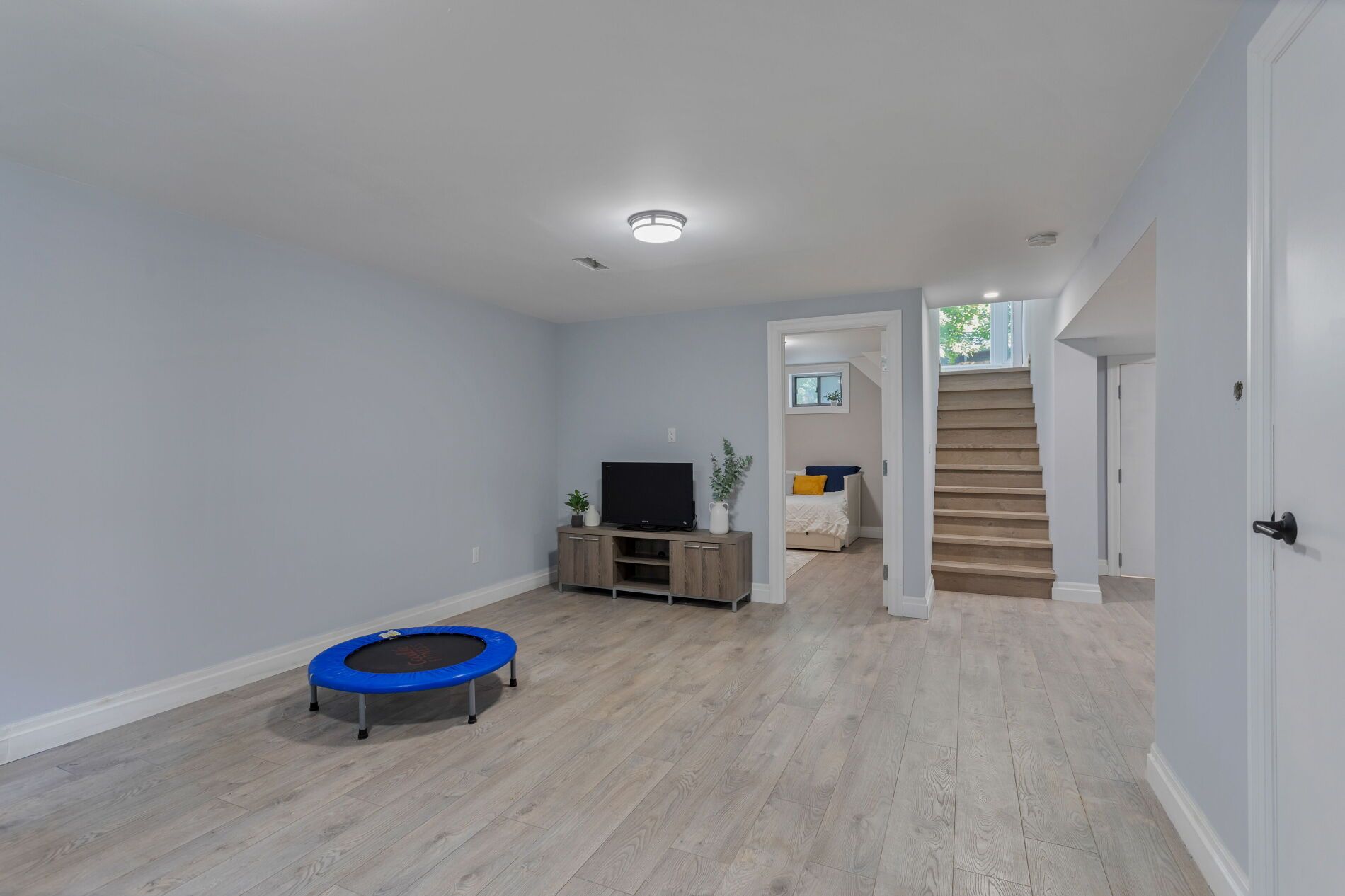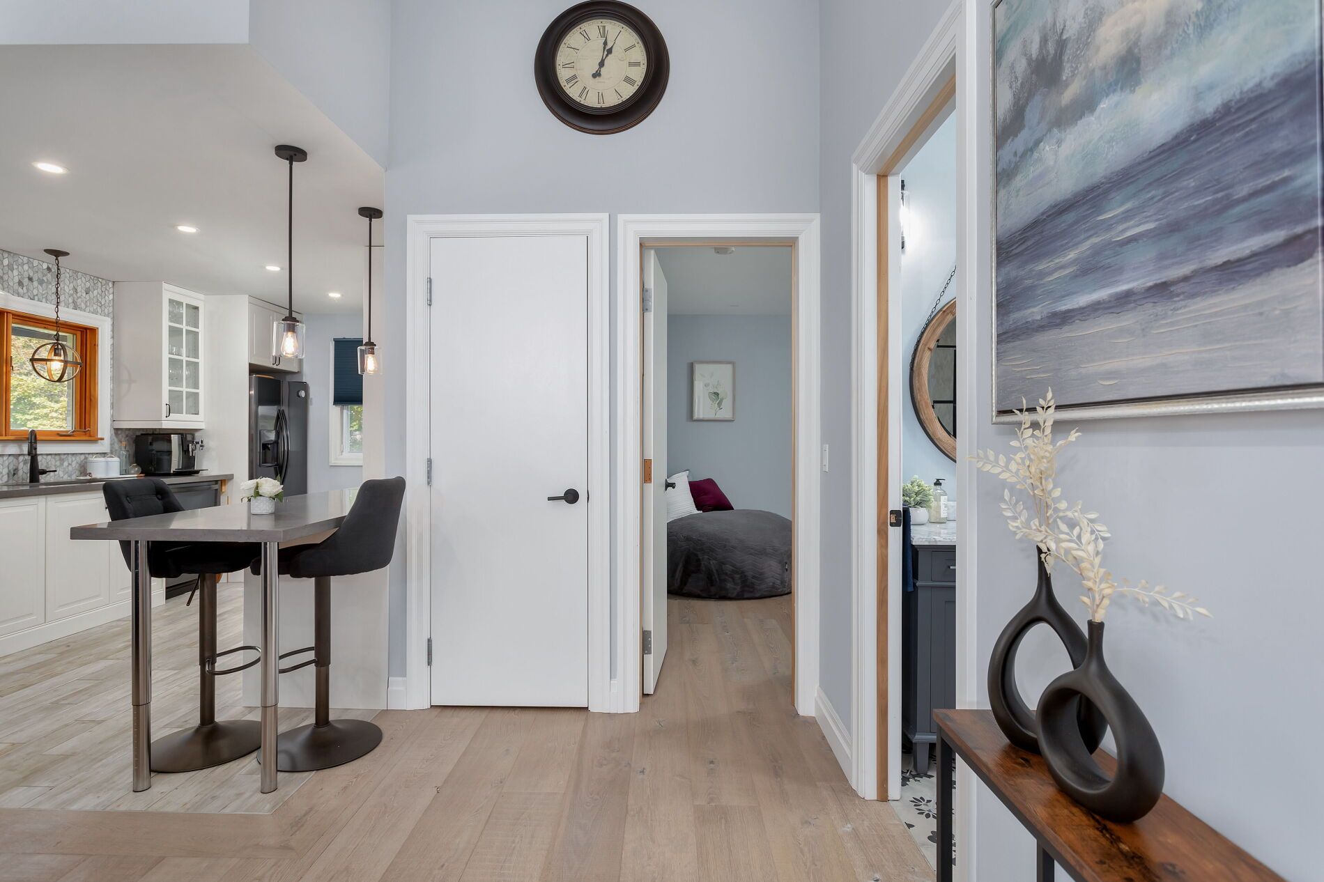 This spectacular bungalow boasts an astonishing interior living area with a brand-new and open-concept kitchen. No corner has been left untouched in this full-scale renovation. New insulation, dry walls, and vapor barriers. Complete with engineered 8.25" hand-scraped hardwoods, new baseboards, and trims. The intriguing cathedral ceiling elevates the space to new heights. Solid, heavy-duty doors further enhance the luxurious appeal.Embrace the full spa experience in the bthr fitted with a freestanding soaker tub, a walk-in shower a rain shower head, modern matte black finishes,& a linear drain. Experience the charm of the vaulted ceilings and chandelier is a perfect finishing touch to this delightful retreat. Backyard made for both relaxation and play. With a playground and a newly fenced North side, you can sit back &enjoy your outdoor space. The sunroom - which doubles as a mudroom. Exhibiting new tiles and fresh paint, this addition beautifully seals the allure of this suburban gem.Existing Black Stainless Steel Appliances: Double Door Fridge, Gas Stove, Hood Fan, Built-in Dishwasher. Washer and Dryer Machines.
