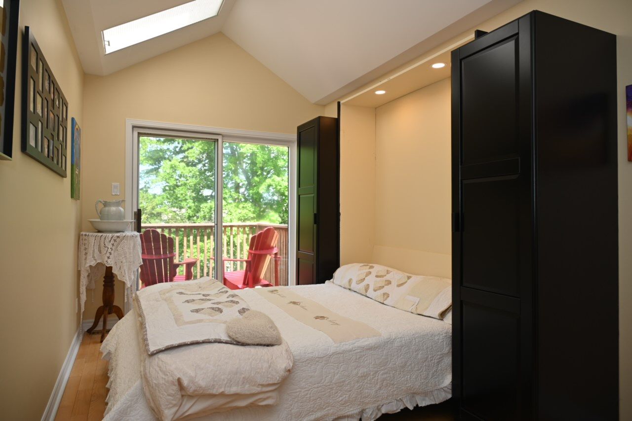 Murphy Bed walk out to BBQ. Bedroom used as studio, sauna,3 pcs BR. Charming setting with FP