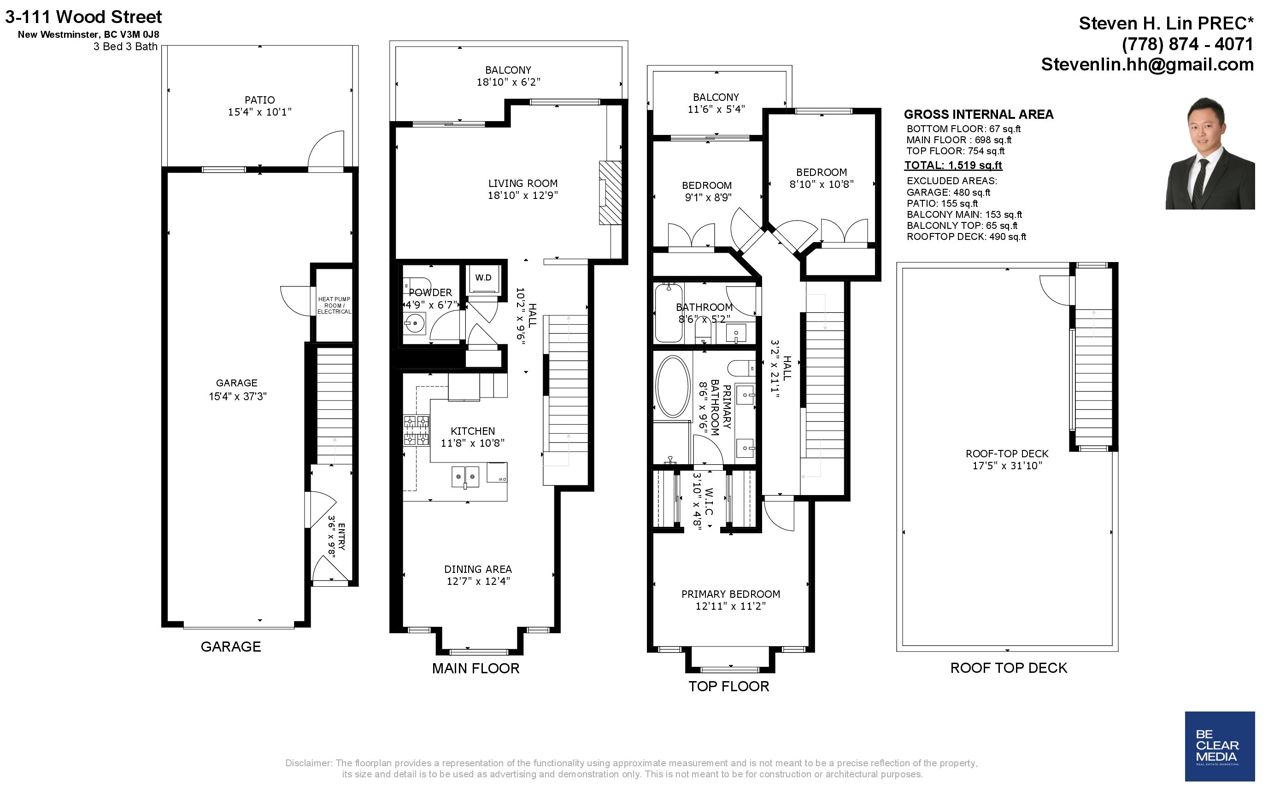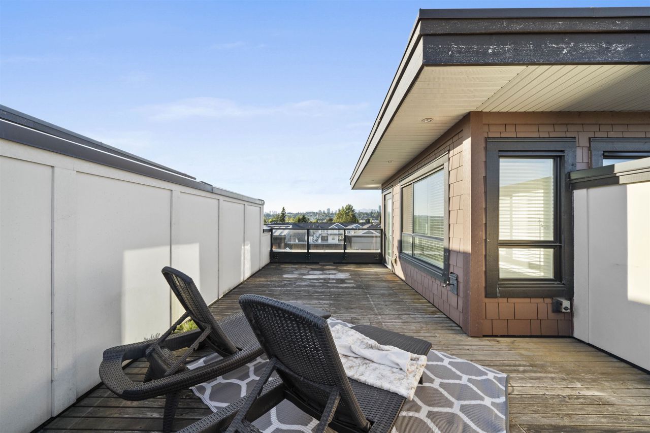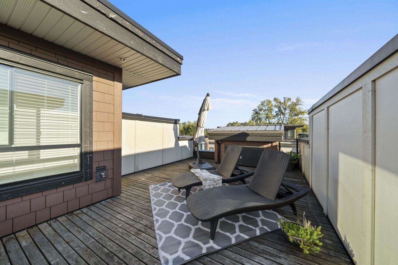 ROOFTOP DECK with river, mountain and city views! Welcome to this 1519SF, 3 bed, 3 bath Townhouse in Rivers Walk II. Main floor features a stunning kitchen with quartz countertops, stainless steel appliances, and gas range and an extra large living room with huge tall window, powder room & 10 ft ceilings throughout. Master-bedroom with spa-like 5 piece ensuite. Gas hookup roof deck, 2 balconies and patio provide 863 sq ft outdoor space. This rarely available townhouse is only blocks away from Queensborough Middle School & Queen Elizabeth Elementary. Steps from outdoor tennis courts, playgrounds, water/spray parks, off-leash areas, library & the community centre. Easy access to Richmond, Burnaby, and New Westminster. 3 parking w/2 car garage. Open house 2-4pm Sat/Sun Nov 25/26