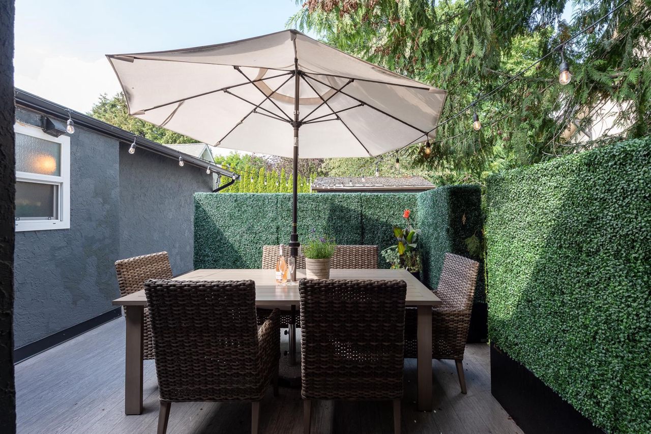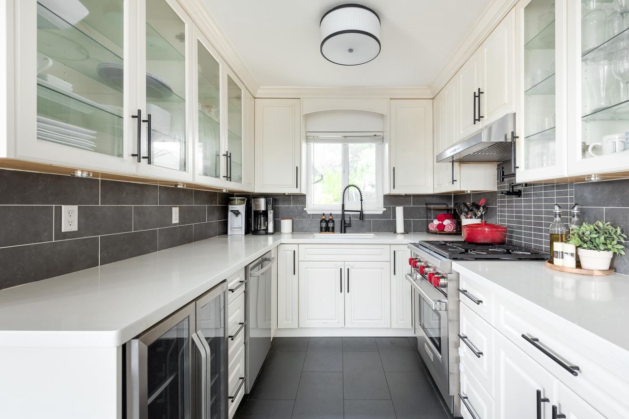 This family home is move-in ready and features nearly 2,600-sq. ft of living space over two levels w/ 5 bdrms + 3 full baths. The spacious main level offers a lg living room w/ w/b fireplace, adjoining dining room and remodelled kitchen w/ a dual-fuel Wolf range and a solid walnut butcher block island. You’ll love the covered outdoor kitchen complete its own gas range, commercial grade bbq, quartz and stainless surfacing. Both main floor bathrooms were beautifully remodelled just last year, incl the primary ensuite. Other updates include: new AC, roof, furnace, electrical and all new windows throughout the home. BONUS 1-bdrm garden suite. Located in one of the city’s best community-oriented neighbourhoods schools, shops, parks and transit.