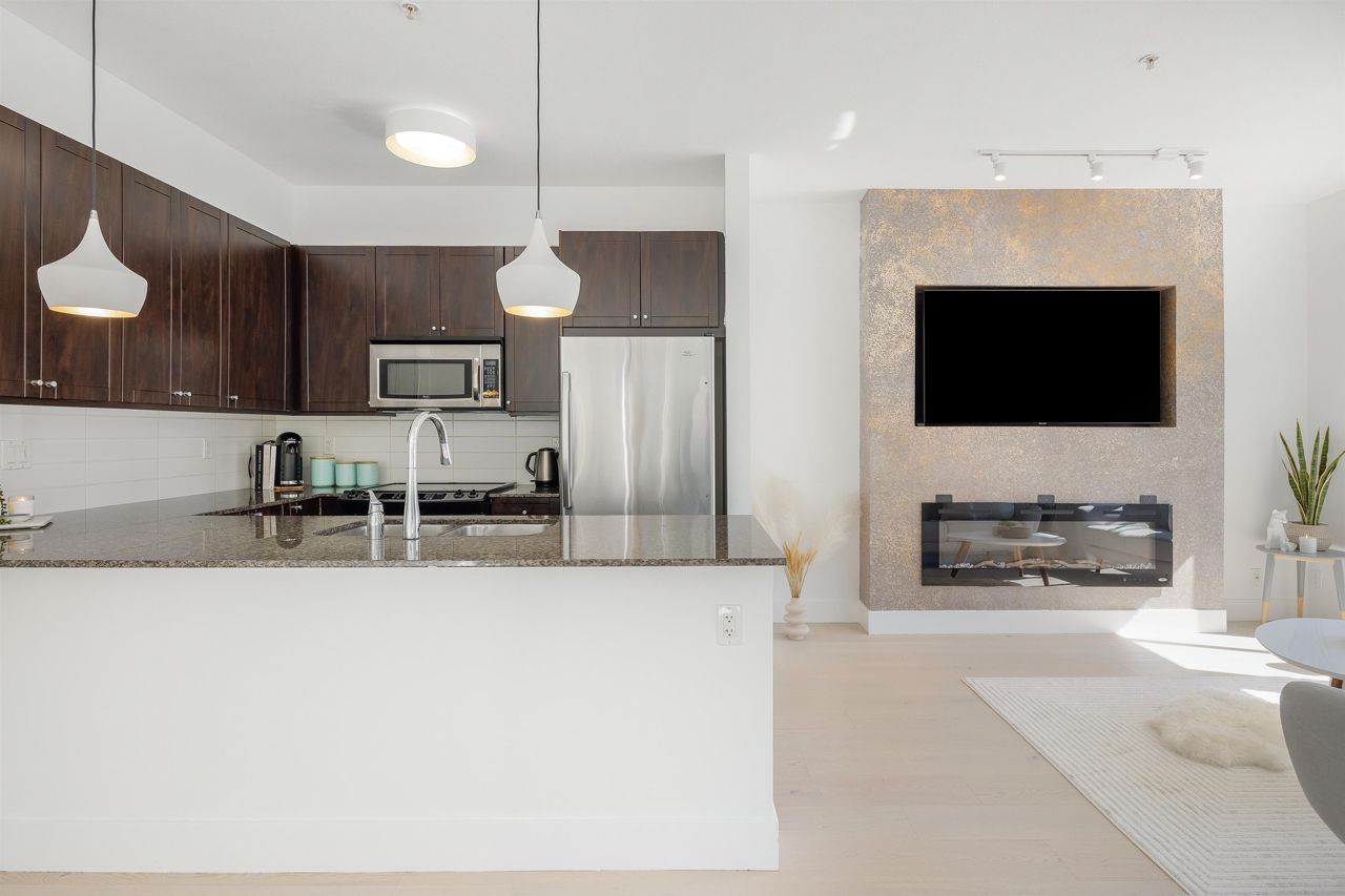 Welcome to the Whittaker in the heart of Victoria Hill. Step inside & fall in love w this bright 2bed+den, 2bth home. This oversized 1,078 sqft corner unit is filled w light & has been recently updated. Features include: new engineered hardwood, updated fireplace, s/s appliances, granite counters, new washer/dryer, 9ft ceilings, updated lighting & fresh paint. The spacious primary suite has a large walk-in closet & ensuite w soaker tub & separate walk-in shower. The den is perfect for WFH or extra storage. Fitness fanatic? You will love the "Boiler House" - an amazing amenity space w a well equipped fitness center, basketball court, party room, theatre and library. Steps to parks & are close to shopping, transit, skytrain, restaurants etc. Rentals & pets allowed. INCREDIBLE VALUE.