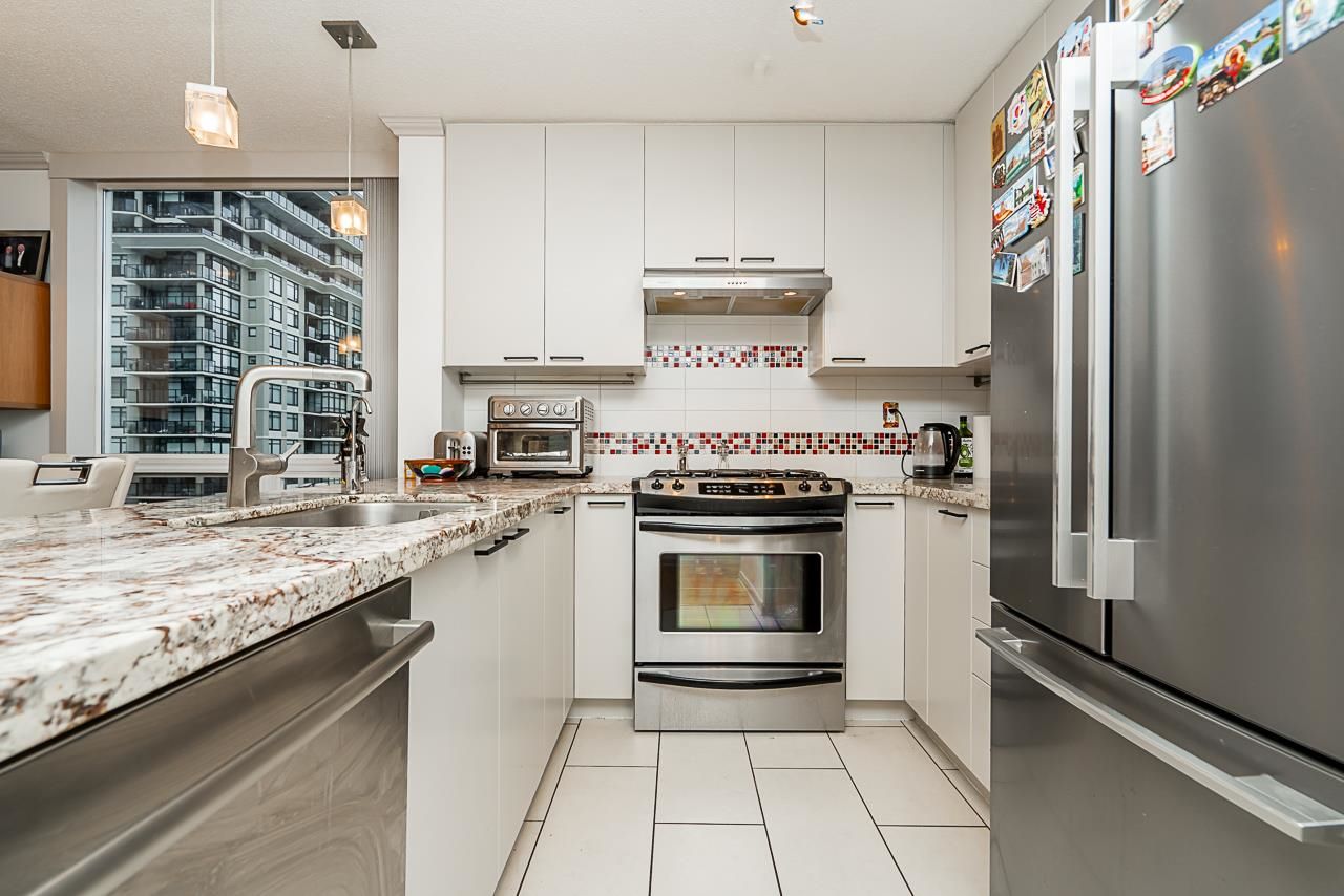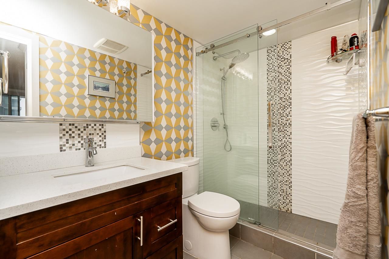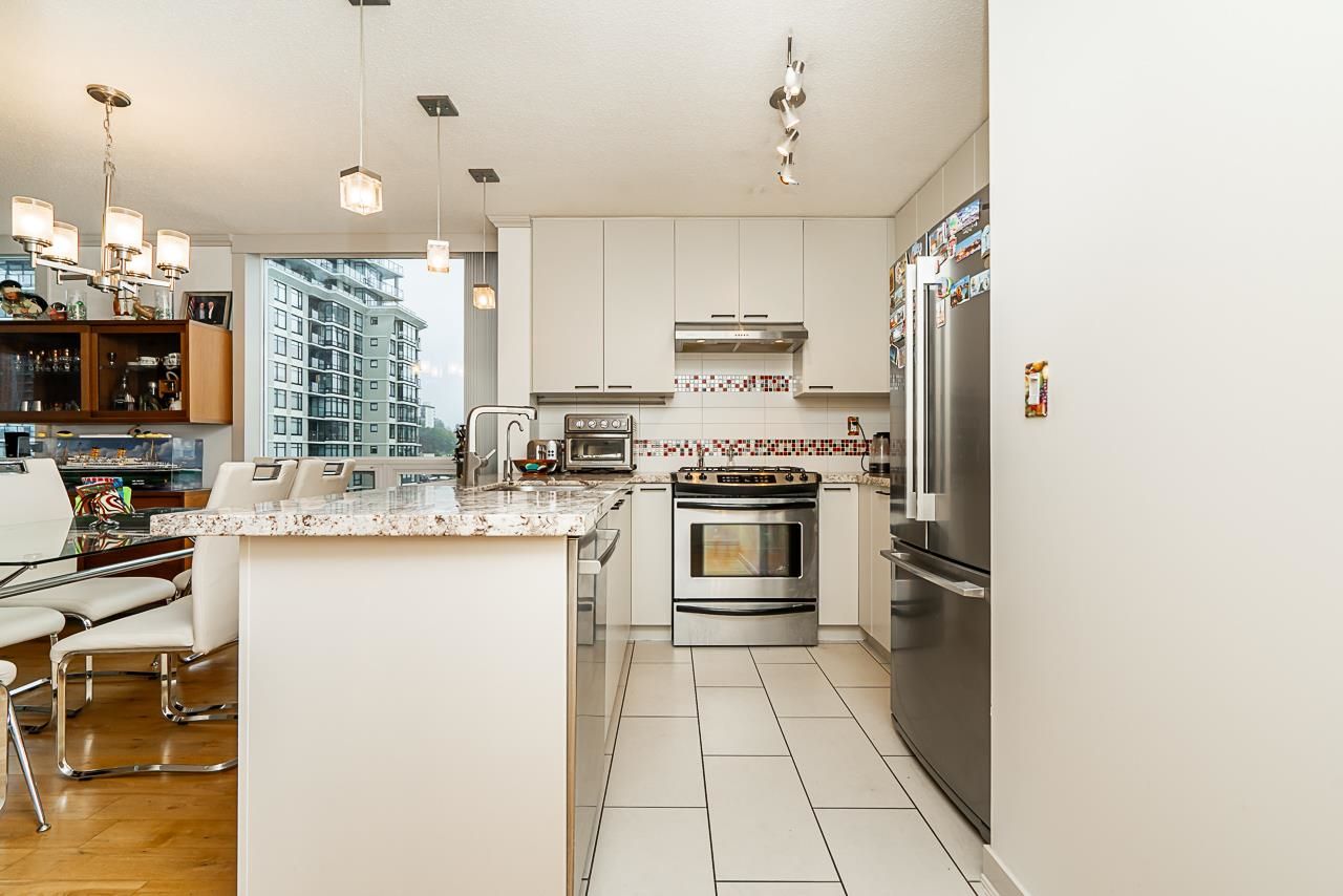 Quantum by Bosa. This terrific 2 + 2 + 2 Parking and Den home has been substantially and tastefully renovated throughout. Updated paint, flooring, a totally replaced kitchen including counters, cabinets and appliances. Centrally located at Sixth and Columbia, just 1 block to Columbia Skytrain, a short stroll to the Quay, Riverwalk, restaurants and shopping. Parking spaces are side-by-side and situated near the elevator. Oversized storage locker and a huge covered balcony. This unit is a must see. Open Sunday October 8th 1-3PM