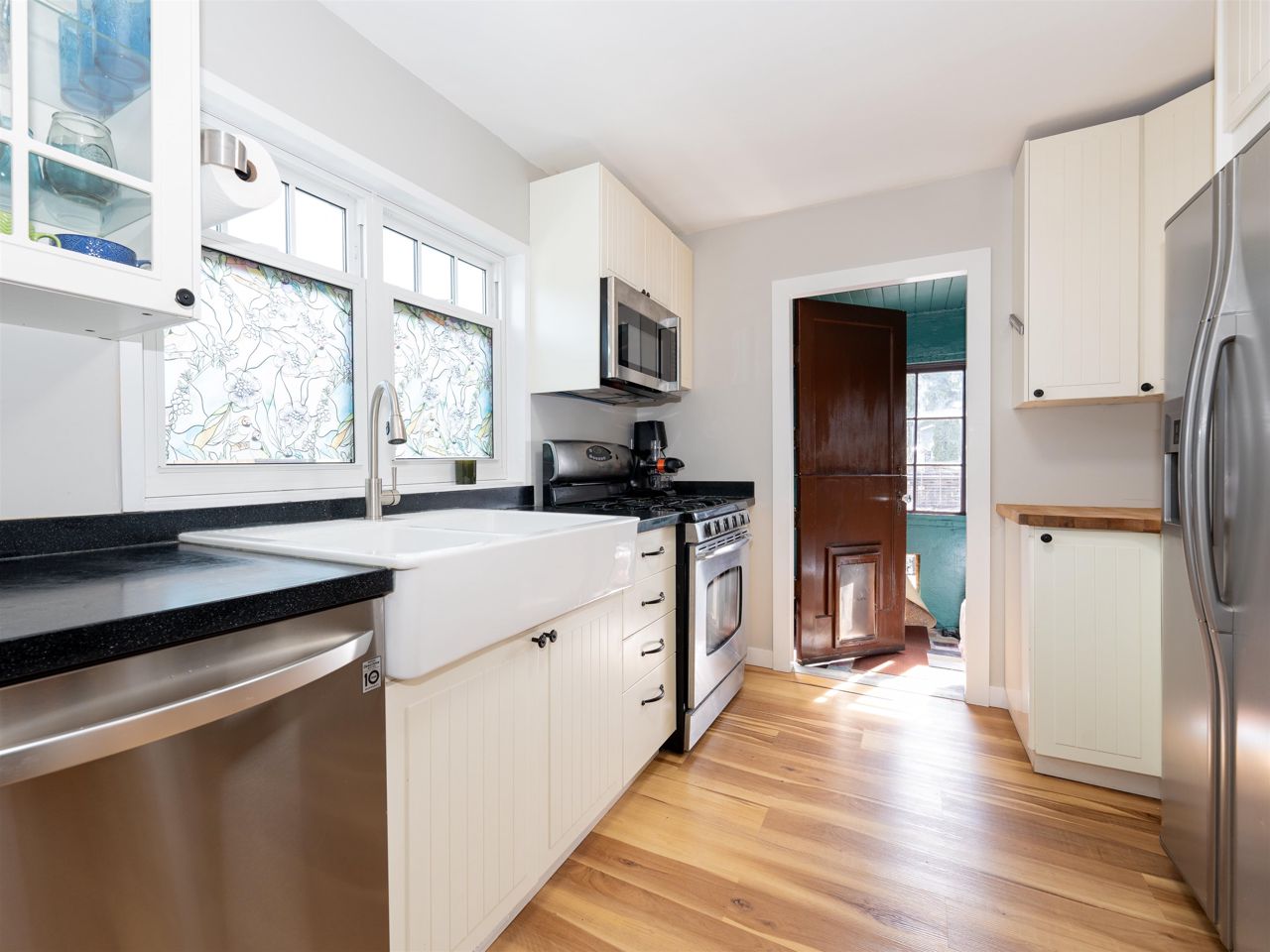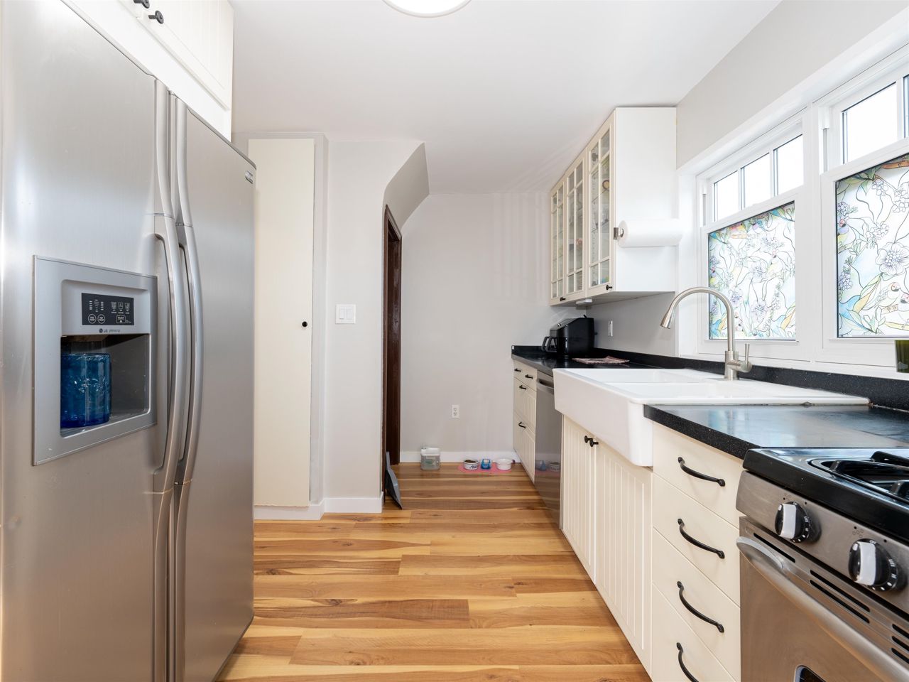This well-maintained 3-bedroom home is situated on a 4260 sq ft lot. Built in 1940 according to the City of New Westminster, the property presents numerous updates. Notable updates include a new roof installed in 2020, an EV charger, upgraded electrical switches, a tankless Bosch on-demand water heater, new electrical panel and a large covered patio. The double carport is accessible through the rear lane. One bedroom suite at the front of the house on ground level. Great property for investors.