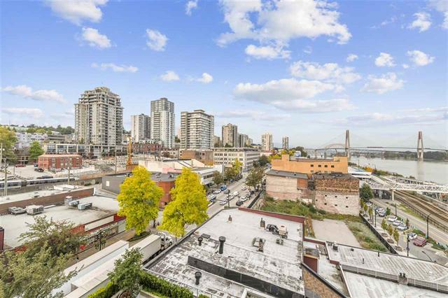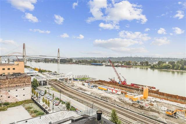 AMAZING WATER VIEWS!!! This fabulous 1 Bedroom home in the highly desirable Trapp + Holbrook building in the soul of historic Downtown New Westminster is a MUST SEE! Open concept unit features: designer cabinets, quartz counters, glass back splash and stainless steel appliance Package. Walking distance to the Quay, Coffee Shops & Restaurants & located just one block from the SKYTRAIN and Pier Park (100 Walk Score). This bright & spacious floor plan comes equipped with laminate floors though-out, in-suite laundry & sliding frosted glass doors for a private bedroom. One underground secure parking stall, access to the gym, clubhouse, Bike room and with NORTH EAST VIEWS with the WOW factor from your spacious balcony ,this will not last! This is an Absolute Gem!!! Pet Friendly!